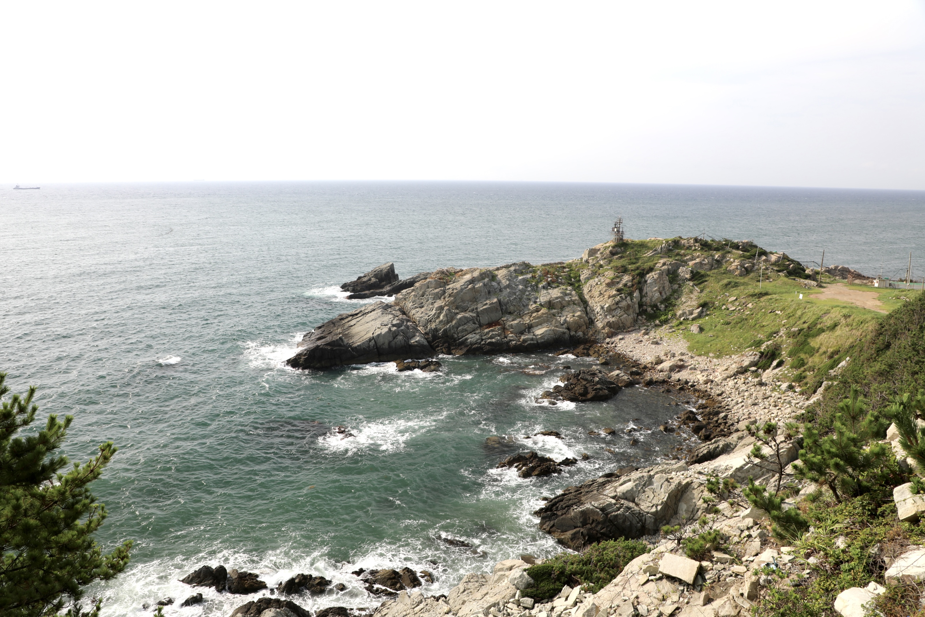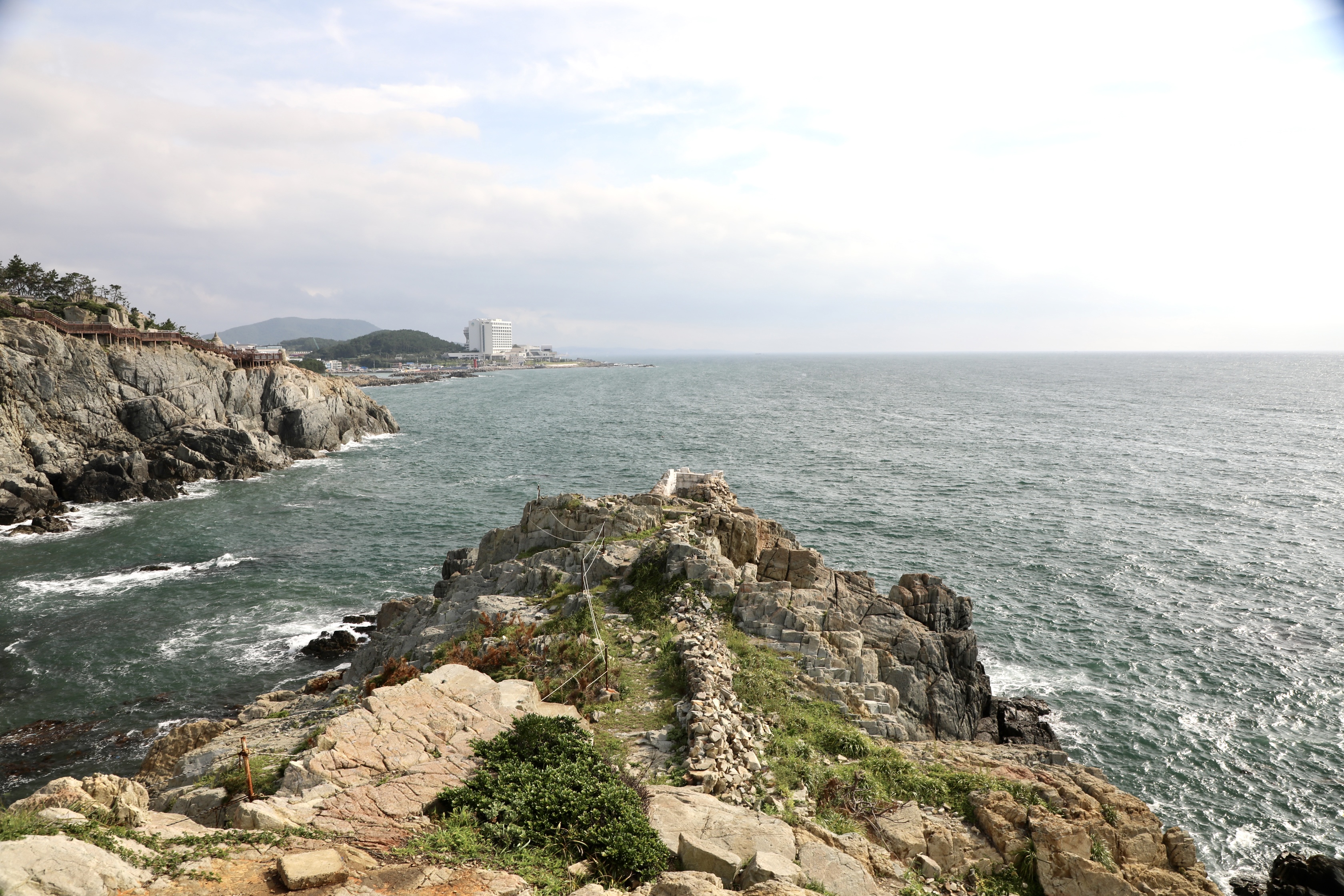해동용궁사를 탐방하며 덤으로 받은 시상대와 해파랑길의 해안 풍경이다.