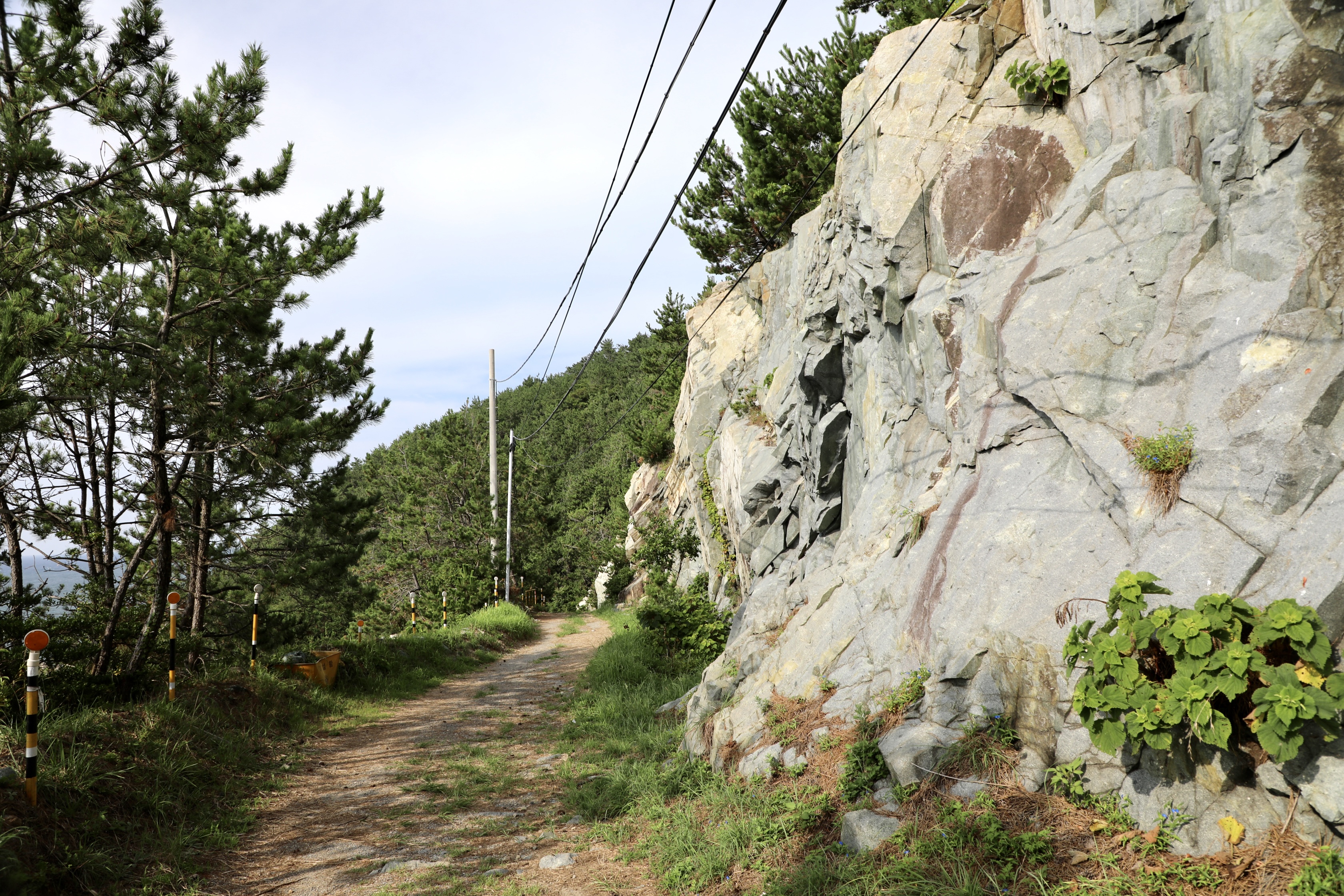 내려가는 길은 해안초소로 드나드는 차도를 만들기 위해 바위를 깎아 길을 냈다.