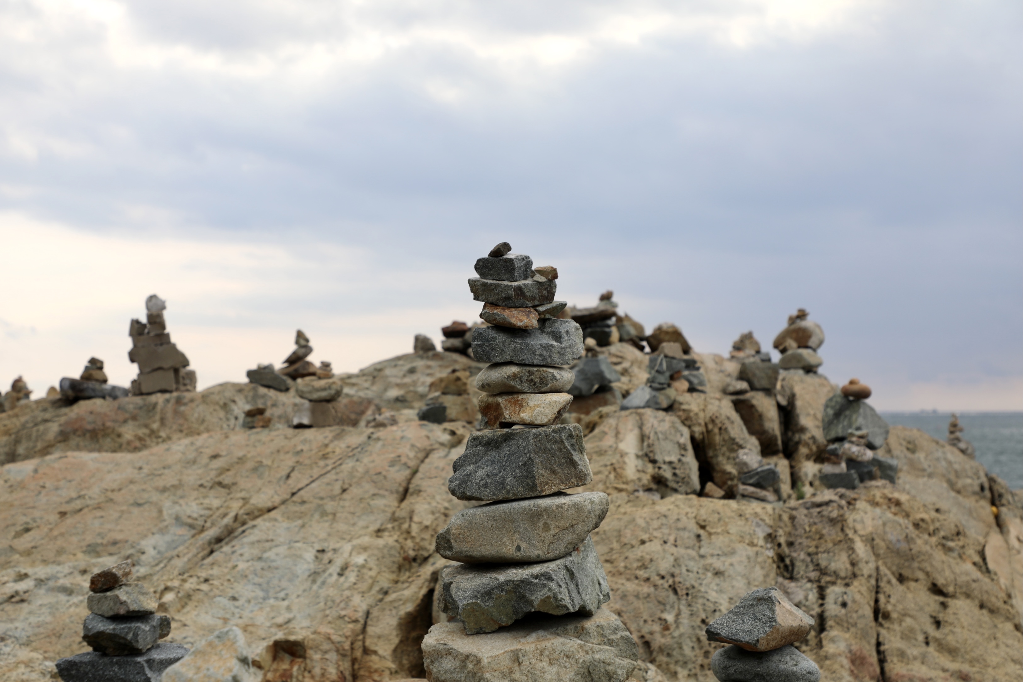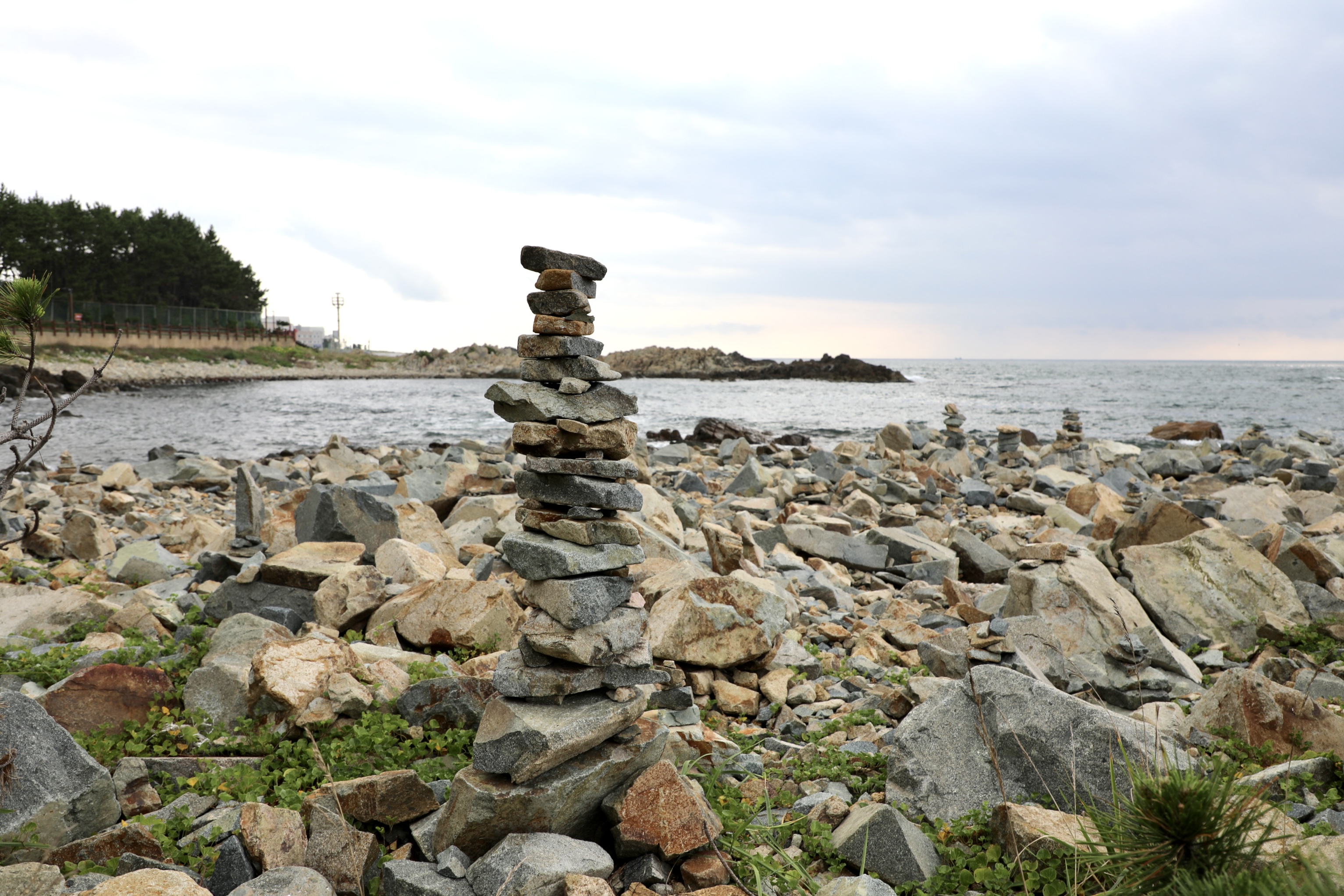 해동용궁사를 멀리서 볼 때 주변에 보이던 돌탑이다.
