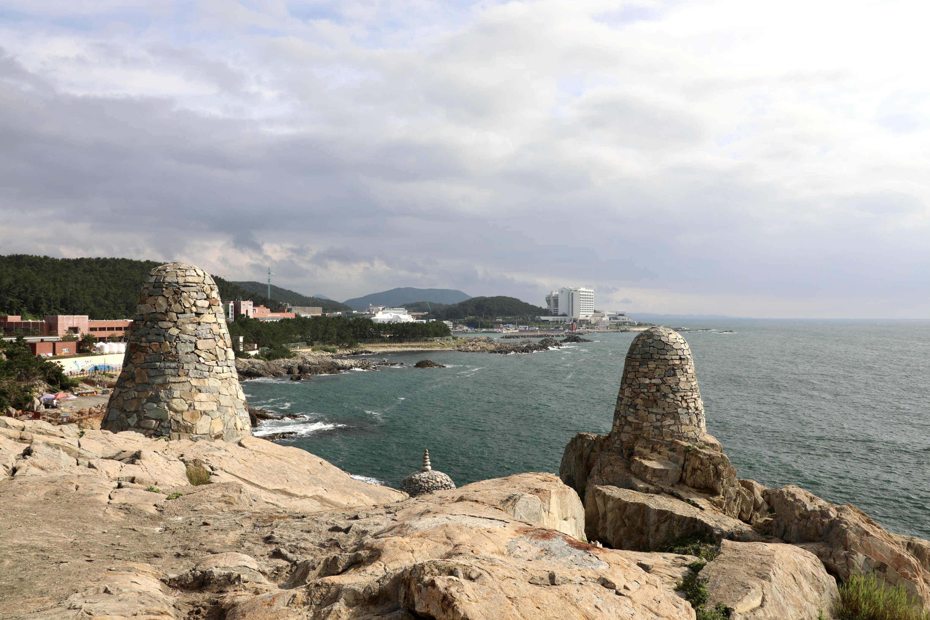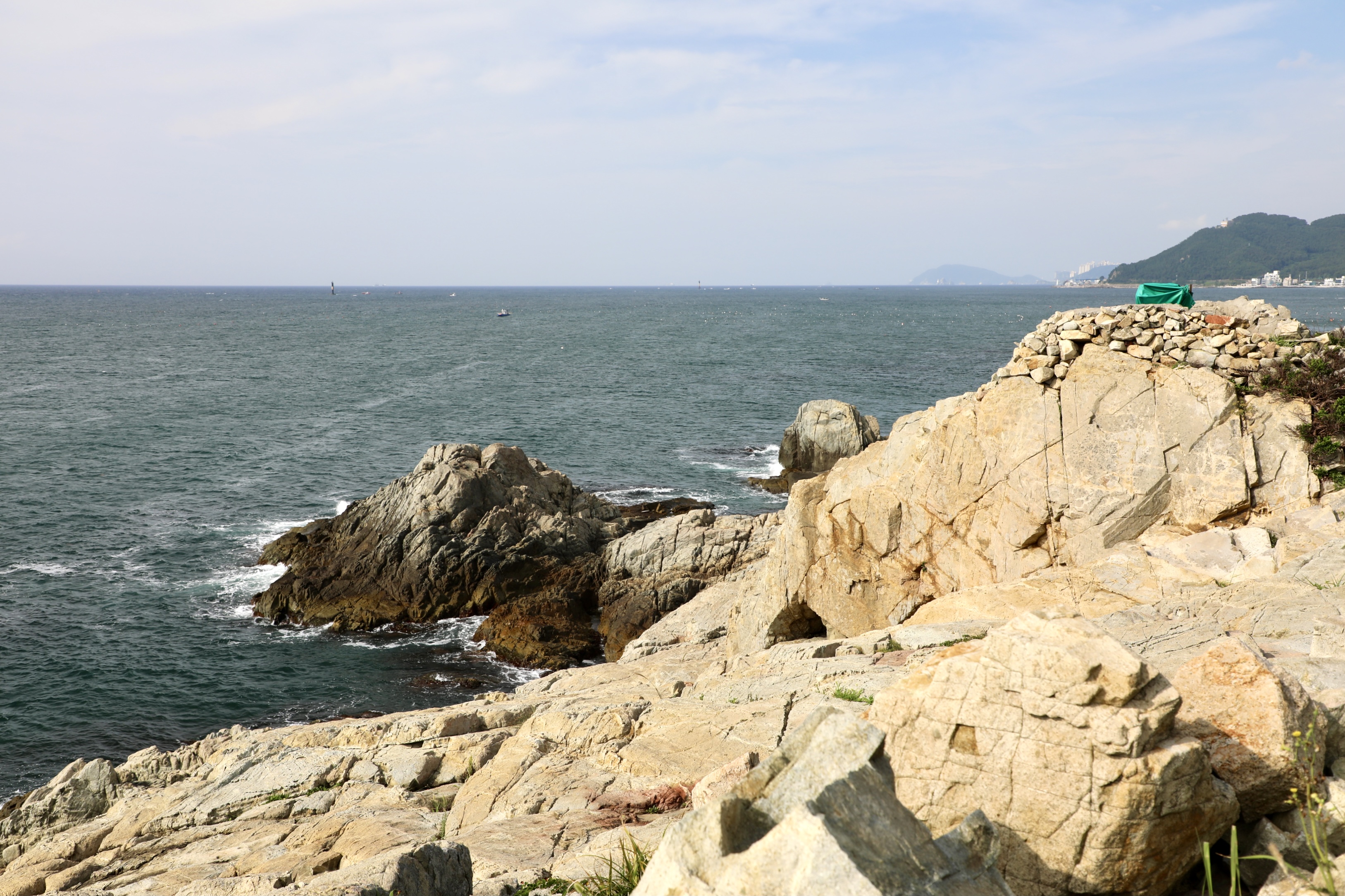 해동용궁사를 탐방하다 보니 돌탑 뒤로 시랑대가 있고 주변은 멋진 풍경의 해파랑길이다.