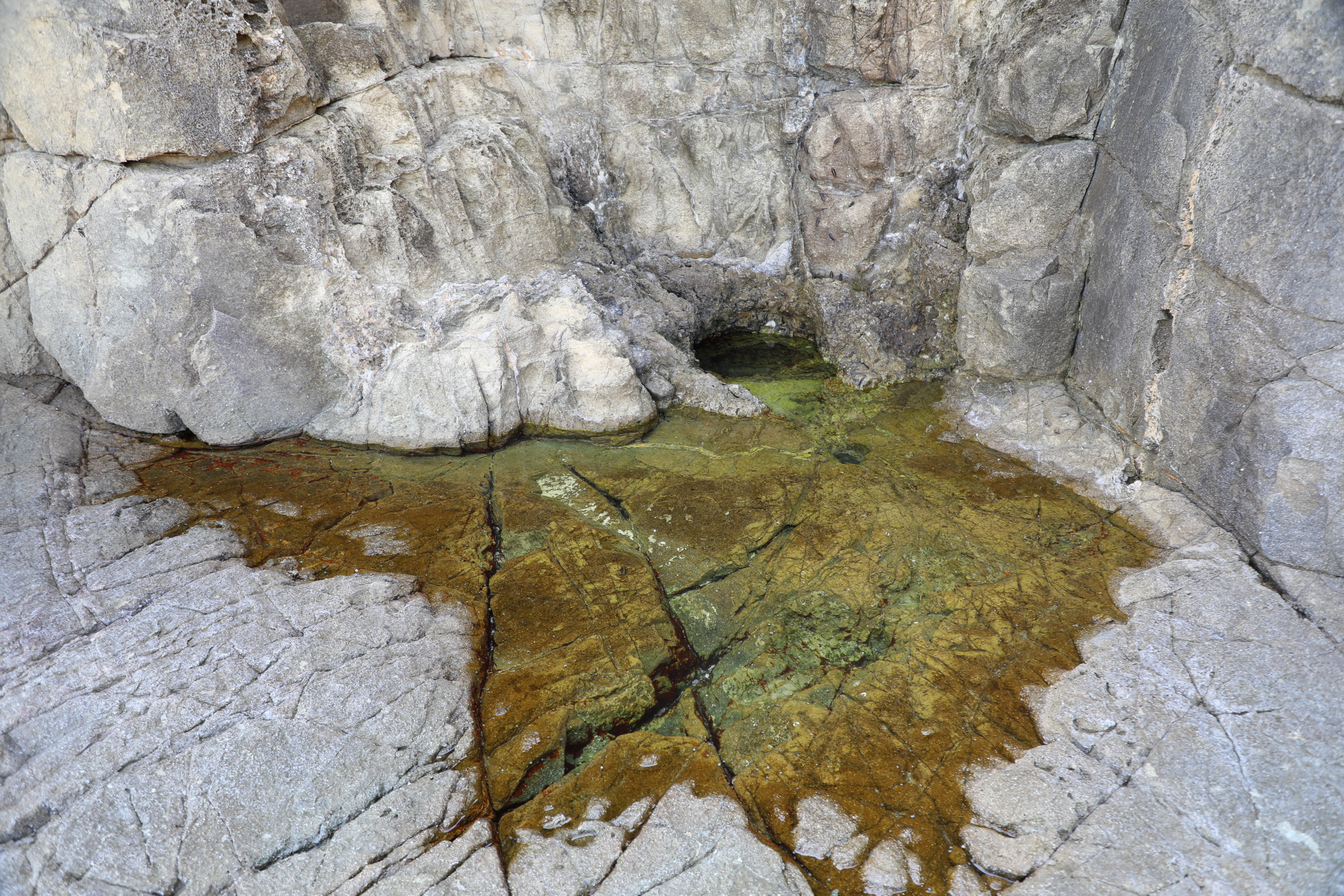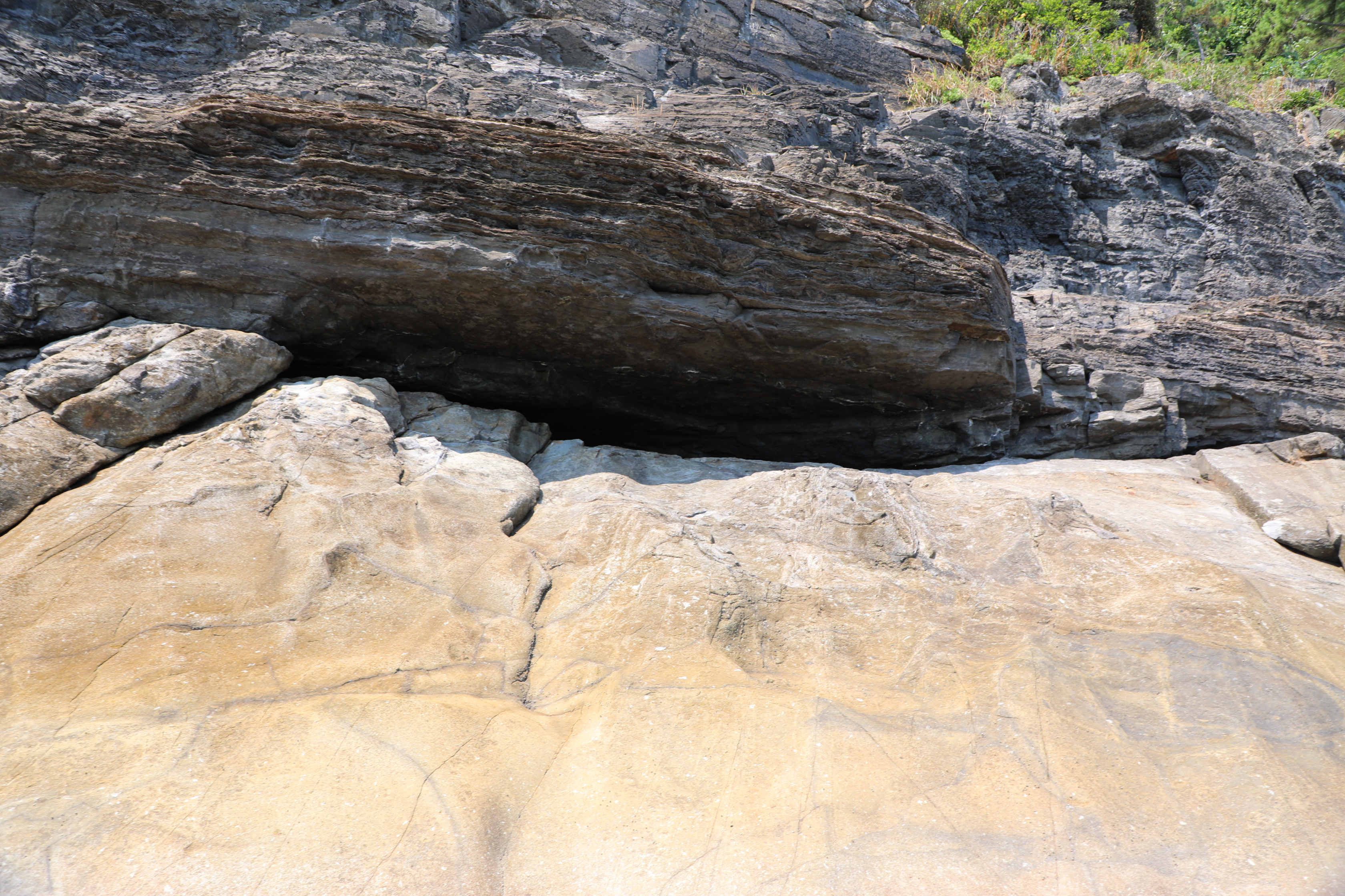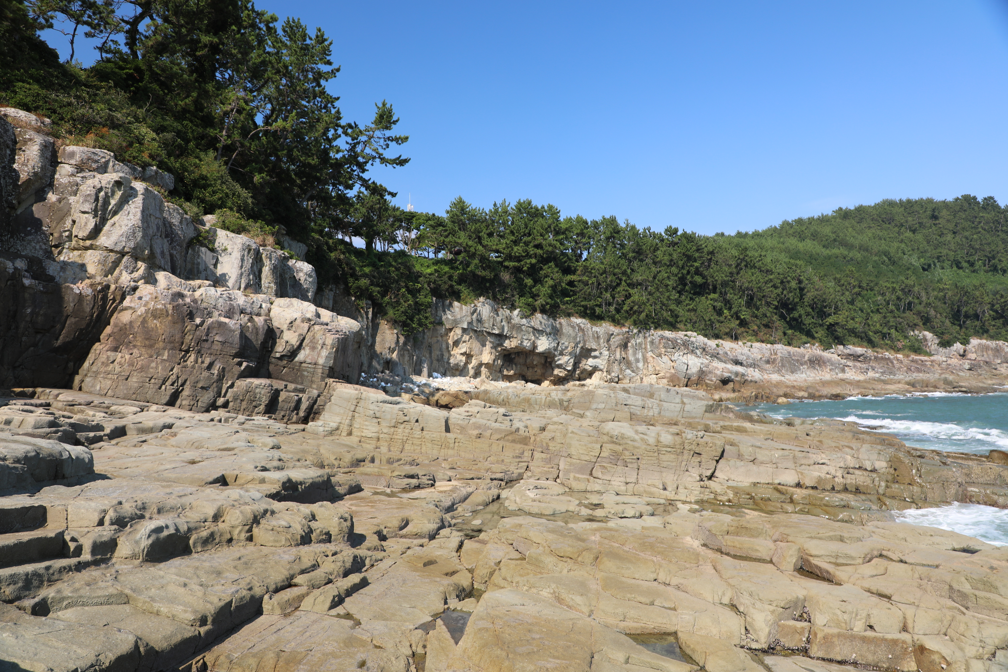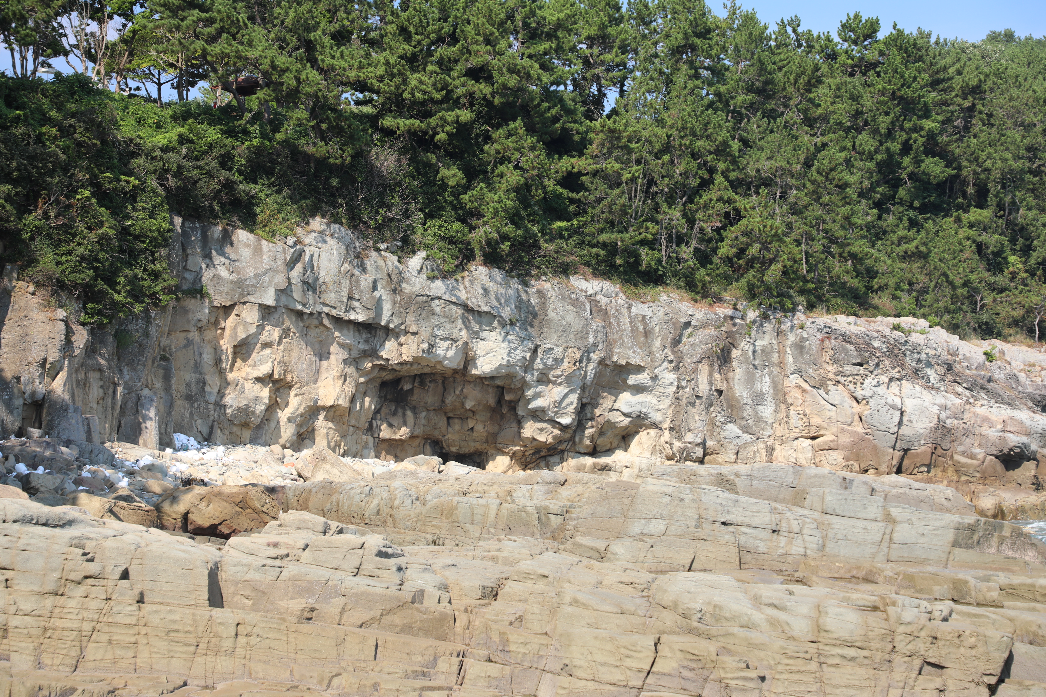이곳으로 내려가면 좋은데, 수직 절벽에 바닷물이 차 갈 수 없다.