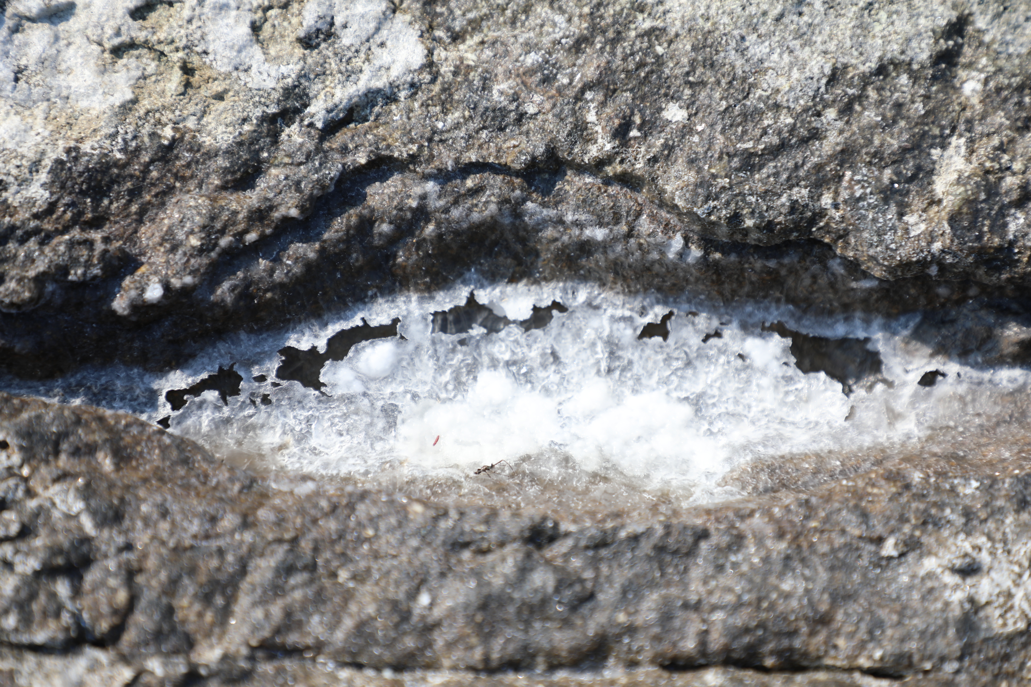 이런 여름에 웬 살얼음이겠냐마는 사실은 바위에 올라온 바닷물이 증발되며 소금을 만들었다.