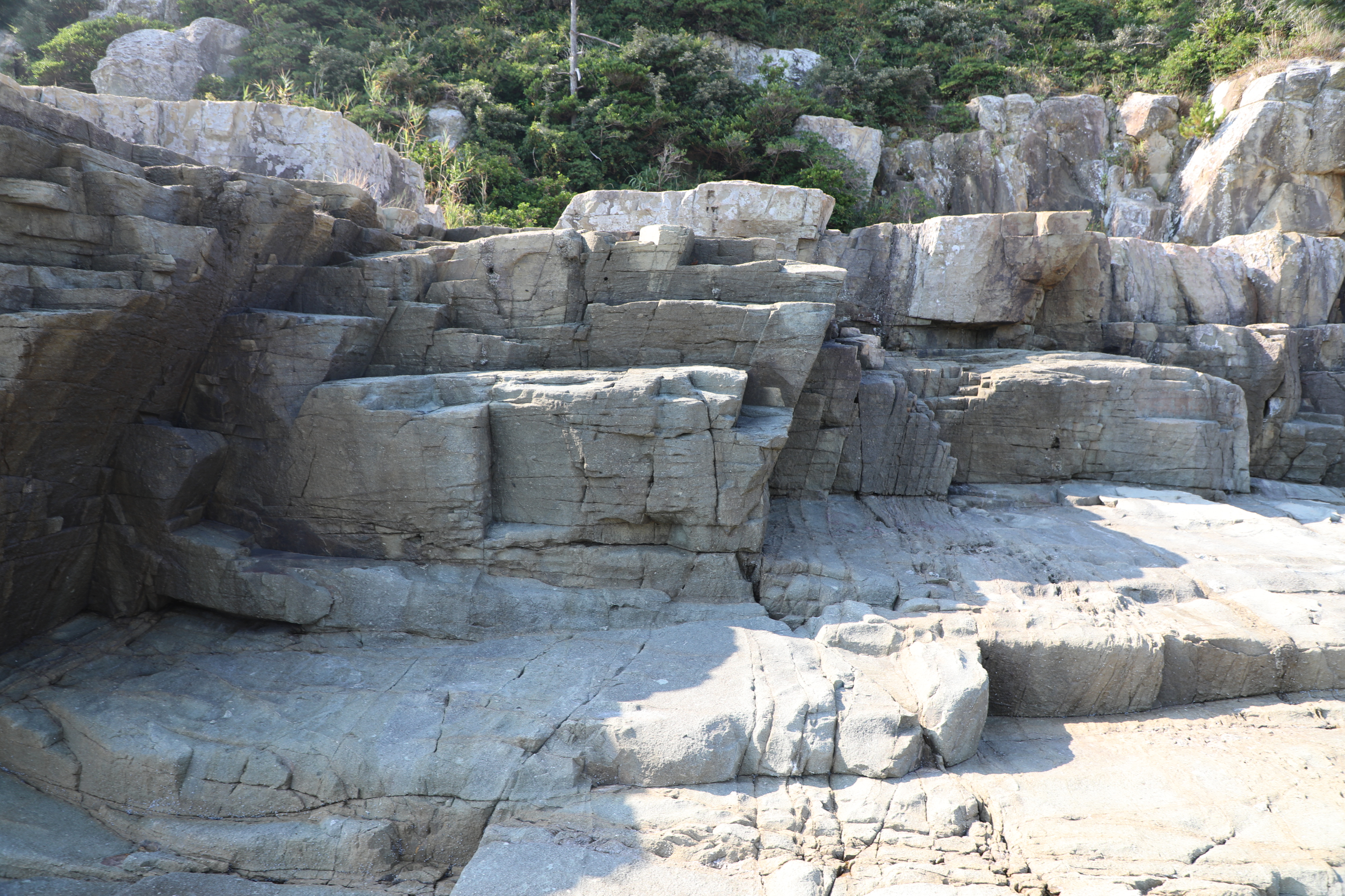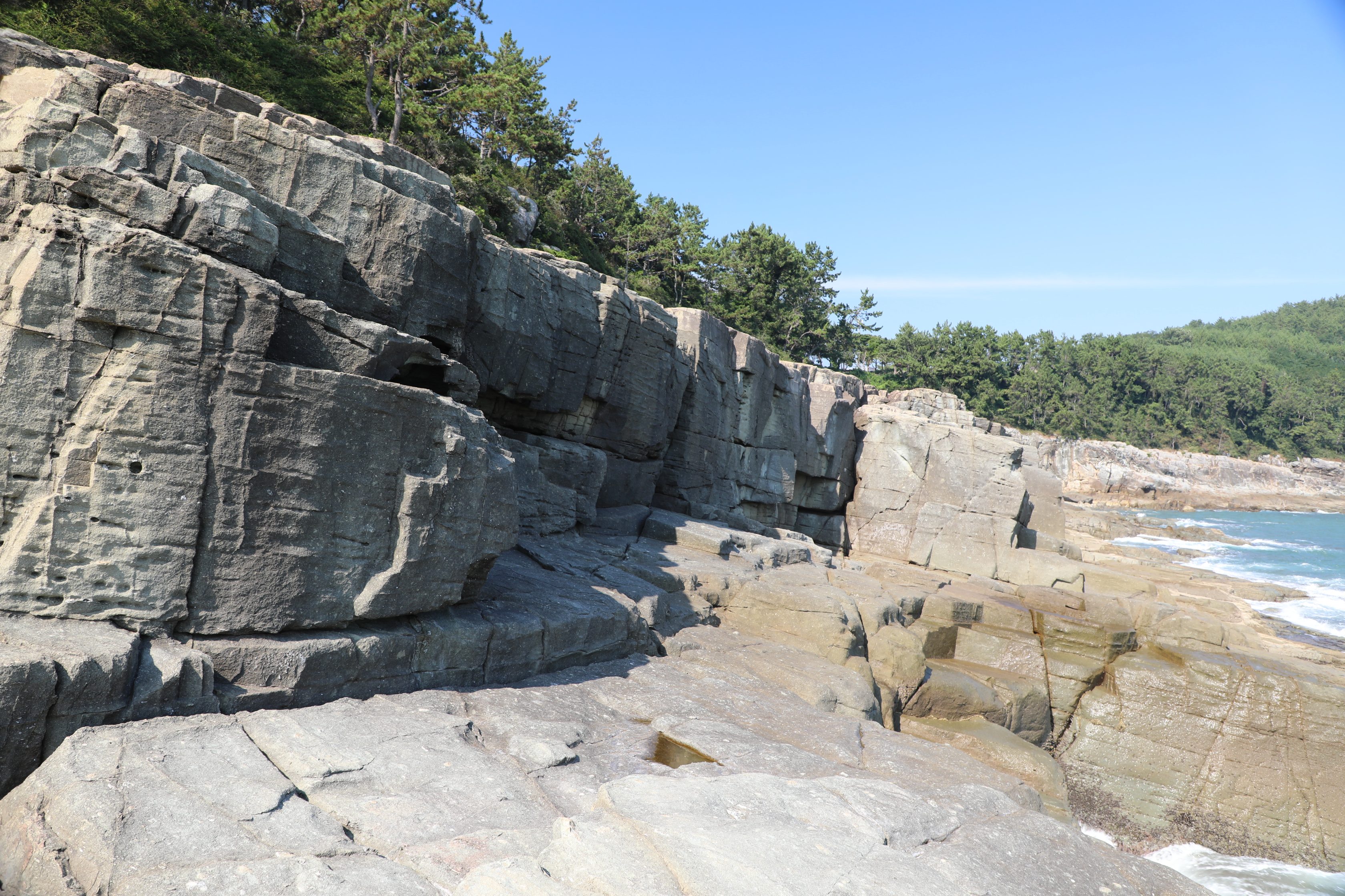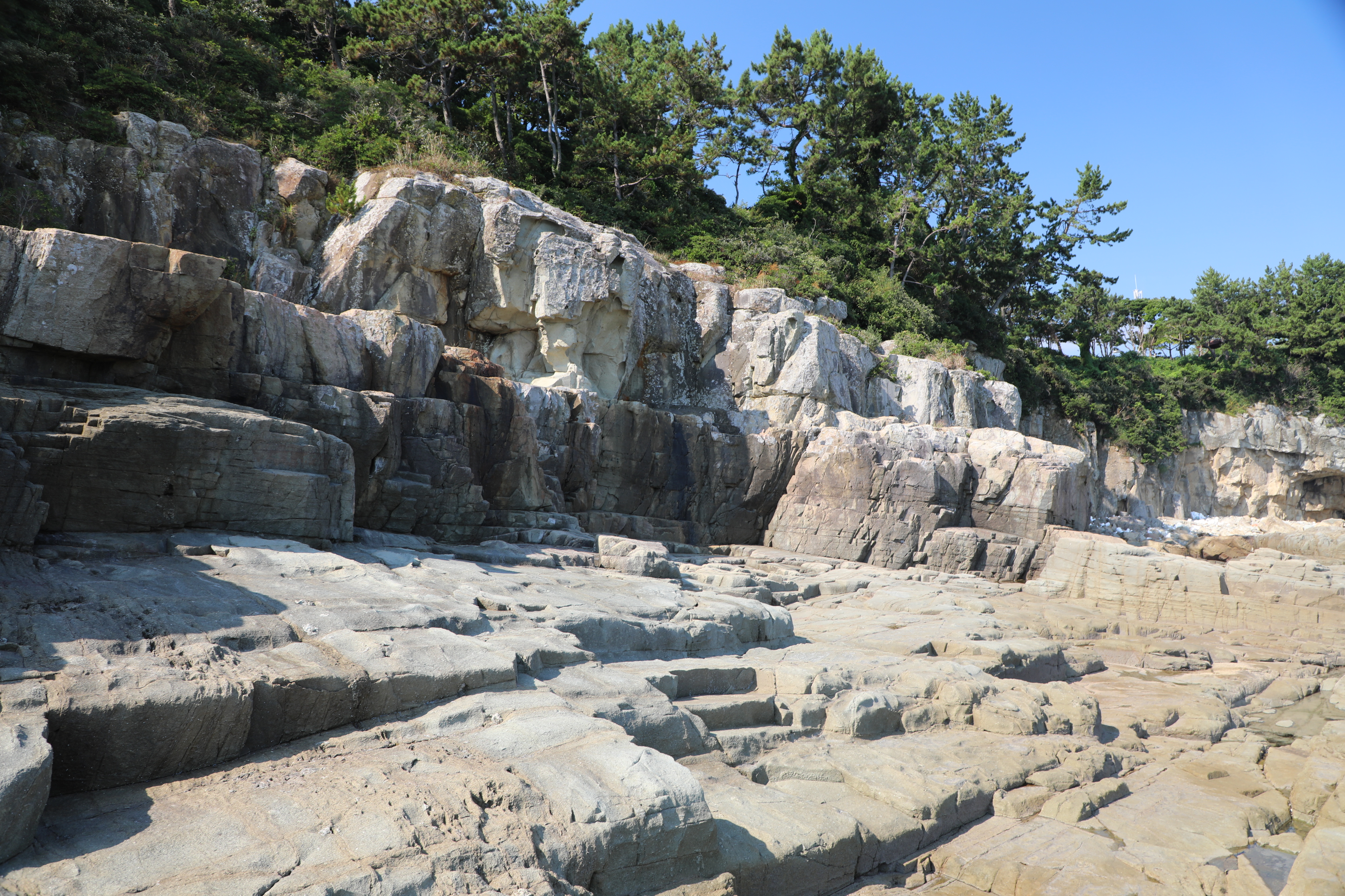 계단 형태의 단층 구조를 보여주는 신선대