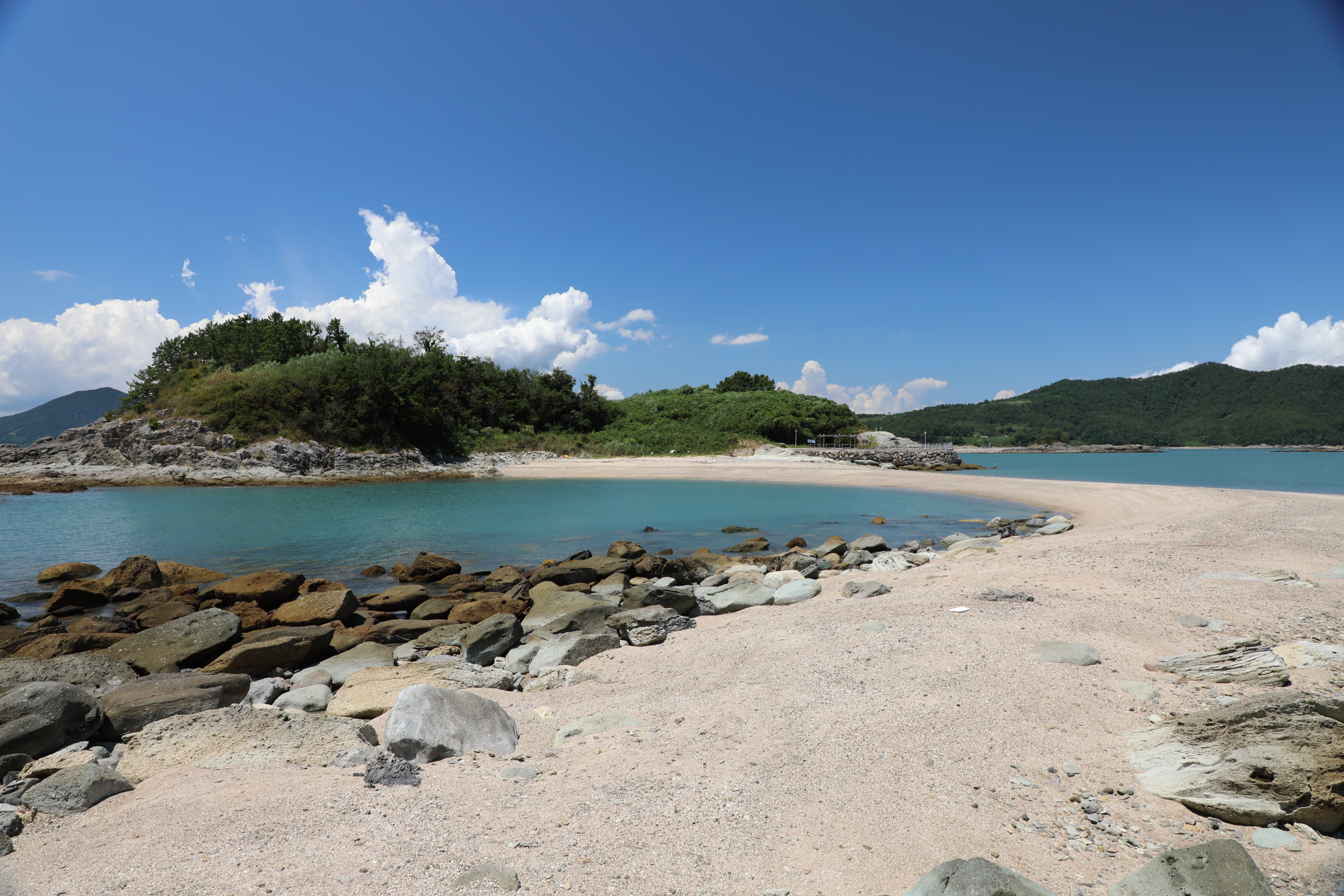 사도에선 용미암이나 얼굴바위도 멋지지만, 이 양면 해수욕장의 풍경은 정말 근사하다.