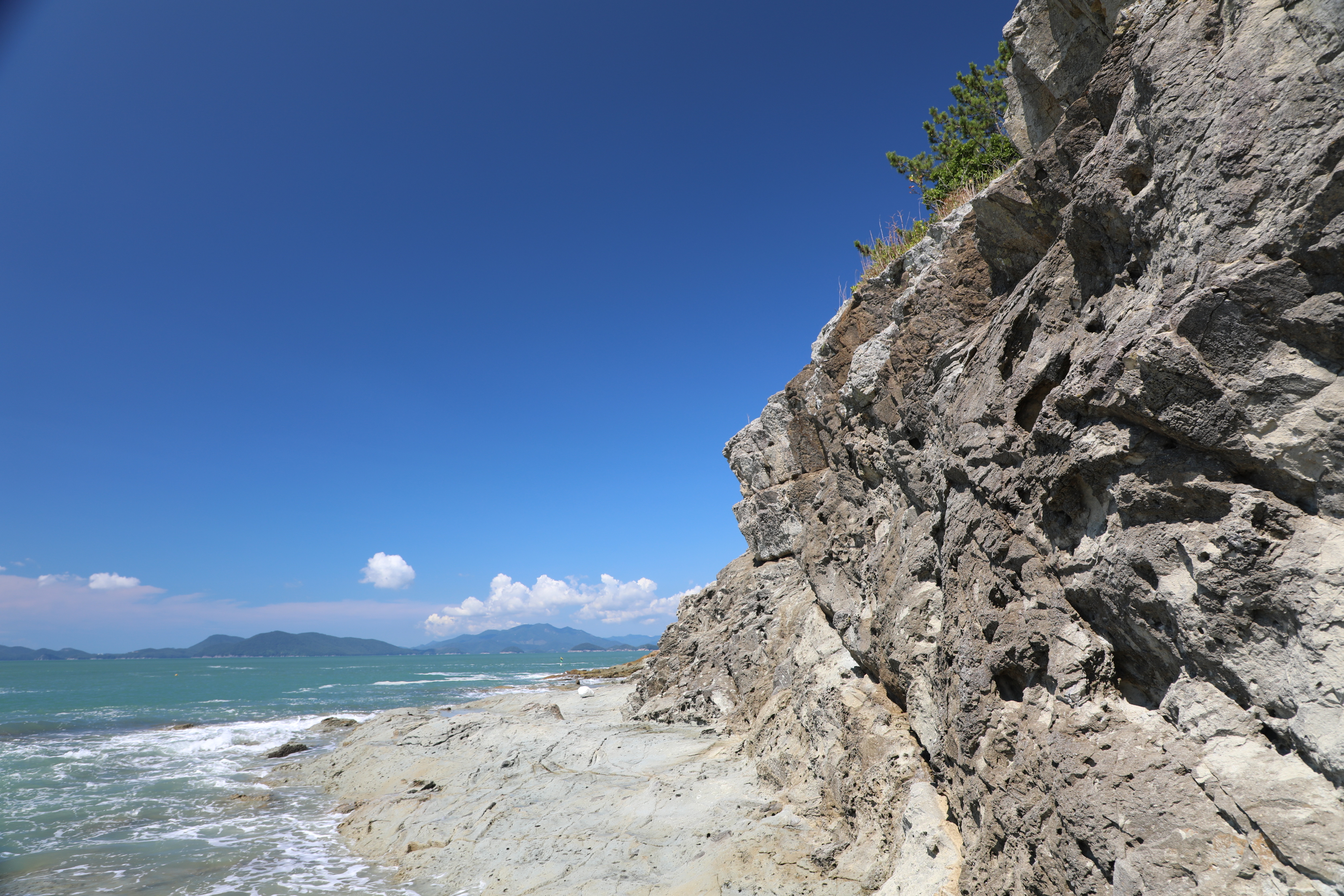 이런 돌섬이기에 공룡발자국 화석이 남아 있는가 하면 얼굴바위나 용꼬리바위 등 볼거리가 많다.