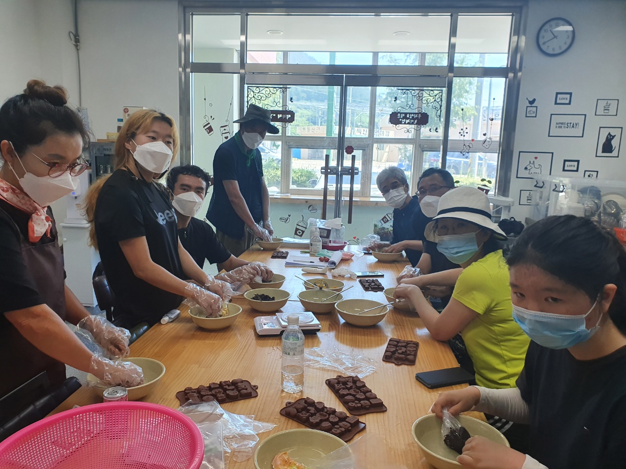 그 아이들 대신 다 큰 우리가 동심으로 돌아가 형형색색의 초콜릿을 만든다.