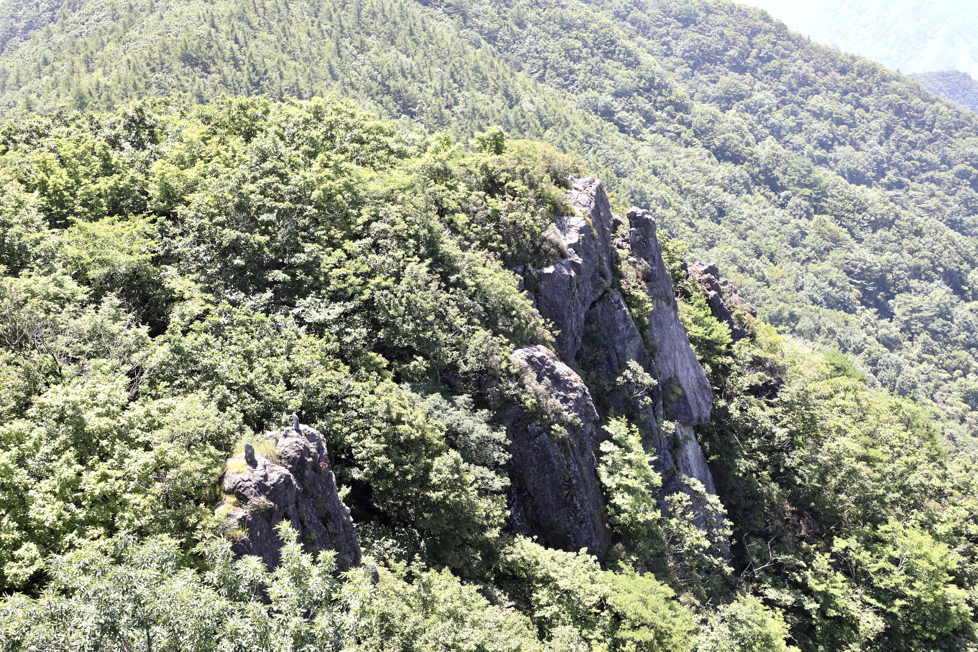 구름다리로 가는 암봉을 무척이나 가파르고 커다란 바위라 멀리서도 뚜렷하게 보인다.