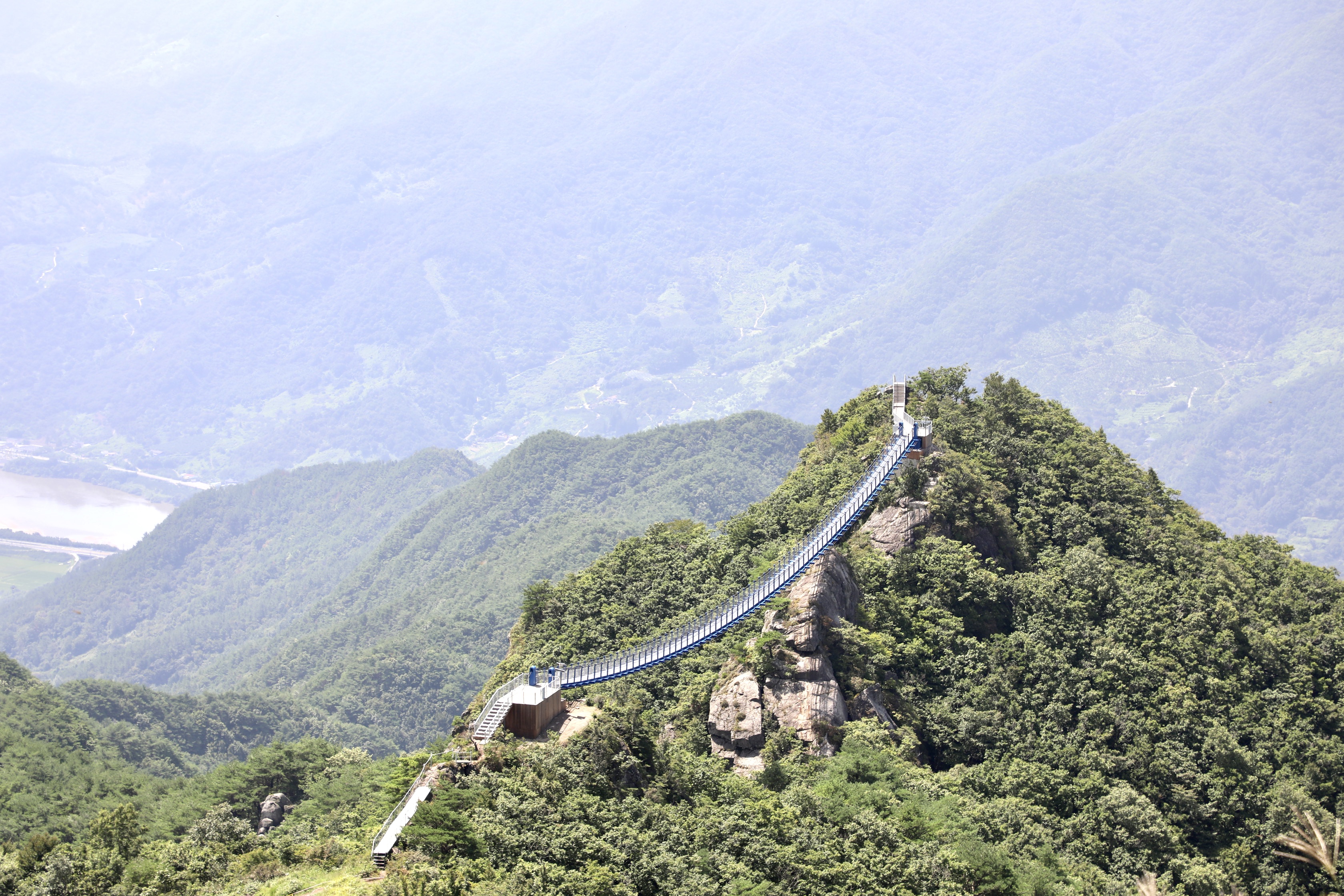 21일 군은 21억 9000만 원을 들여 지난해 3월 기존 출렁다리를 철거하고 새 구름다리 공사에 들어가 완공했다고 밝혔다.