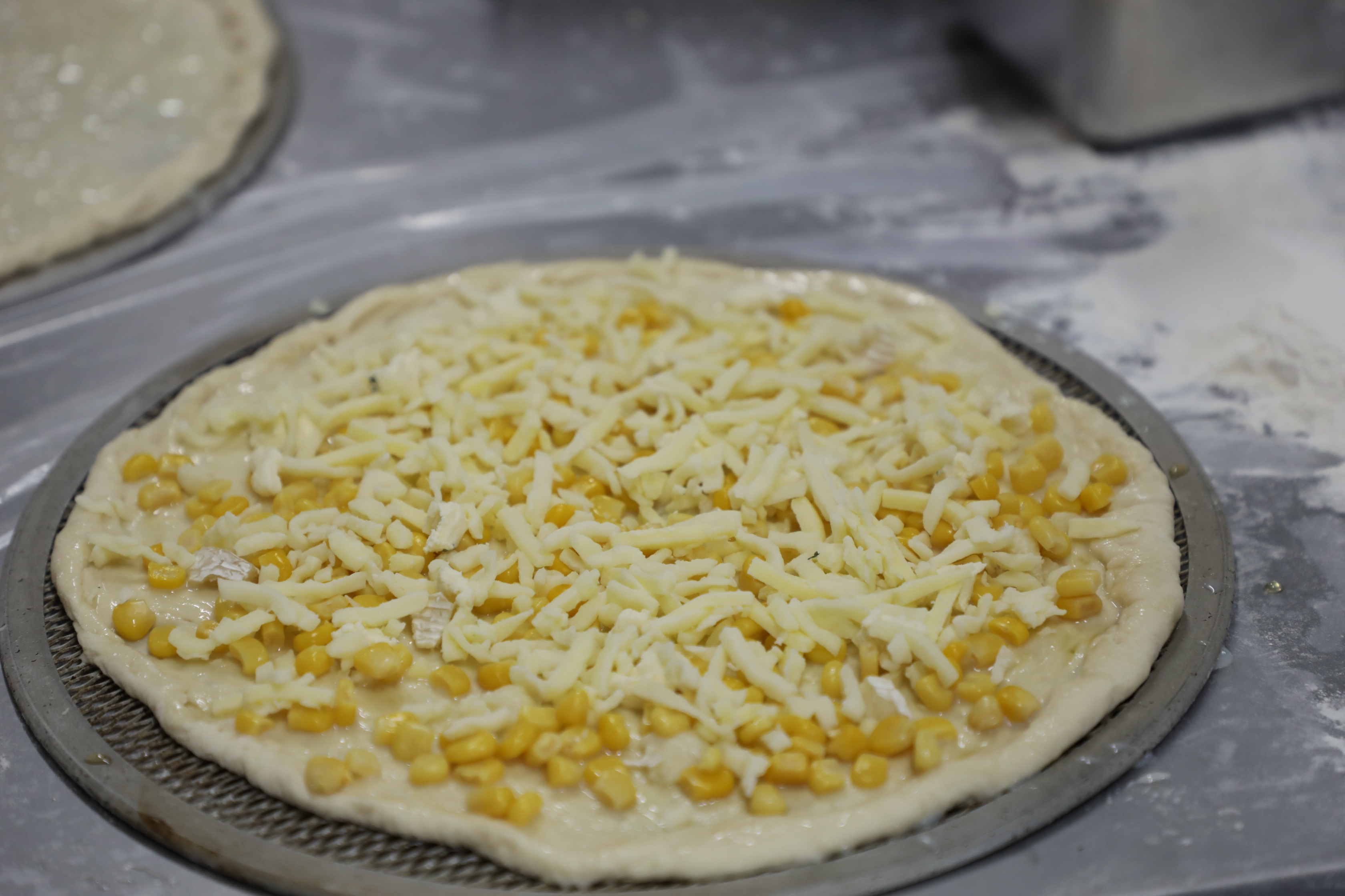 밀가루 반죽 잘 펴서 틀을 만들고 부재료 얹어 화덕으로 들어가면 끝이야.