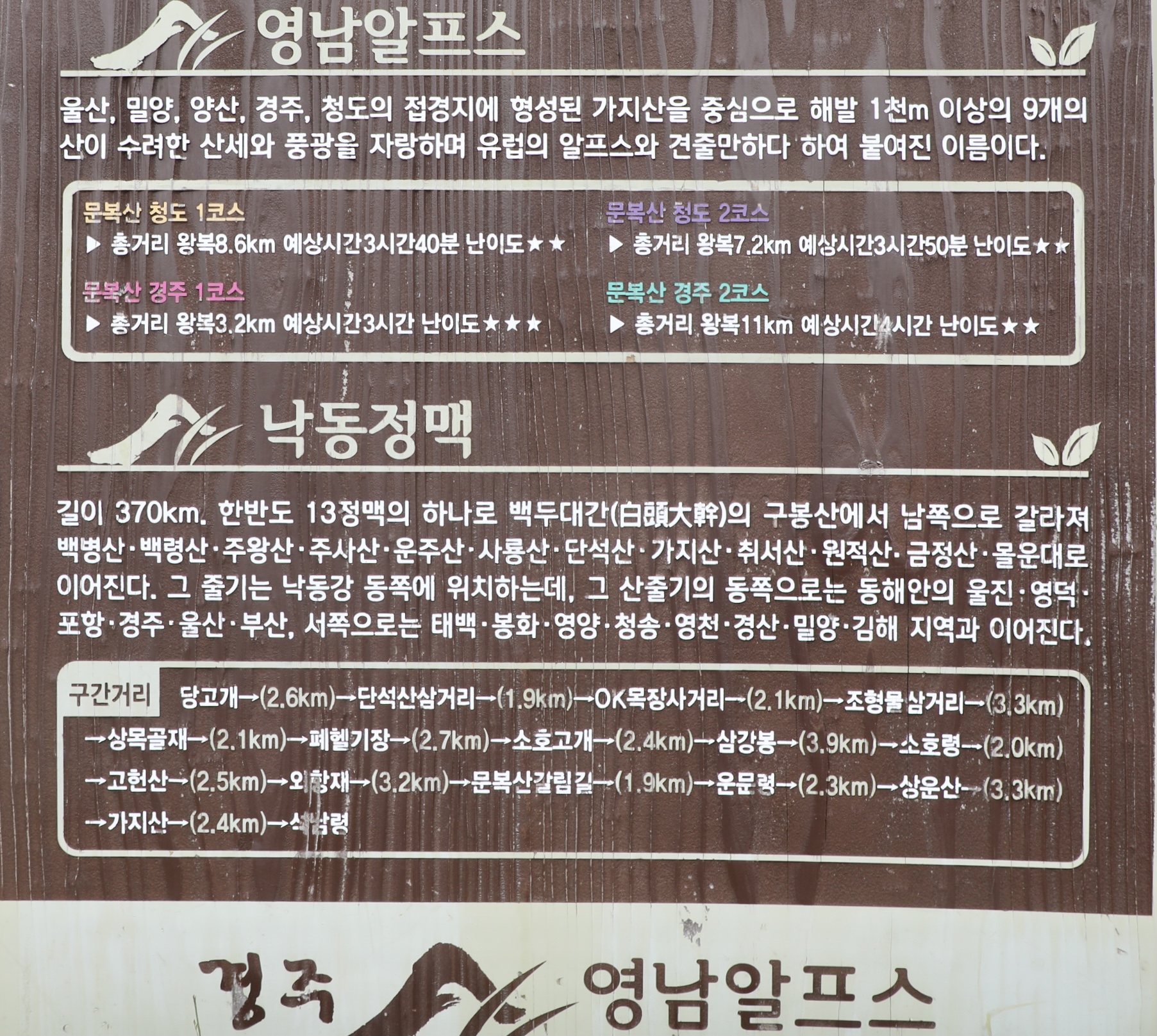 오전에 다녀온 고헌산과 이번에 산행할 문복산은 영남알프스 9봉에 끼워넣기로 들어간 느낌이다.