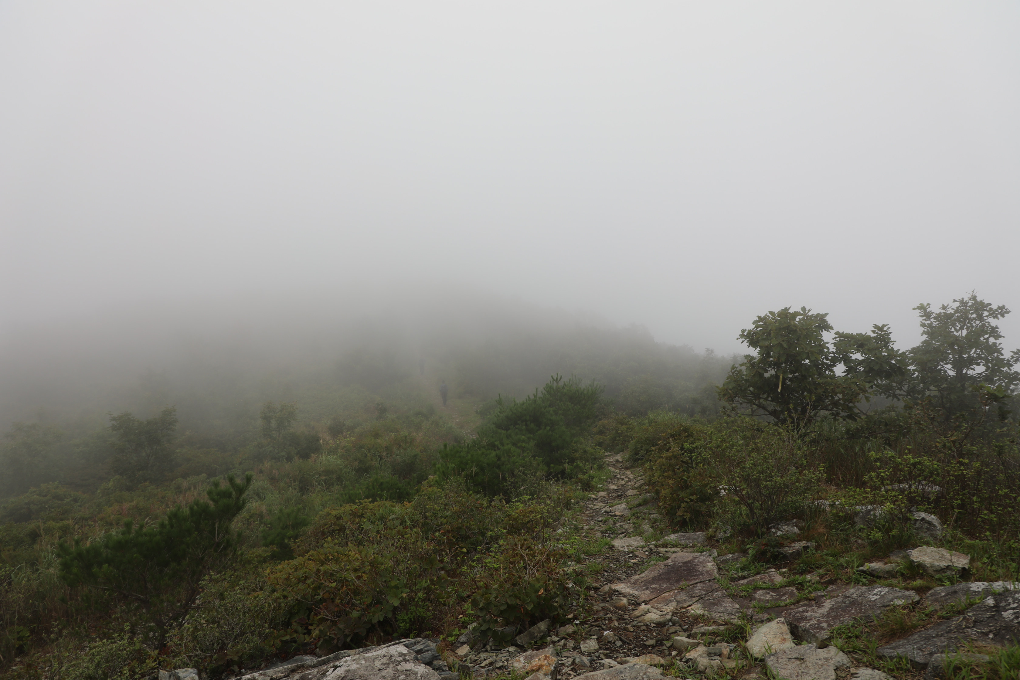 등산 중 안개가 심해 조망이 없고, 비도 내려 습기가 많으므로 드린바위로 내려가기는 어렵겠다는 생각이 든다.