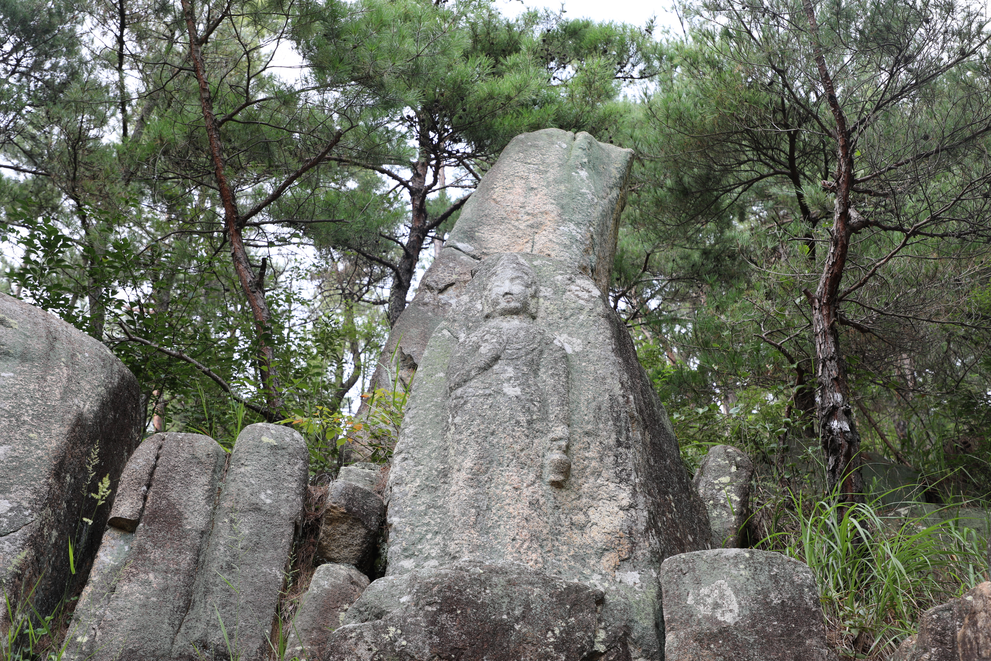 거대한 사각기둥 모양의 바위 남면을 다듬어 조각하였고 다른 면은 자연 그대로다.