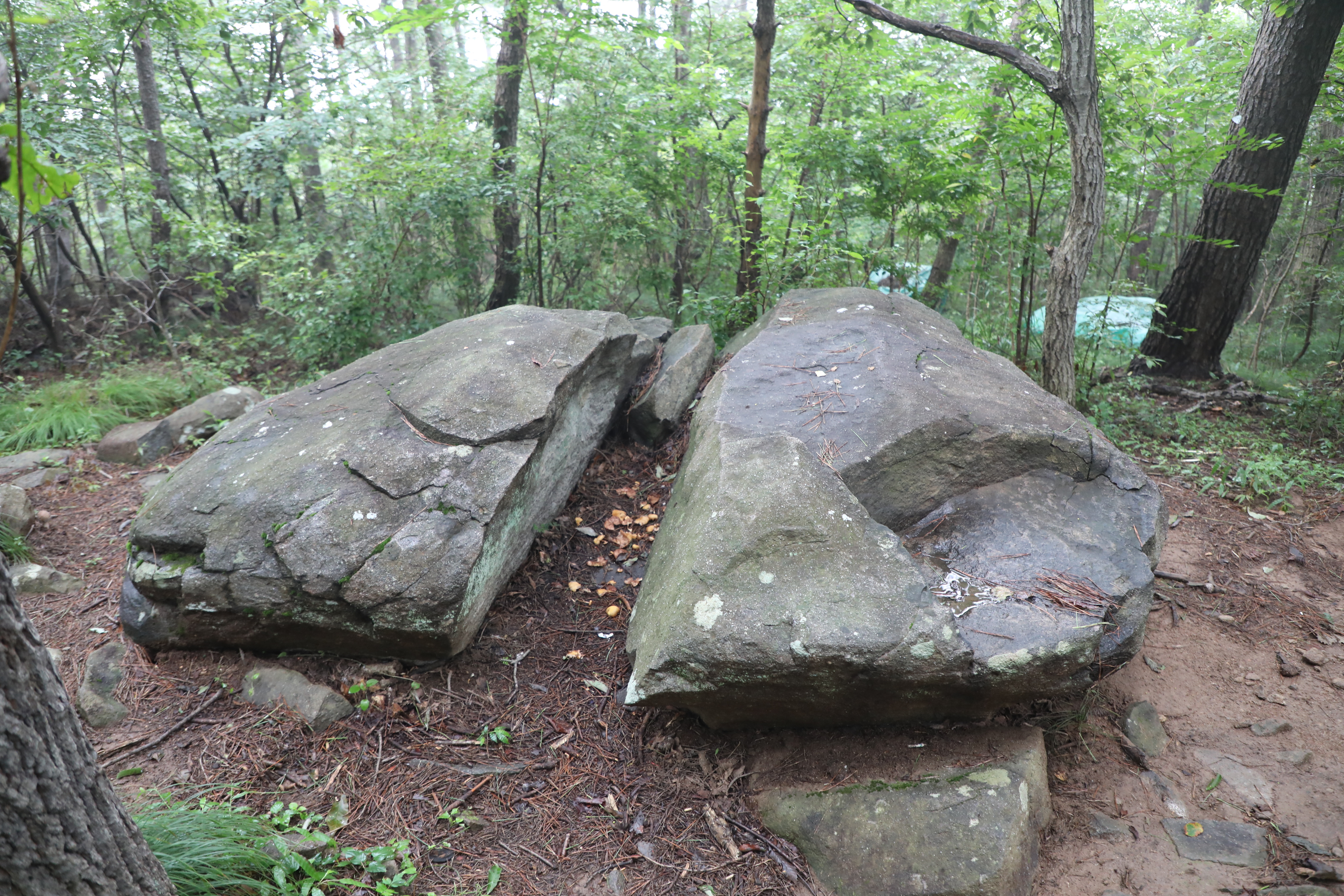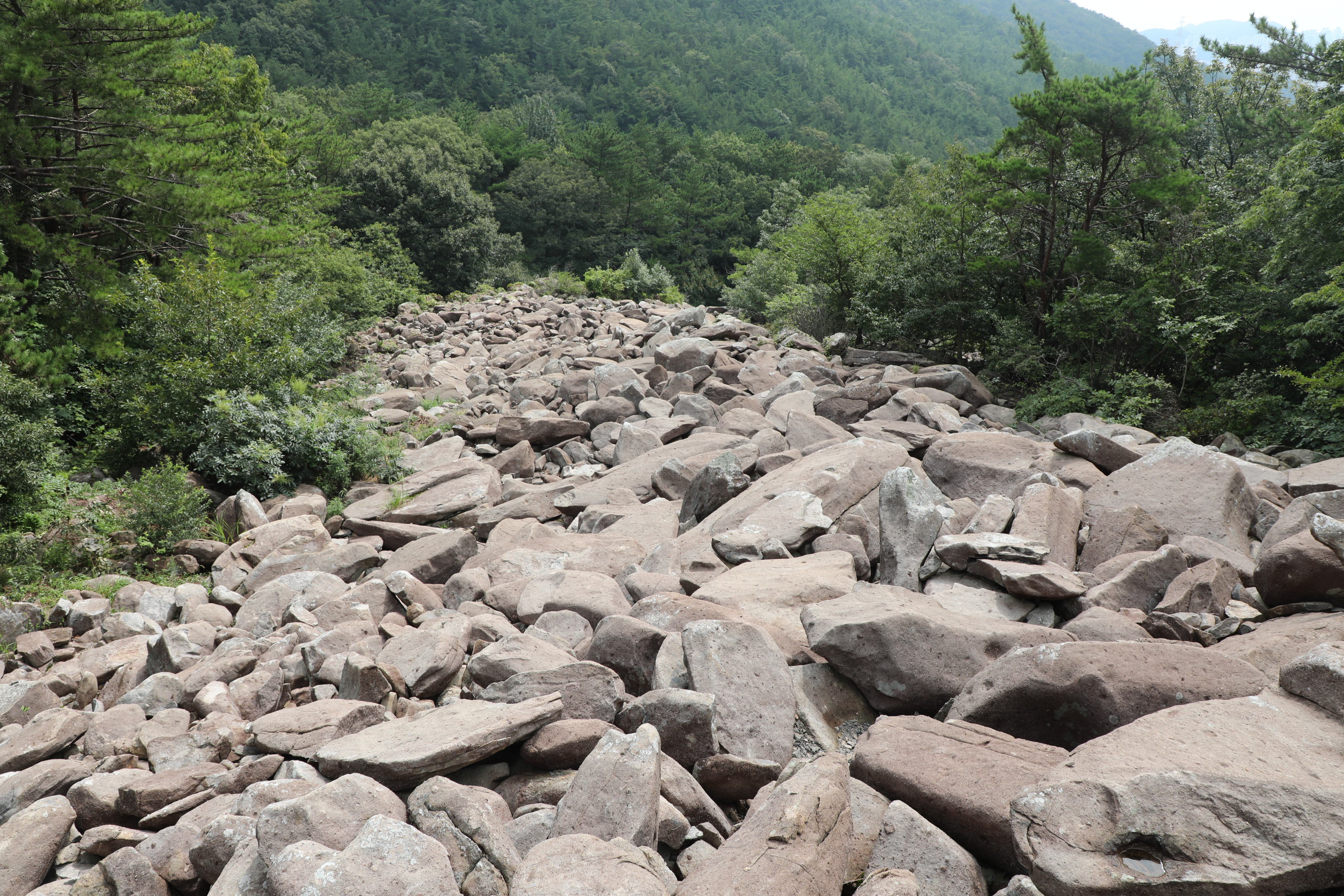 절리를 따라 암석에서 분리된 돌들이 쌓여 밭을 이룬 ‘너덜’이 잘 발달하였다.