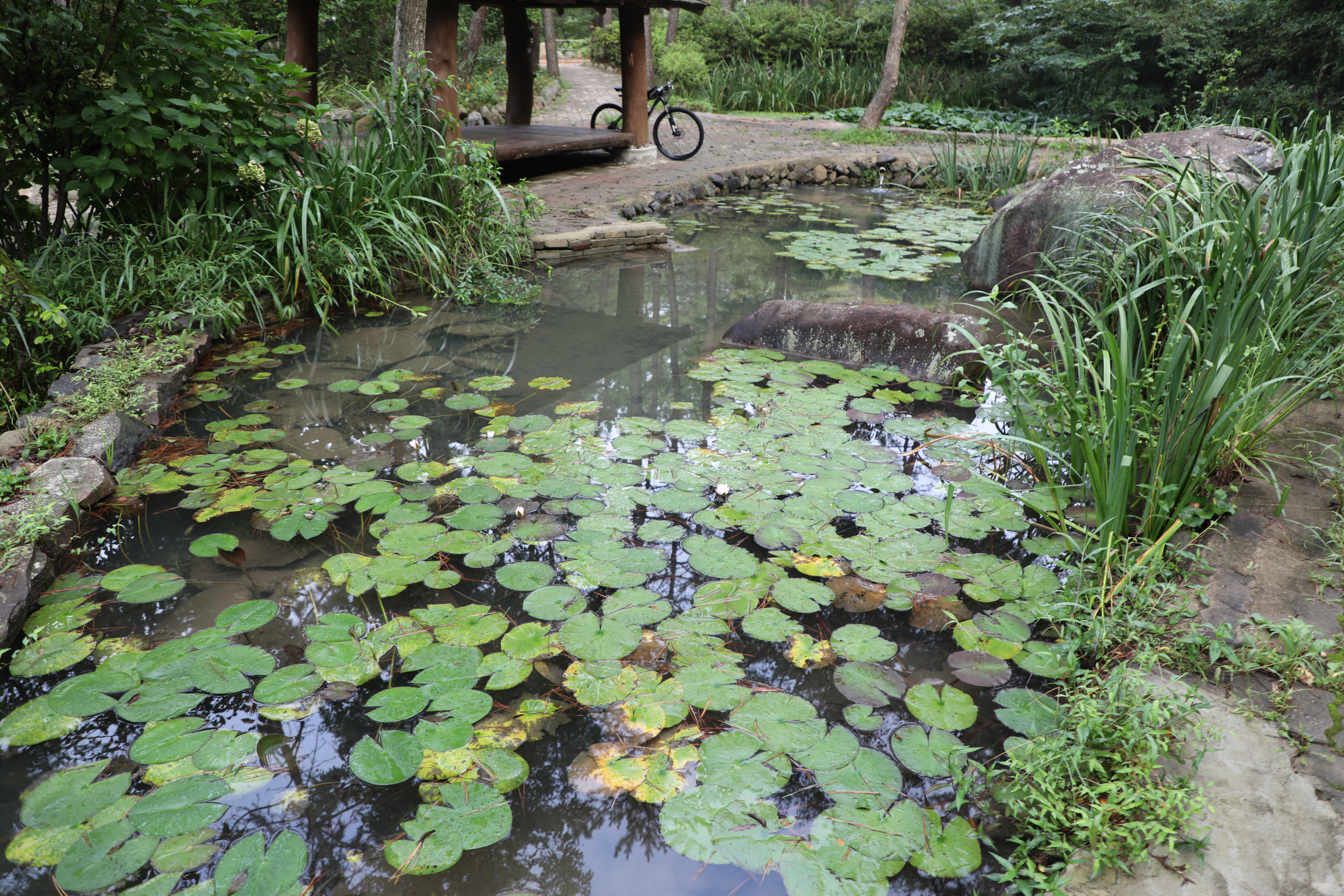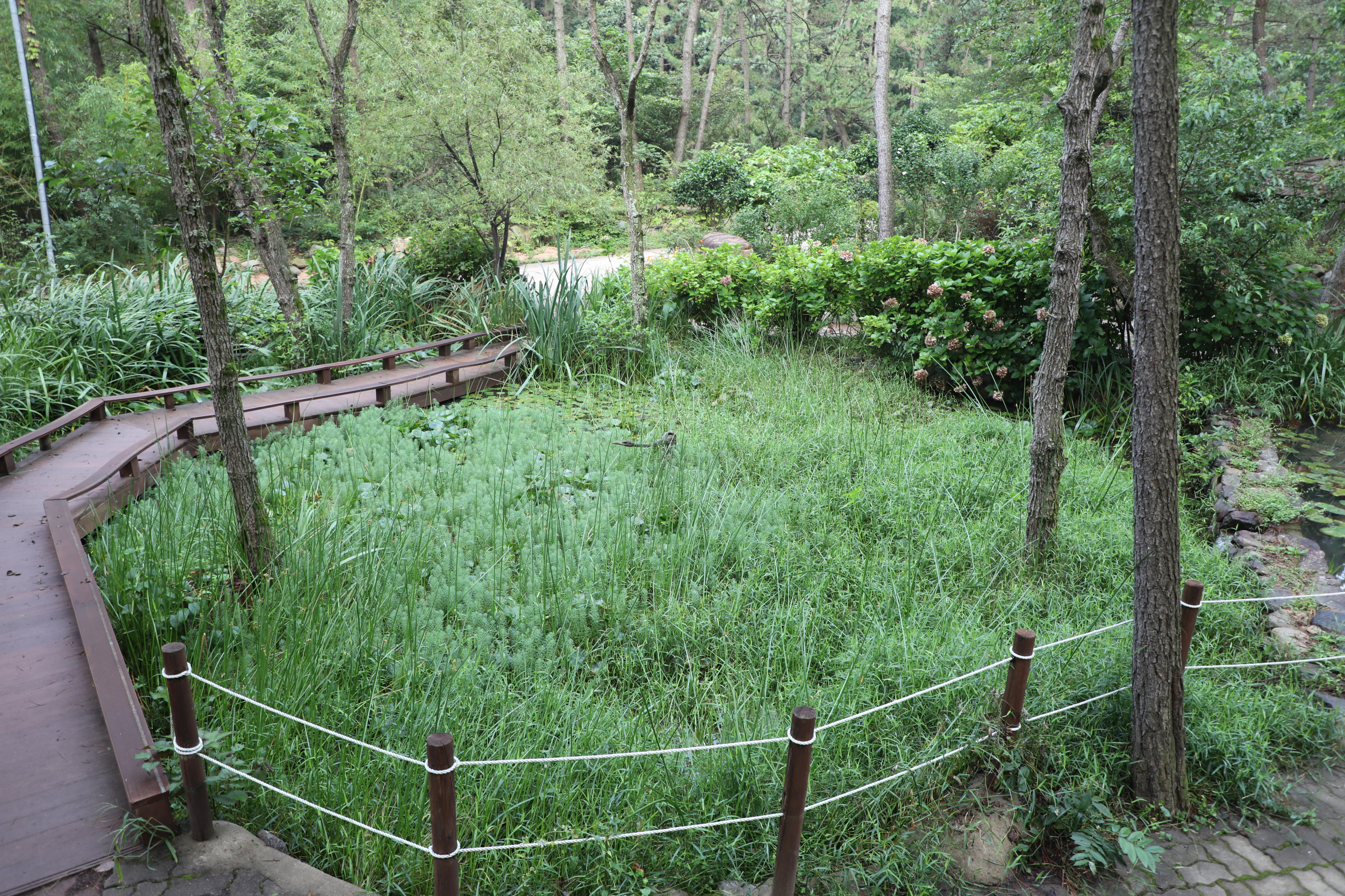 장산 계곡엔 시민을 위해 습지를 만들고 연꽃도 키운다.