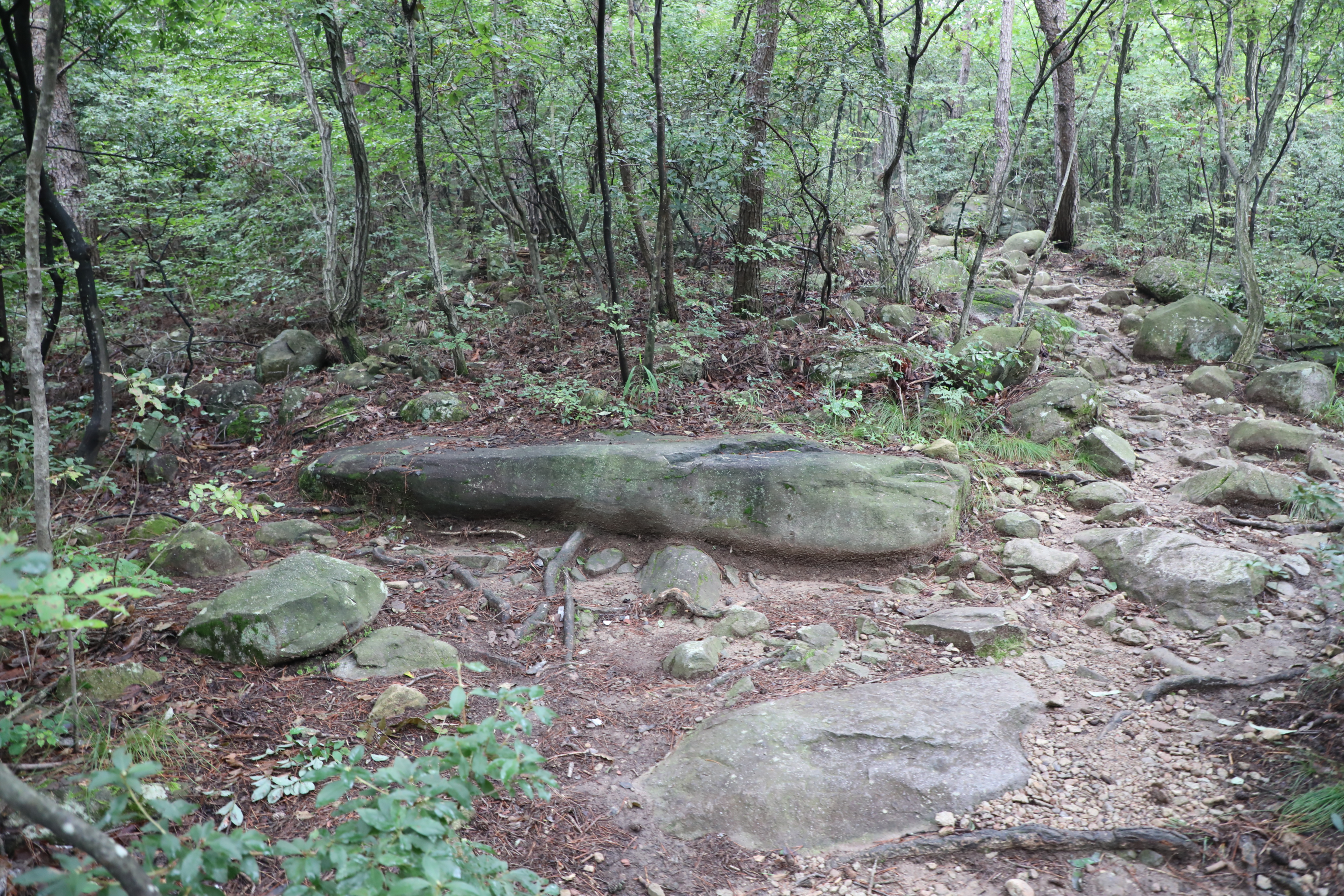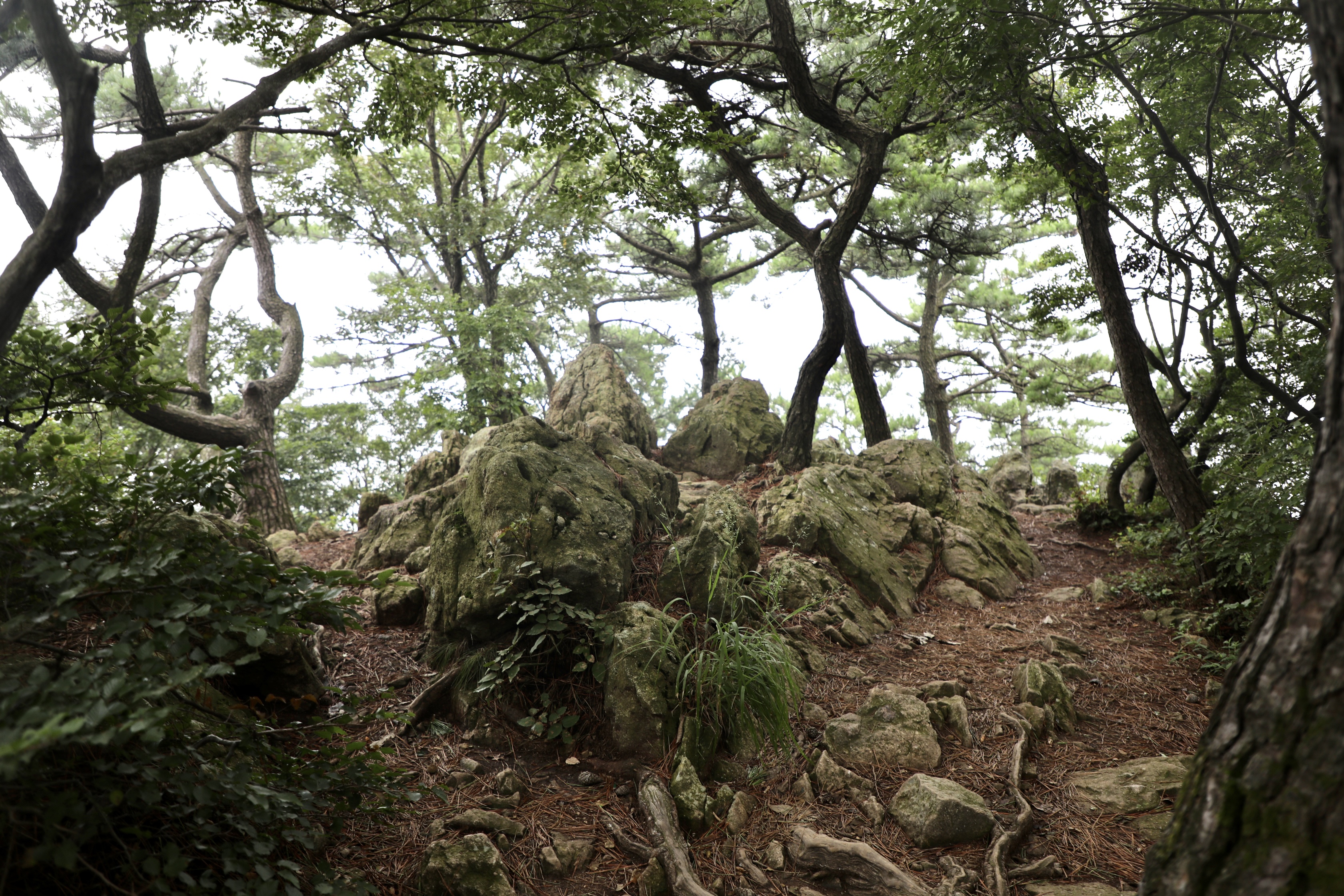 장산 기슭에는 크고 작은 바윗돌이 비탈을 이루며 모여 있다.