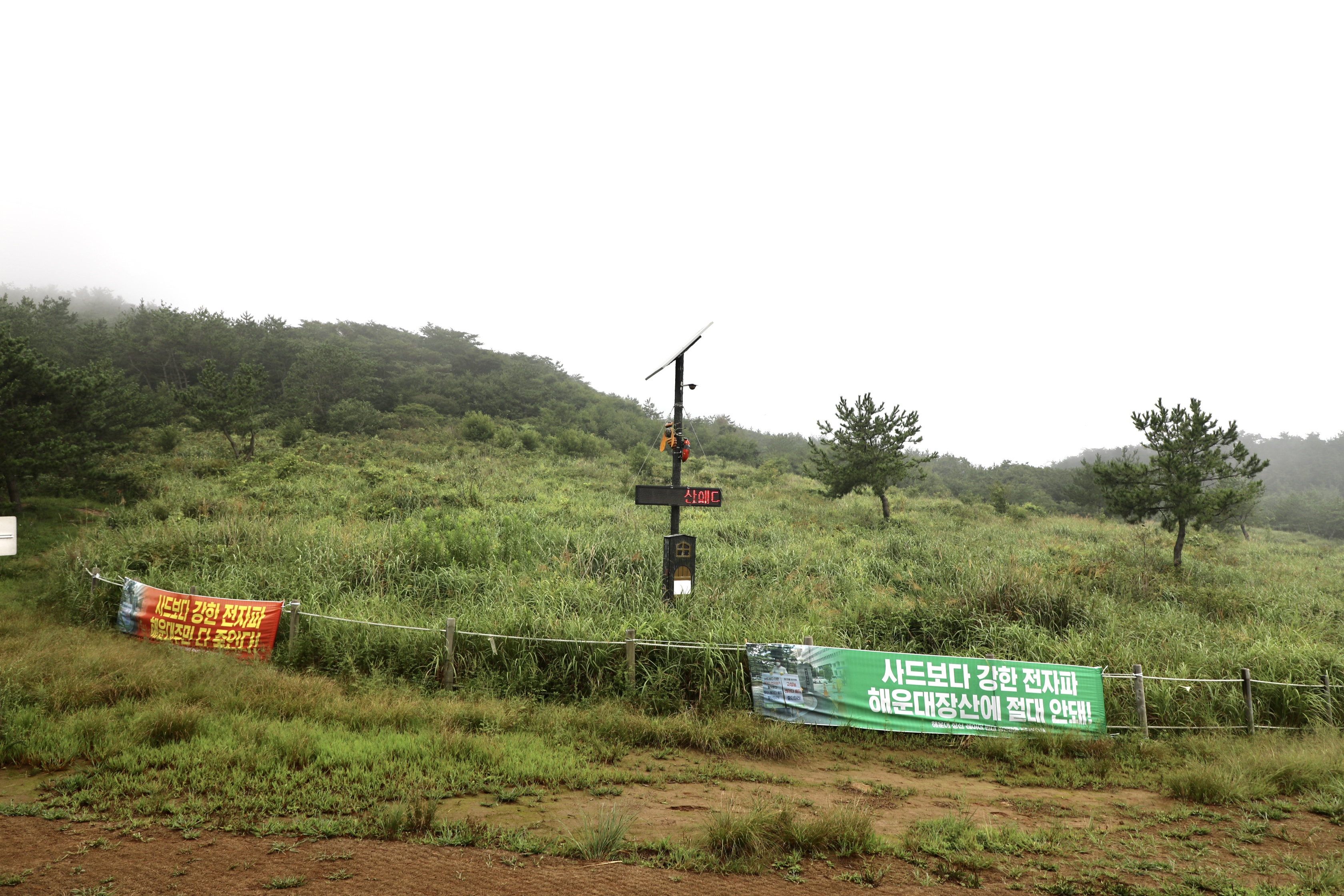 장산에 뭔가 들어서길래 항의하는 현수막 두 개가 걸려있을까?