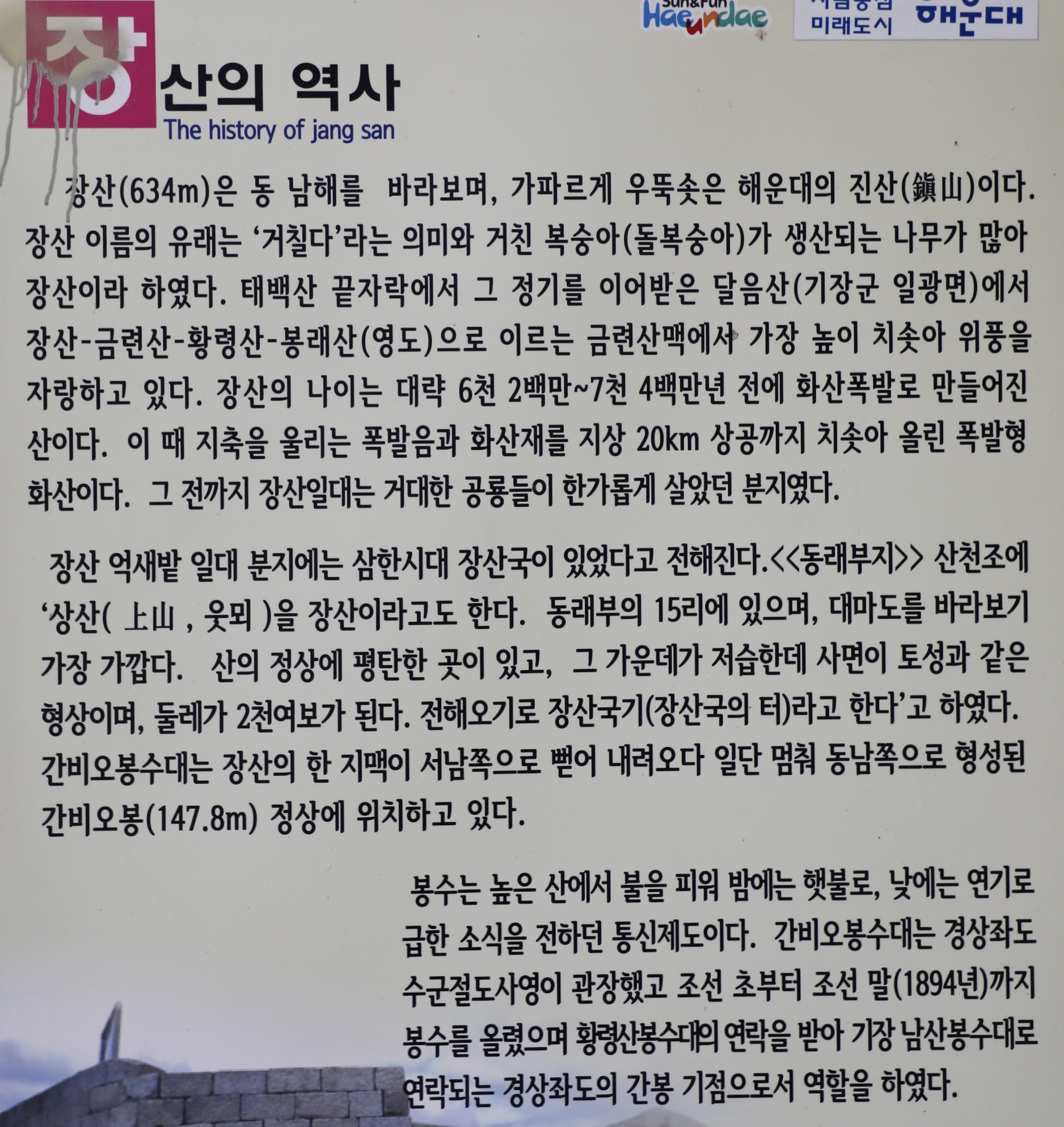 이번에 오를 산은 부산의 3대 명산 중 하나인 장산이다.