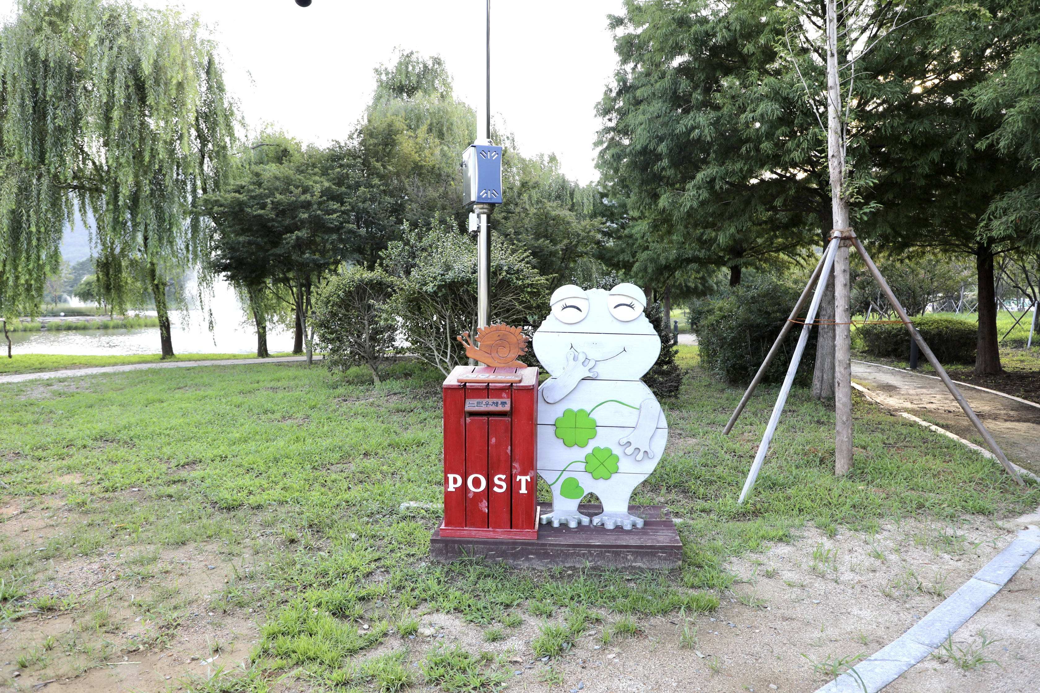 우체통에 편지를 쓰려고 했더니 요즘 자주 내린 비에 종이가 젖었다.