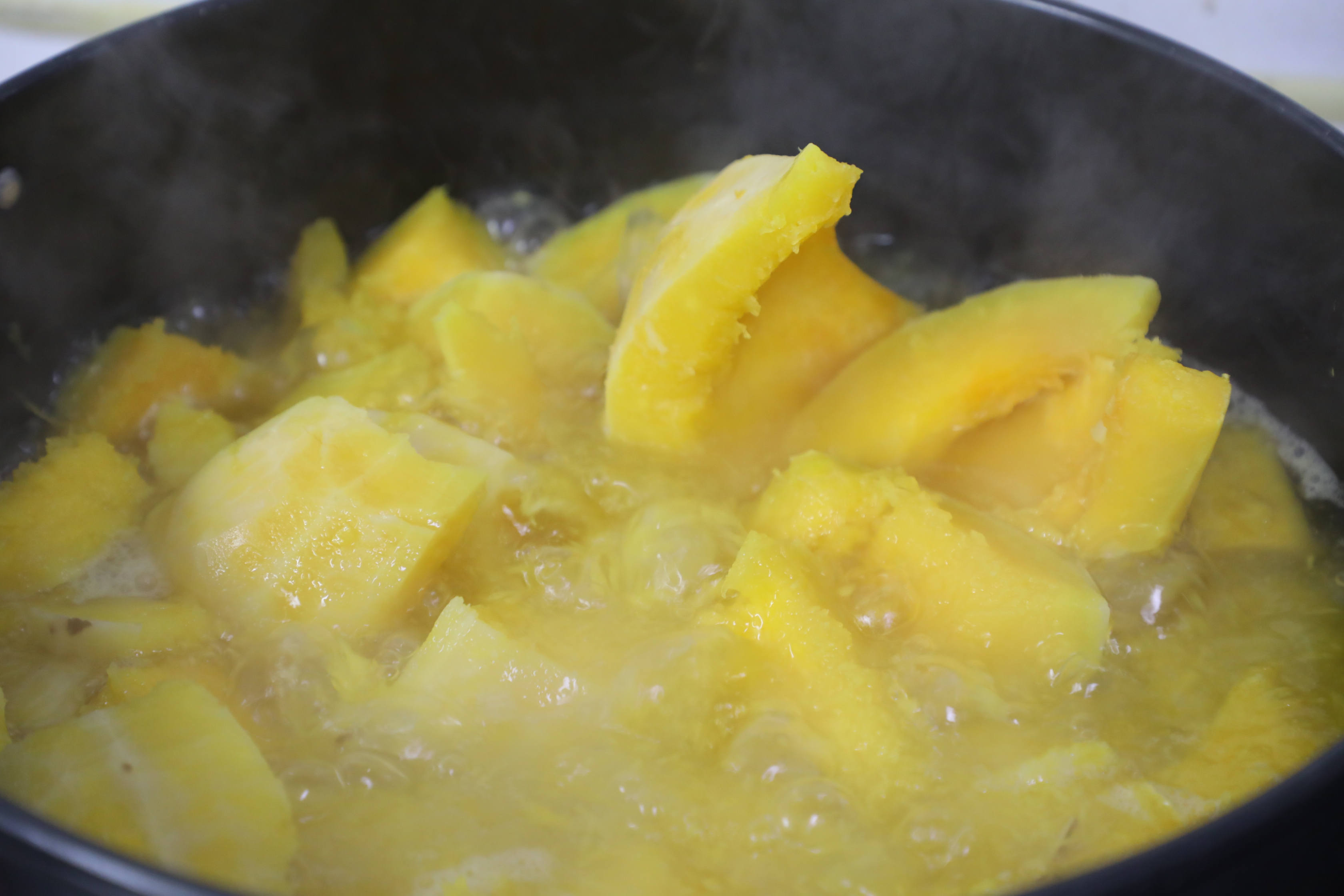 단호박은 마디가 옆으로 생긴 걸 마디 따라 칼로 조각 내야 해.