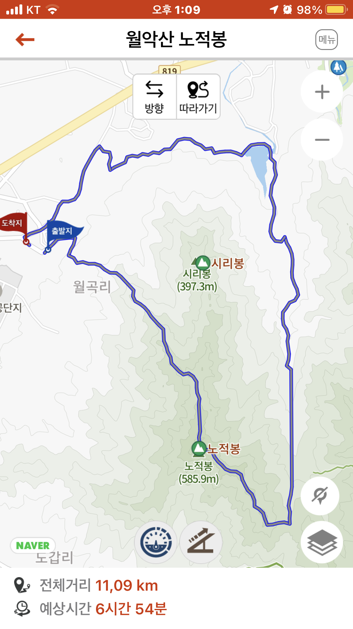 지난번과 달리 이번엔 좀 더 진행하며 도갑사로 하산하며 했으나 좀 더 올라가는 길과 반대 편으로 내려가는 길만 보인다.