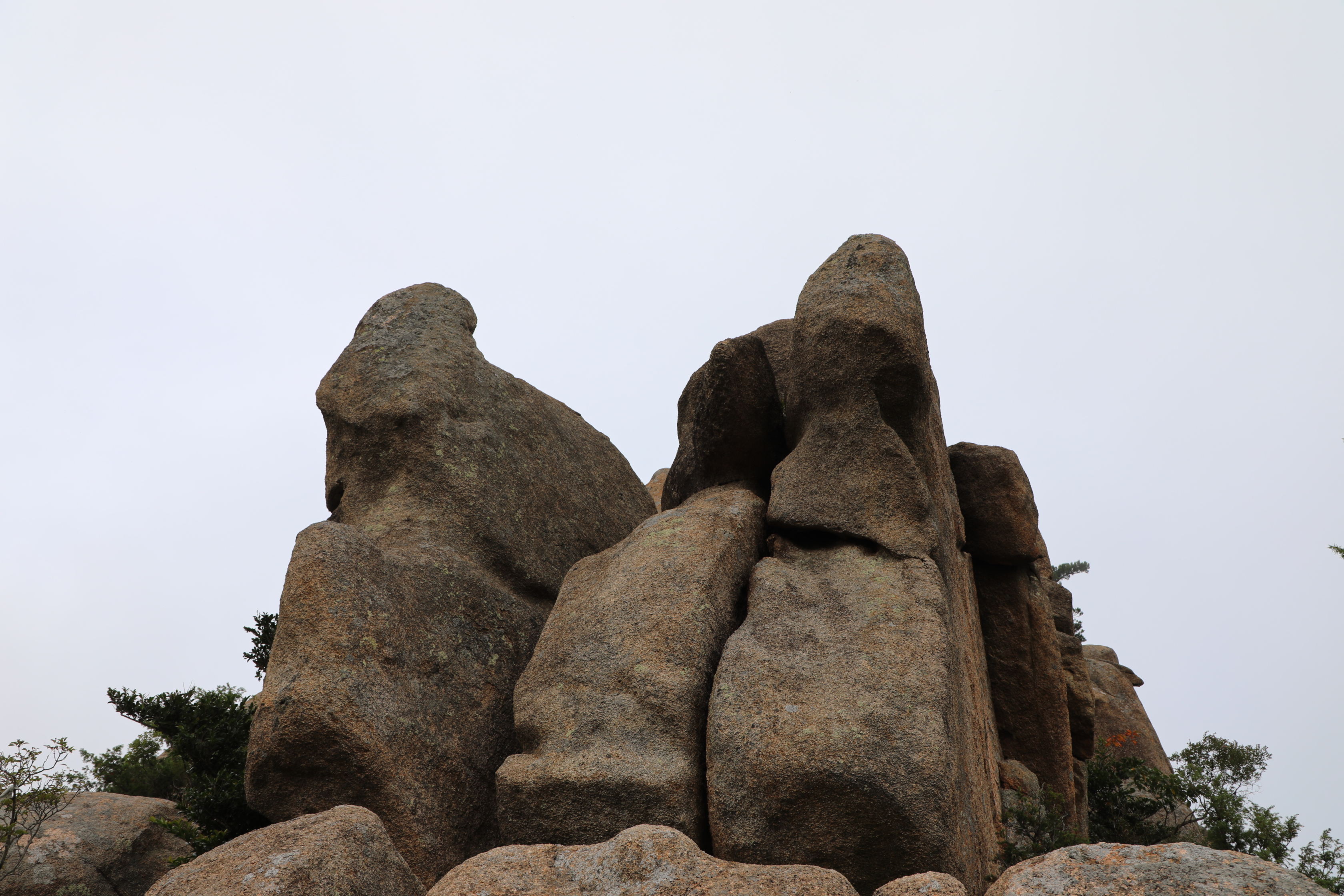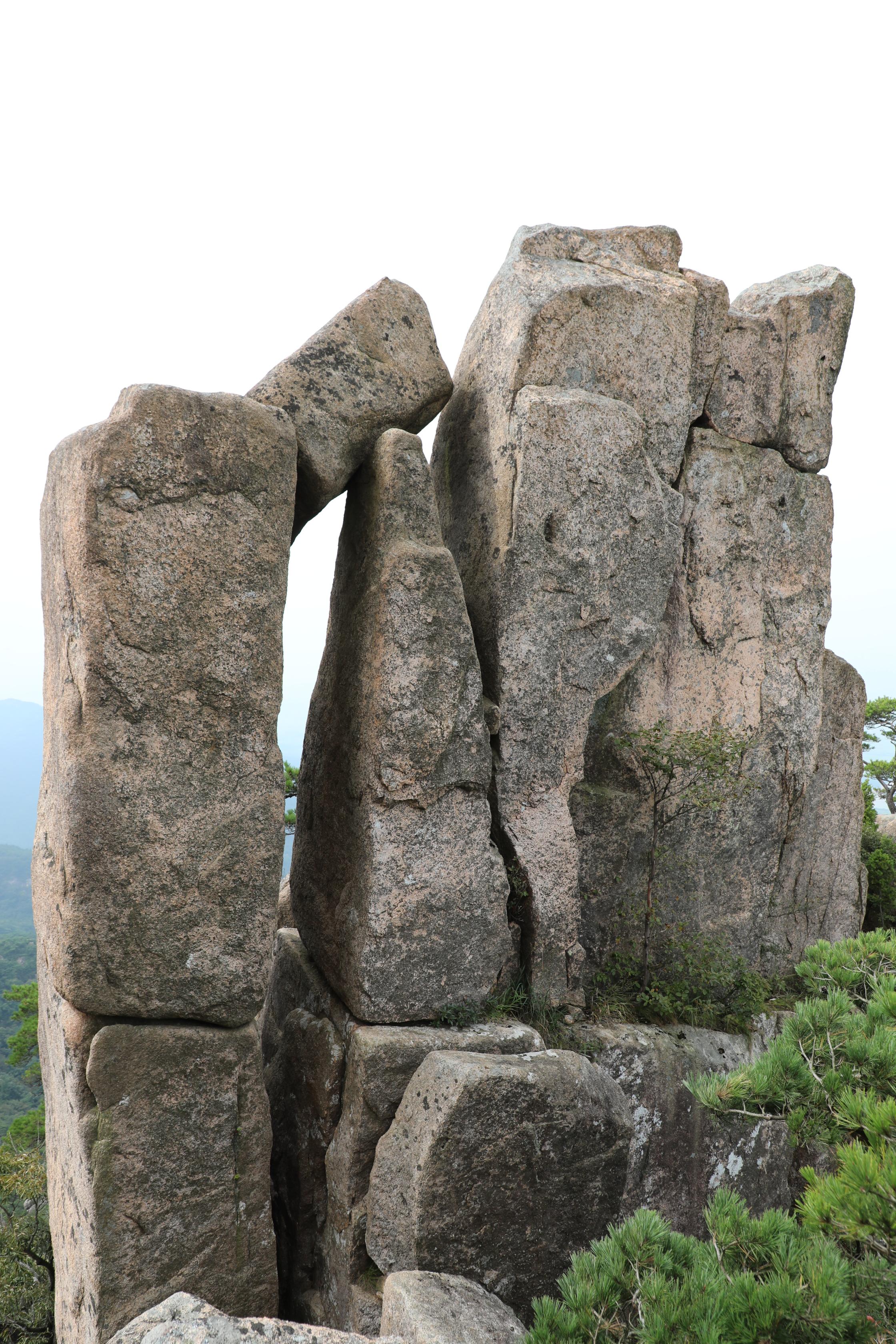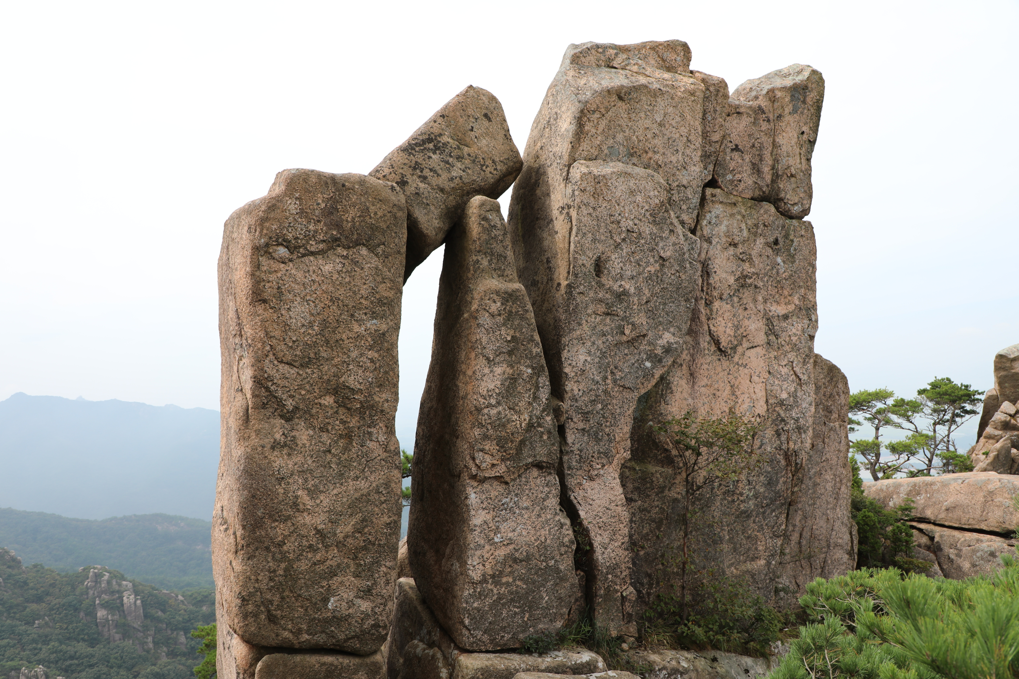 왼쪽 길고 높은 바위가 우측의 여러 바위를 온몸으로 막아서고 있다.