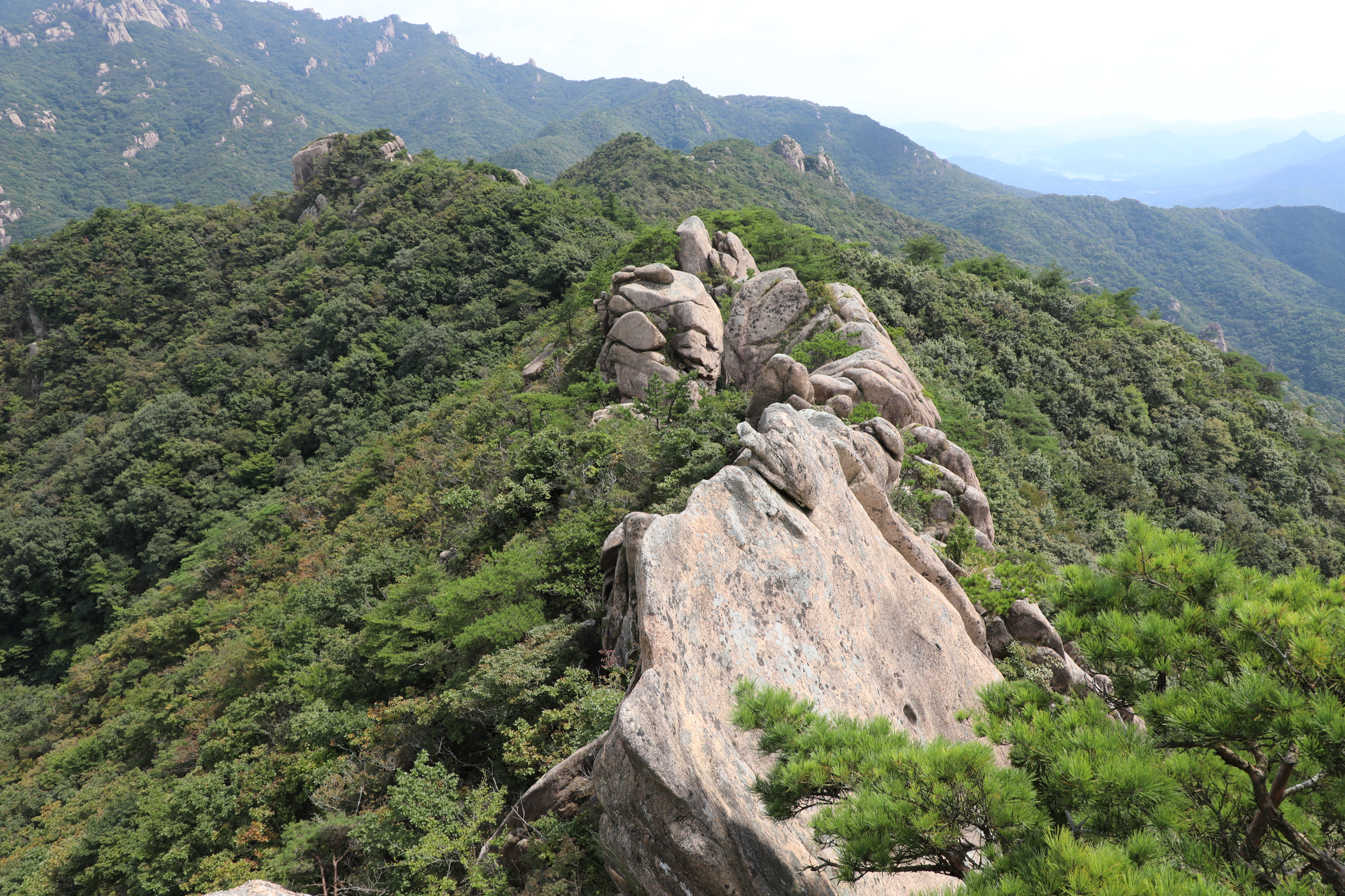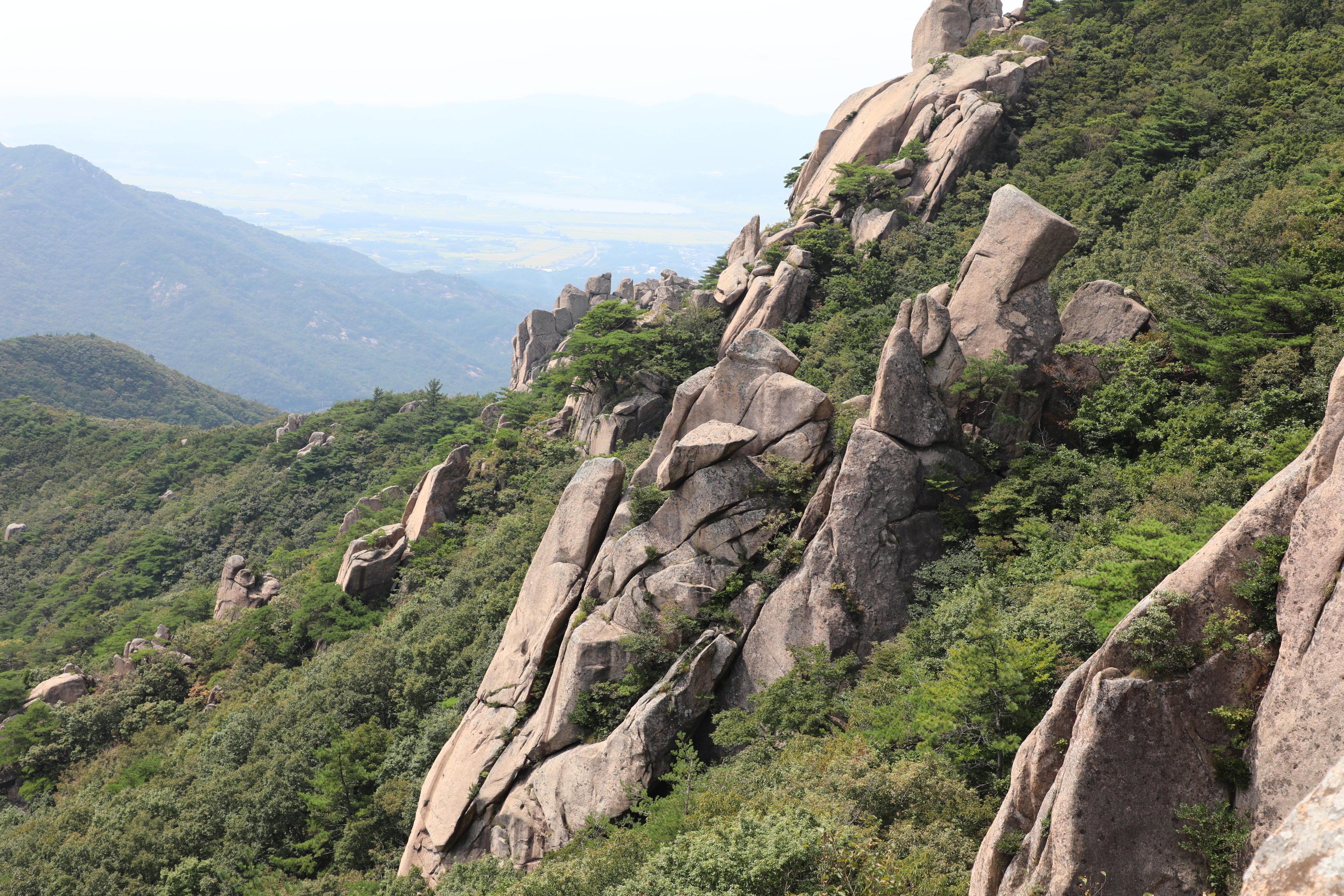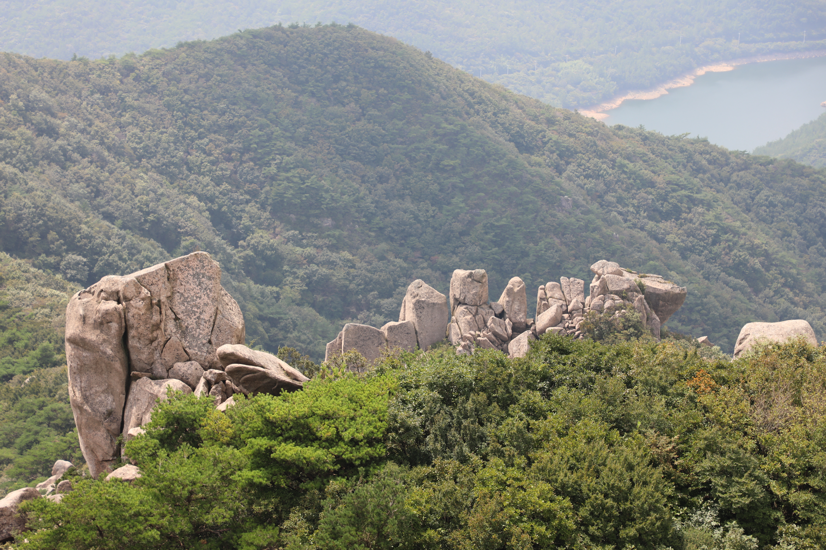 위 바위 사진에서 좀 더 멀리 잡은 암봉 군락