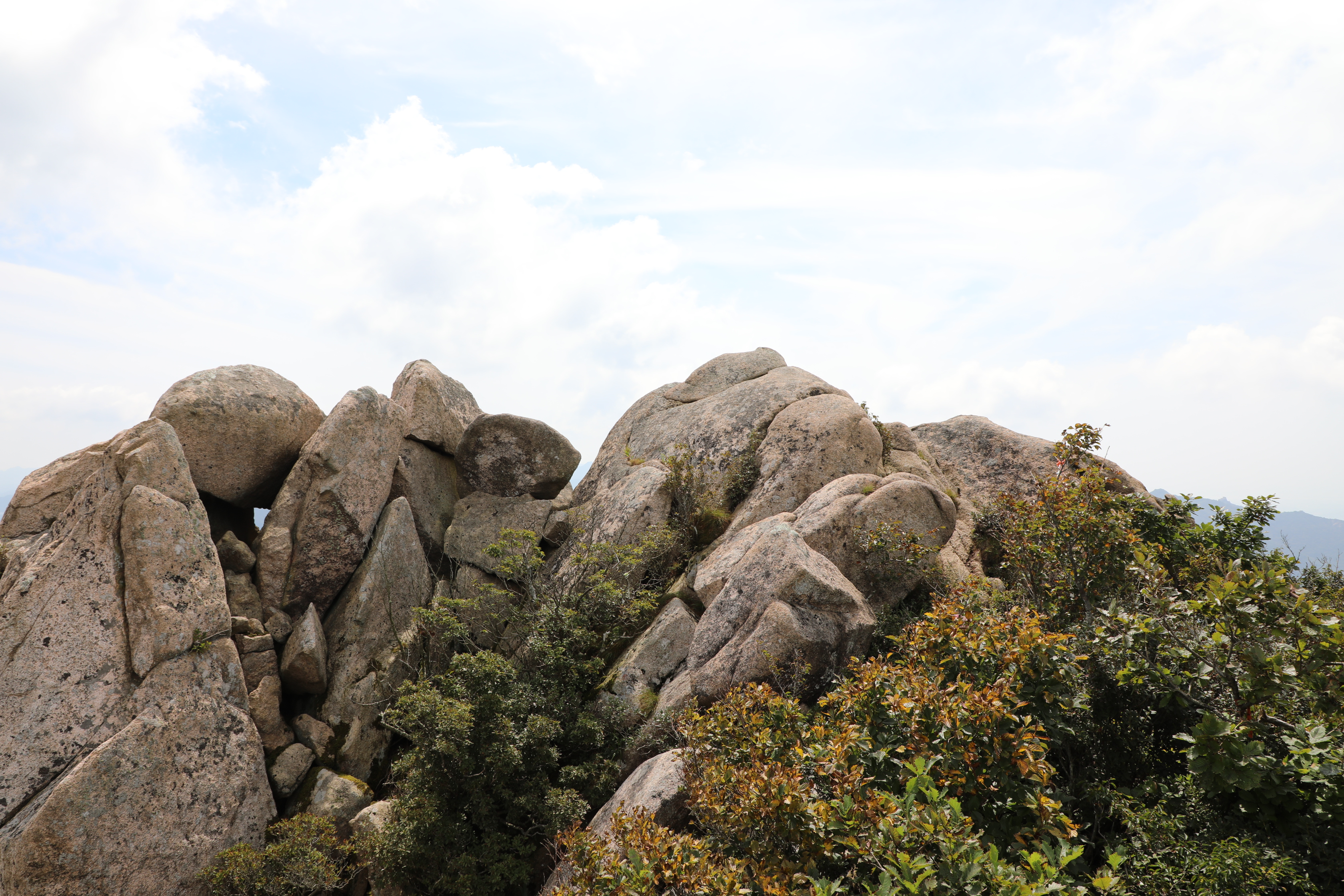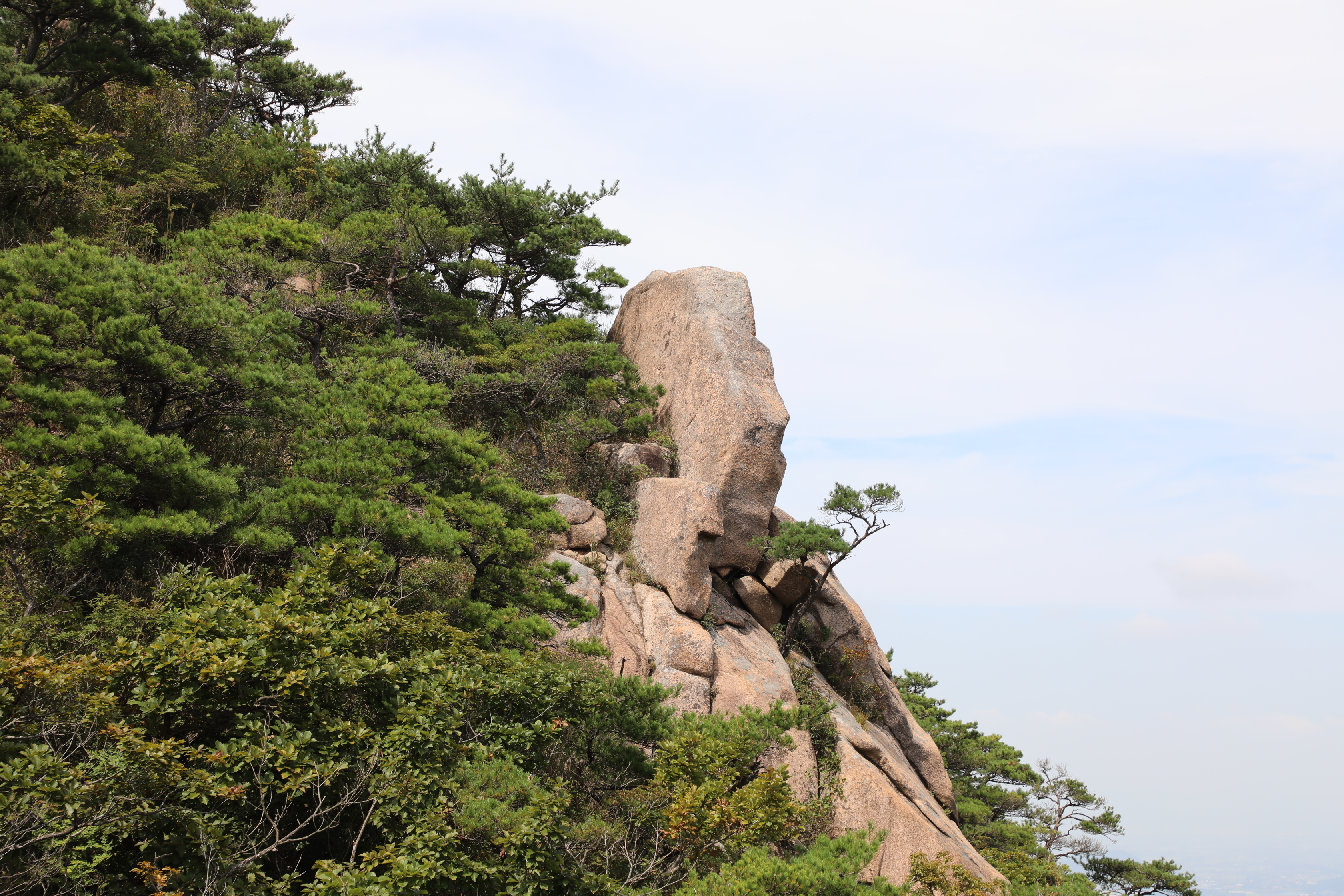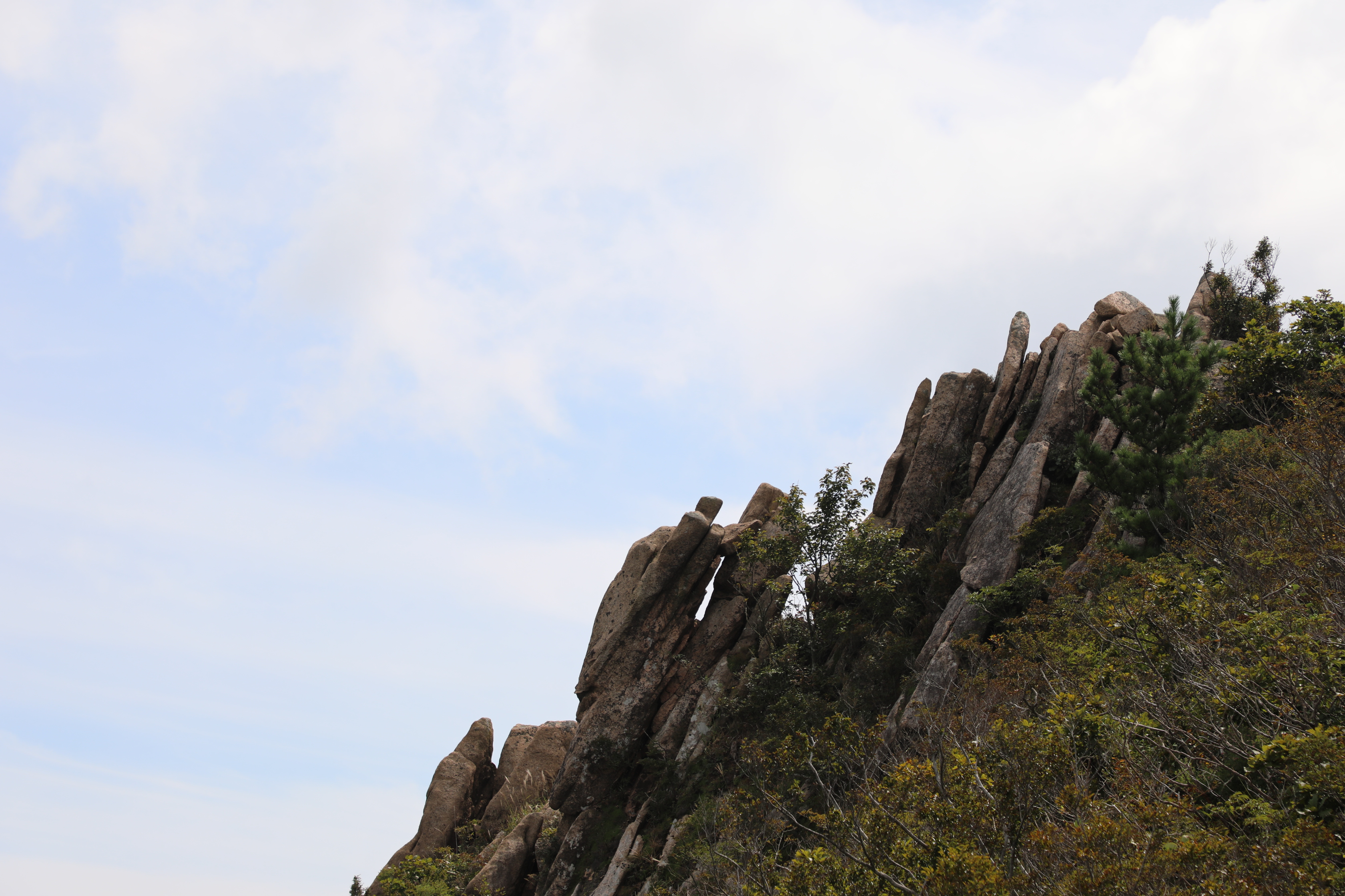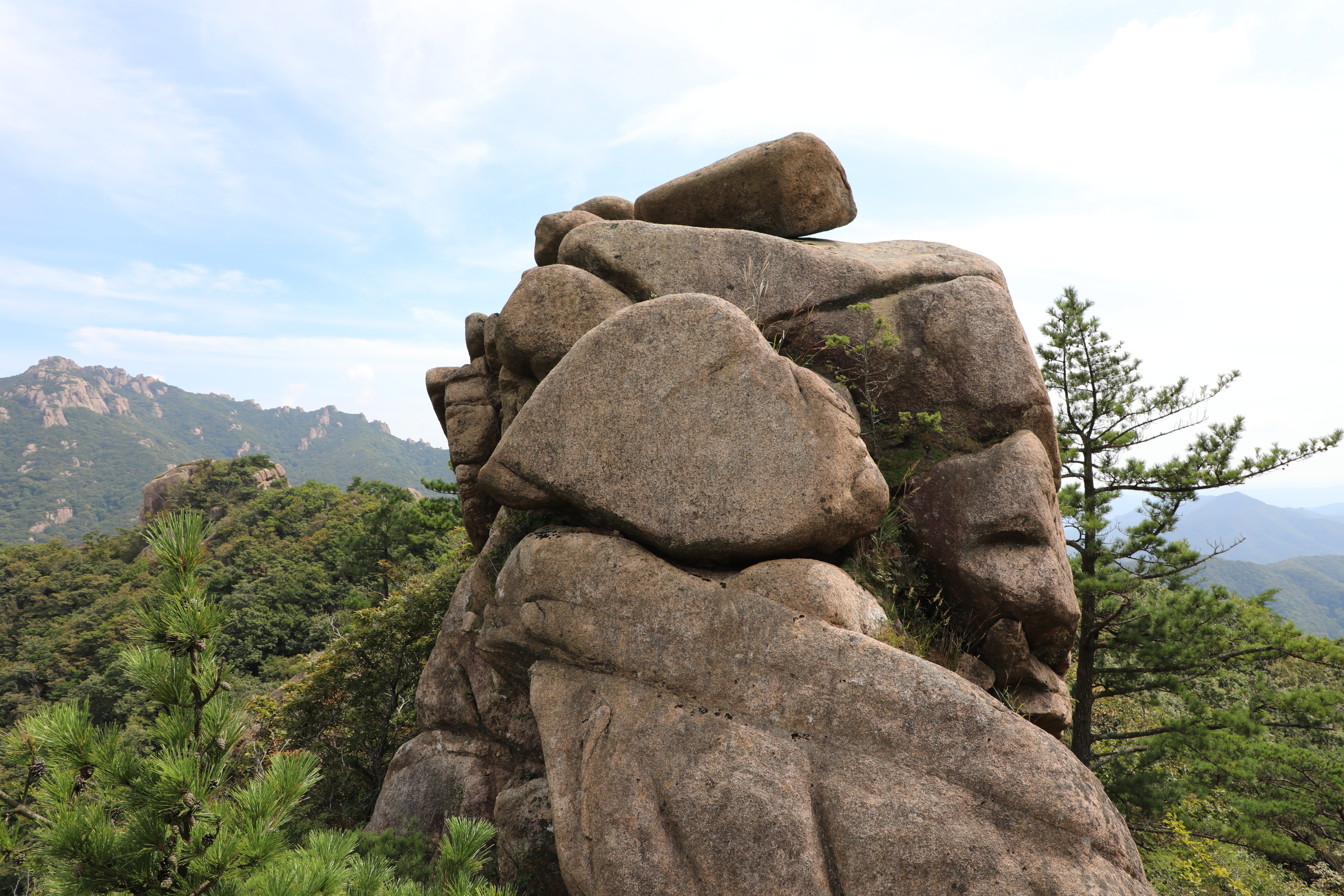 바위 뒤 파란 하늘 뒤로 구름층이 하얗게 자리 잡았다.