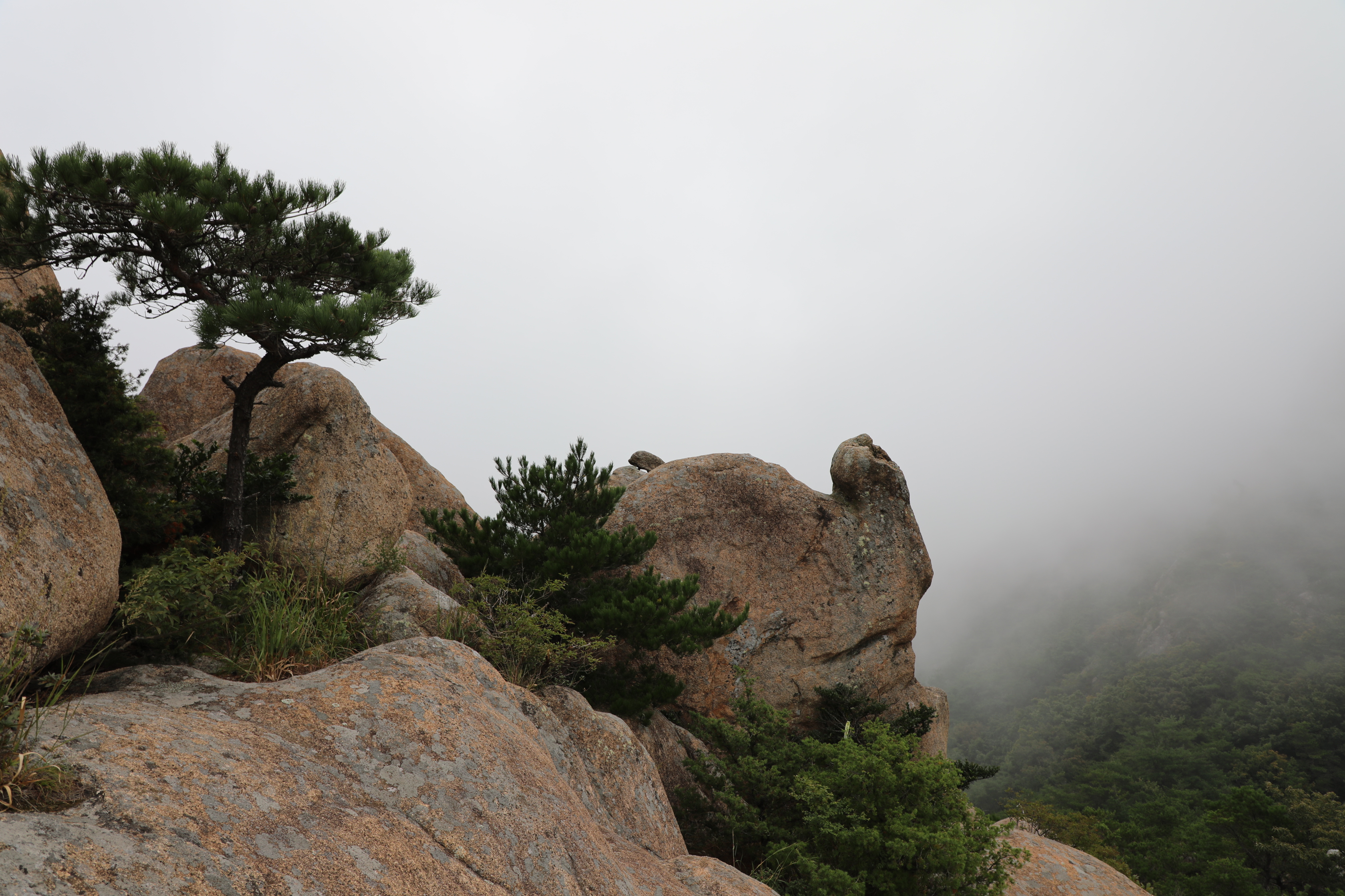 아침에 제법 안개가 많아 풀어지길 기다리며 천천히 산에 오른다.
