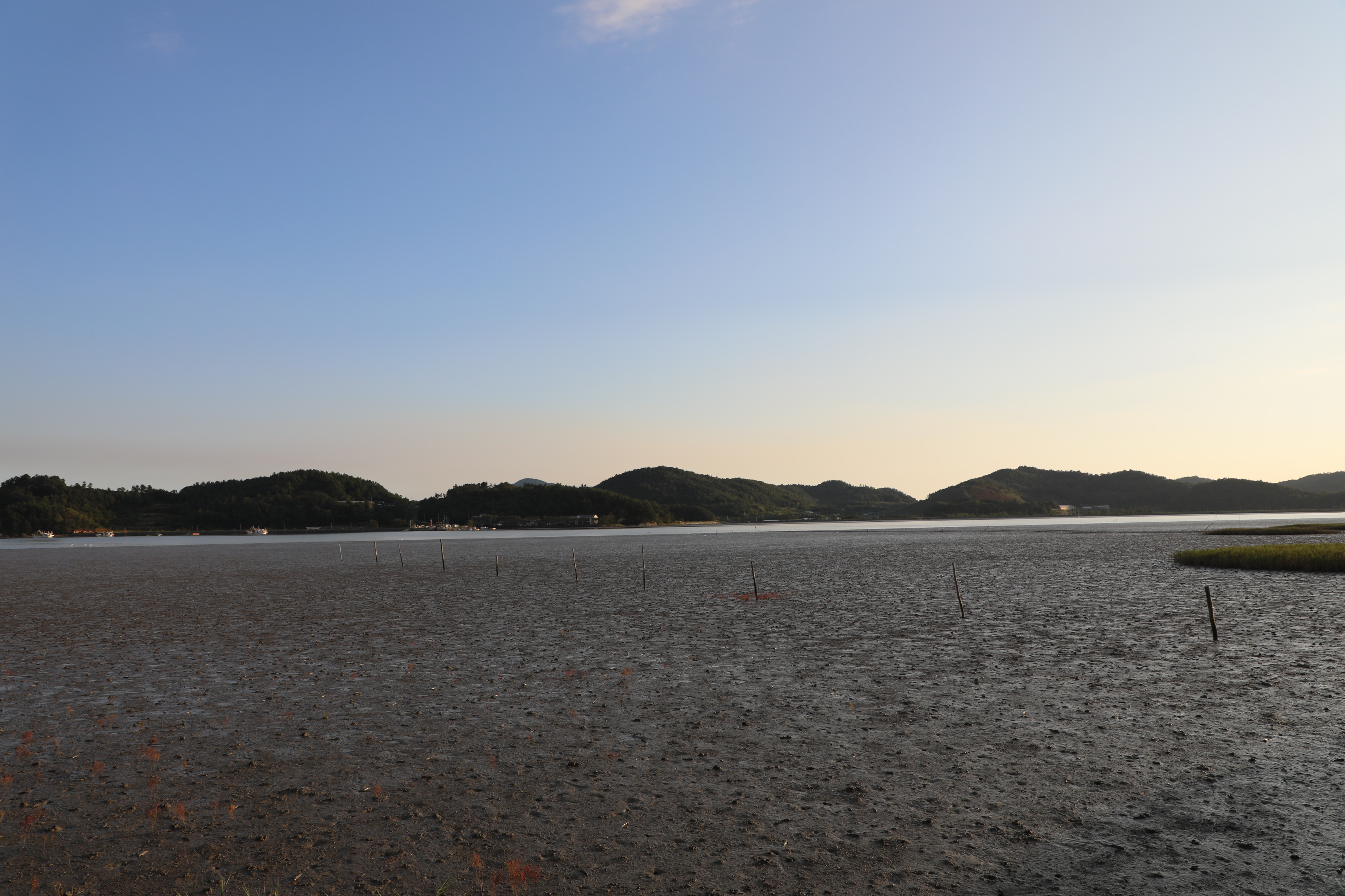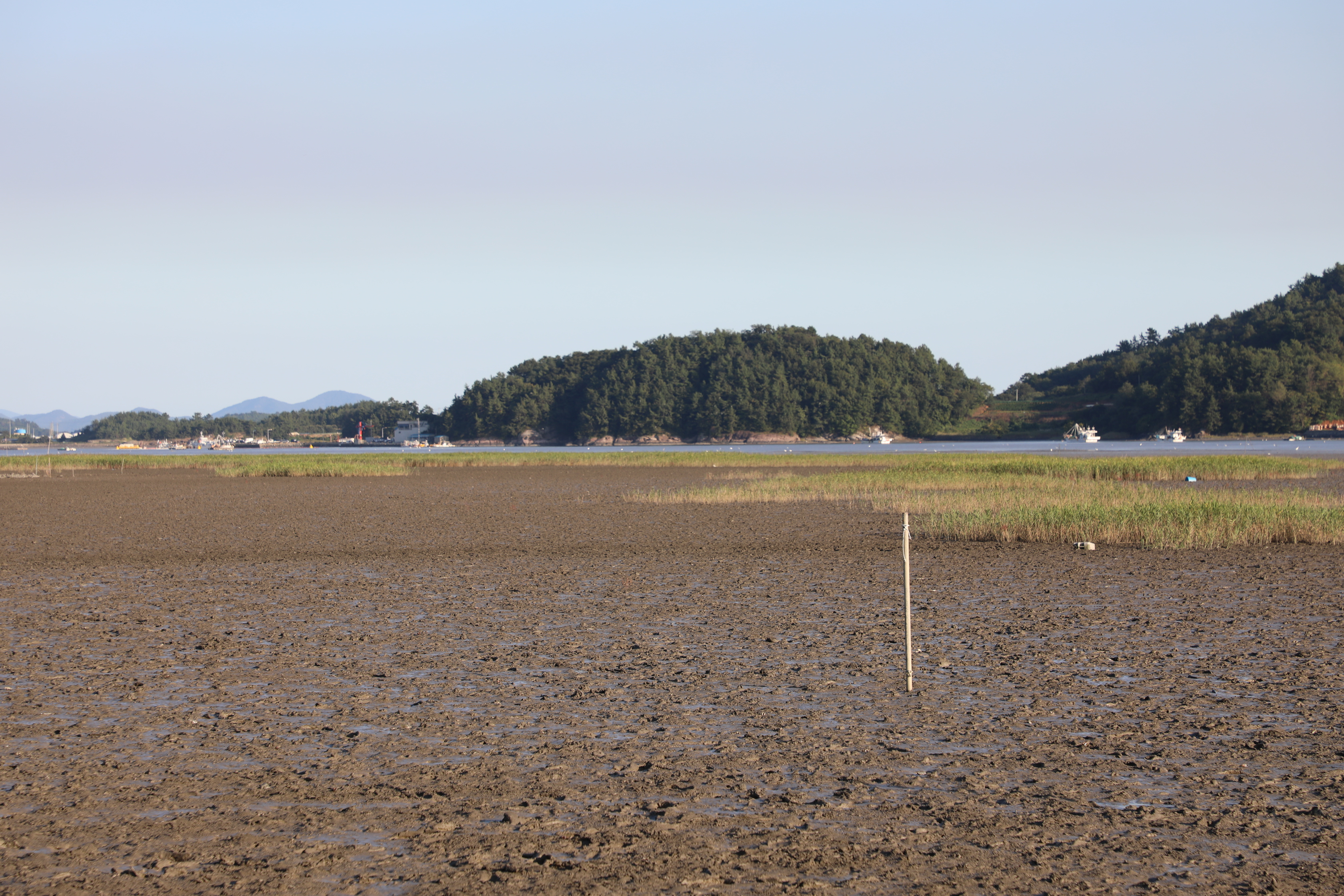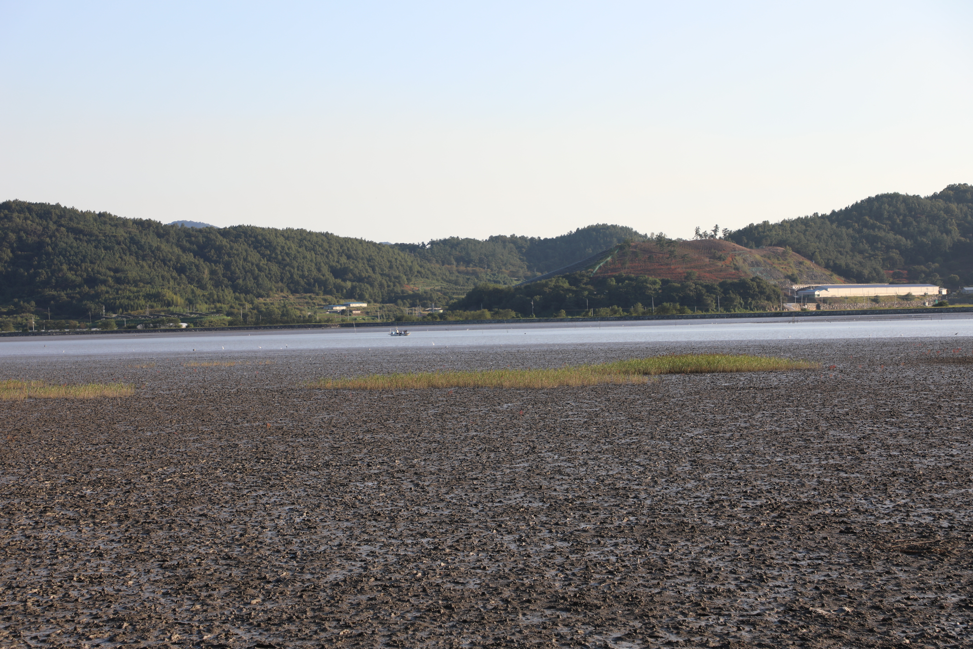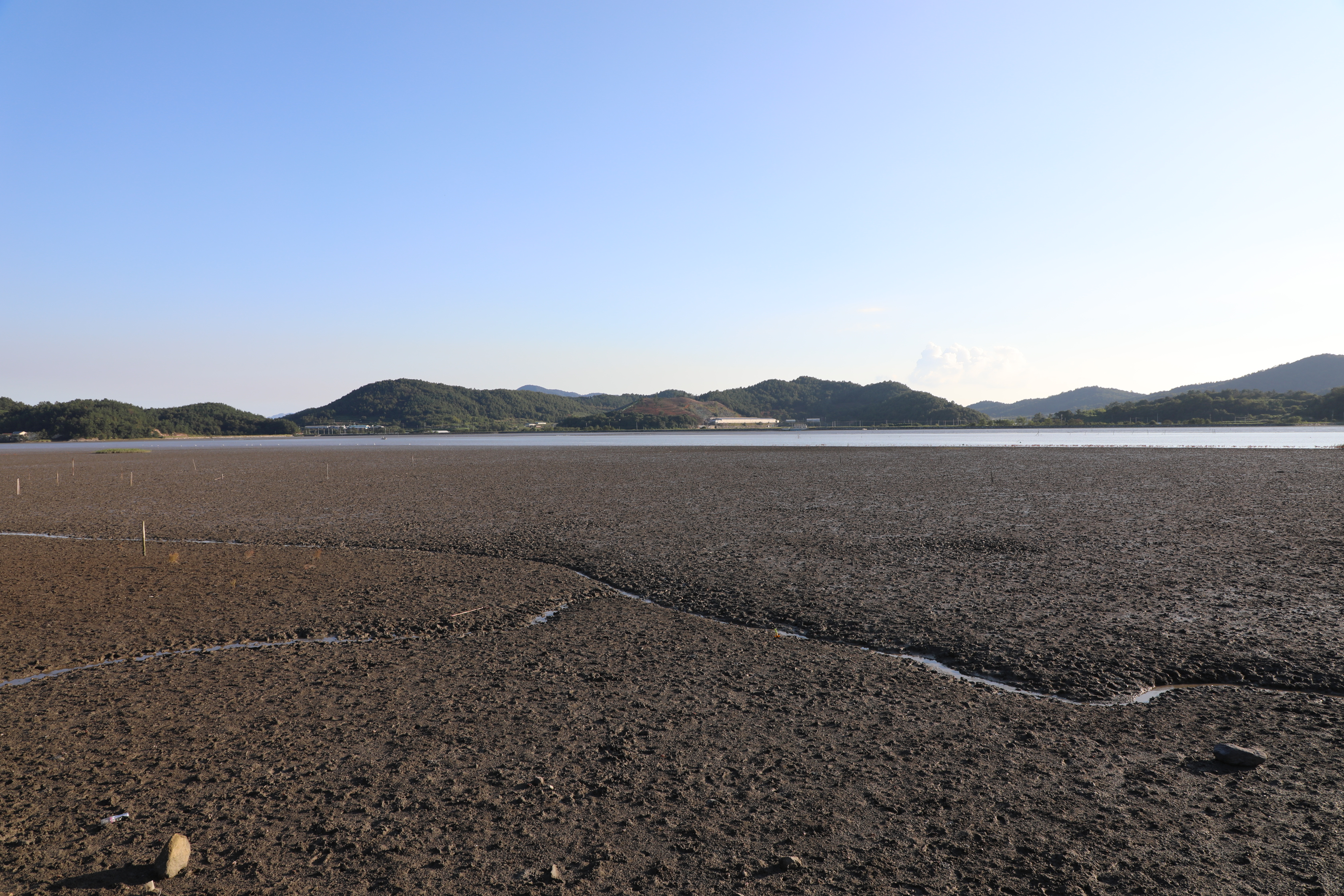 불도저로 밀어 수평을 잘 맞춘 듯 보이는 갯벌이다.
