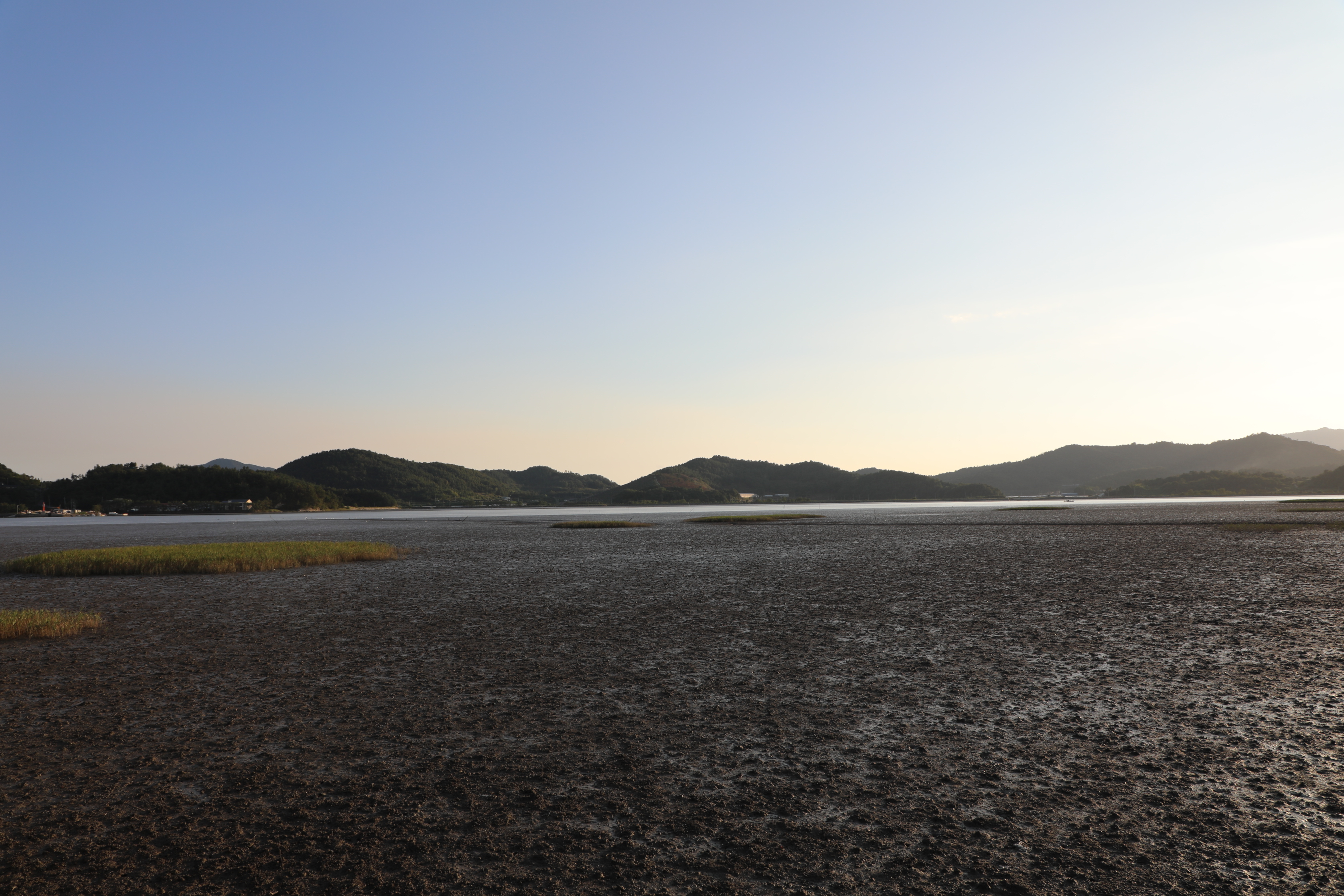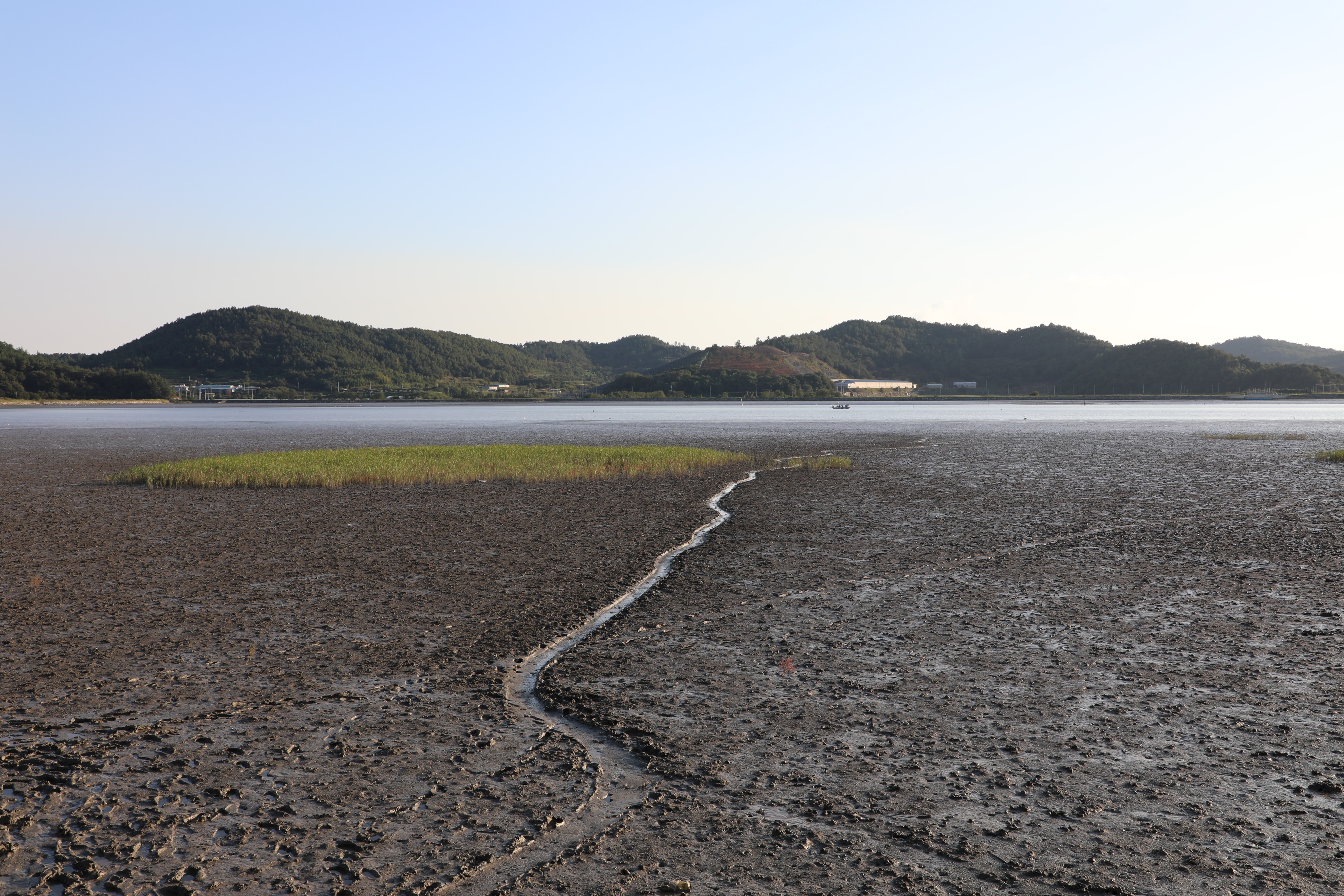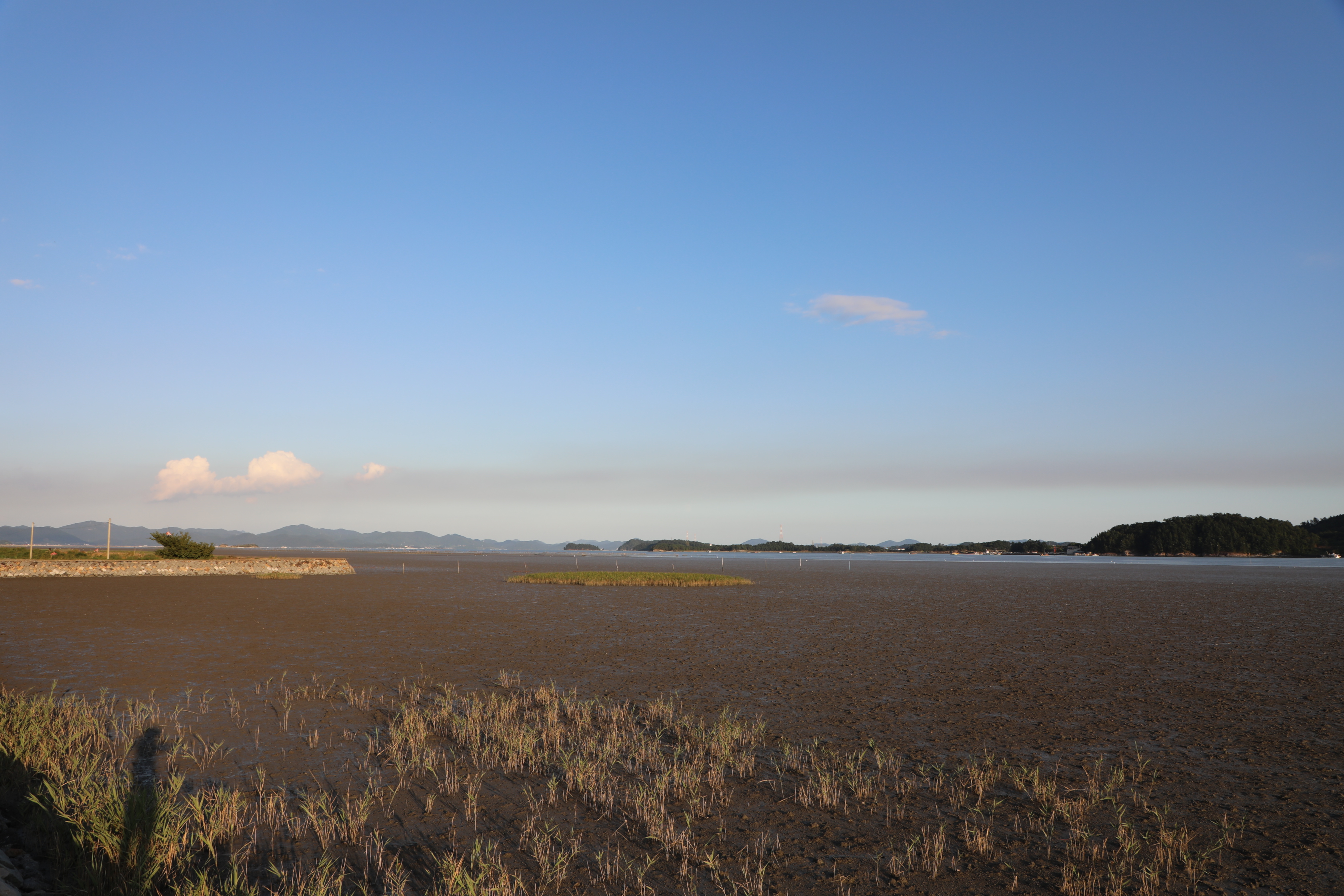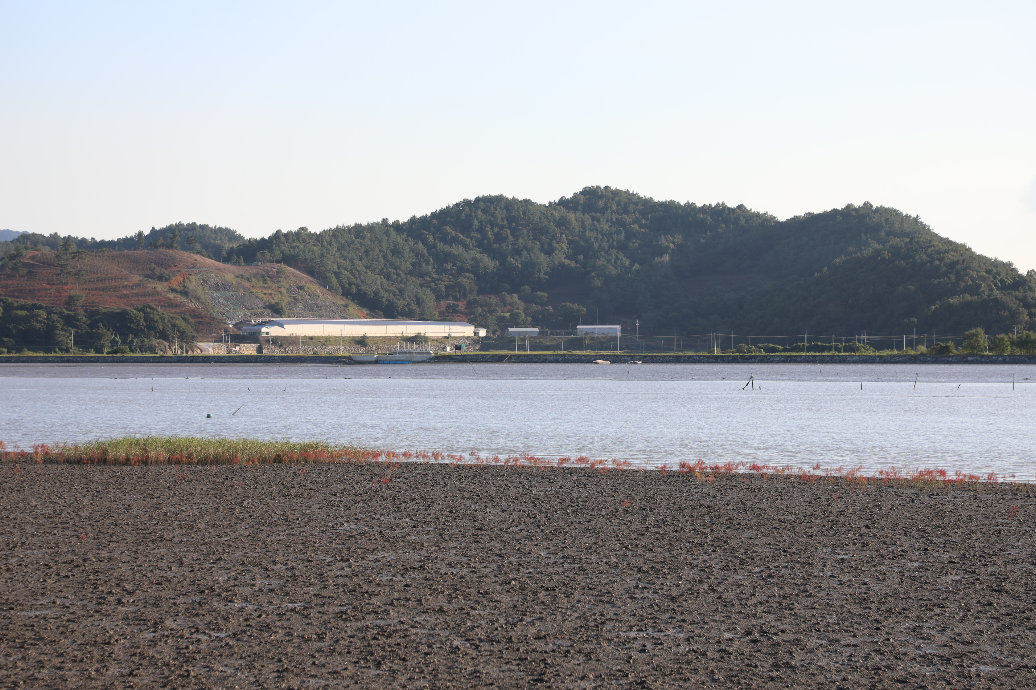 불도저로 밀어 수평을 잘 맞춘 듯 보이는 갯벌이다.