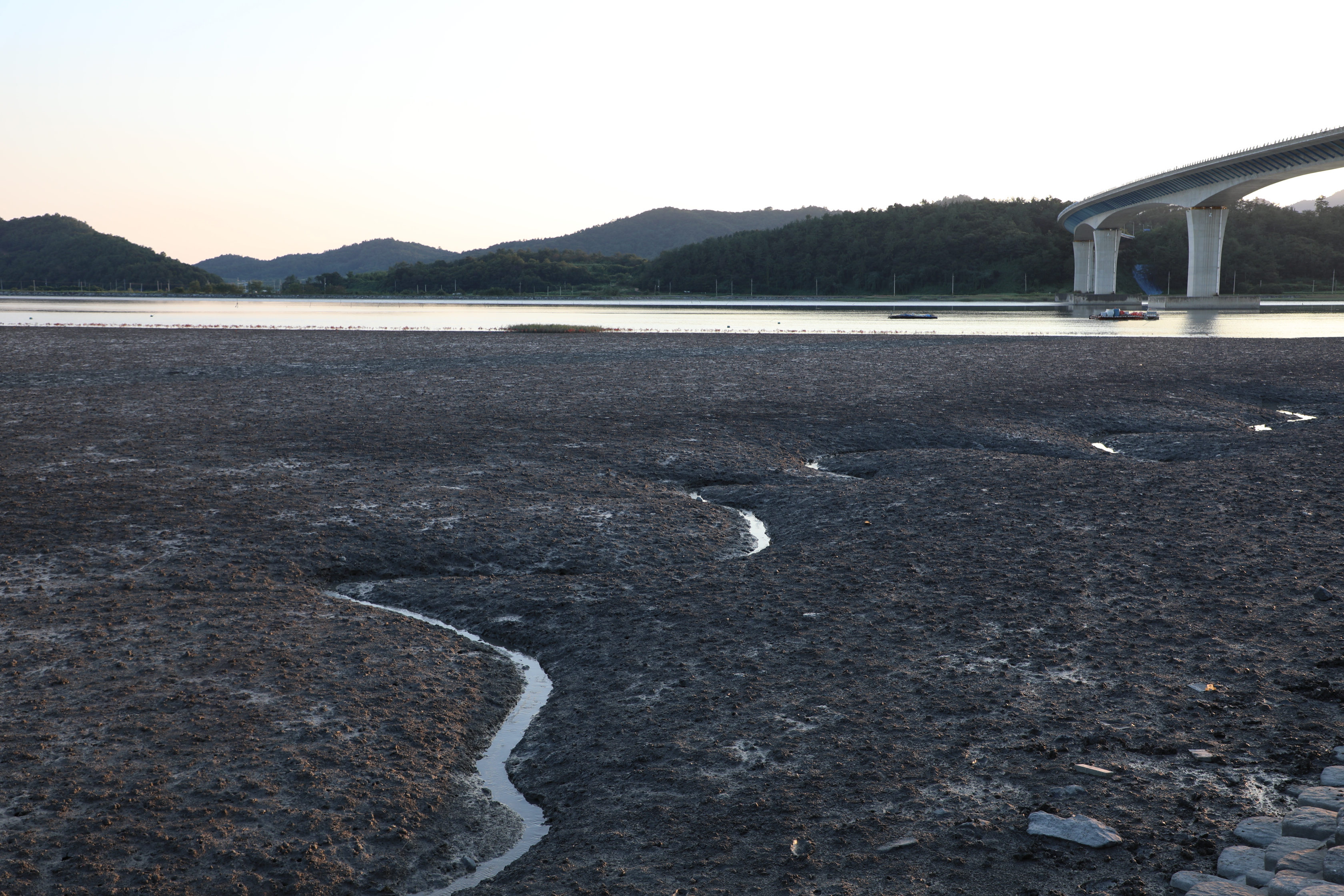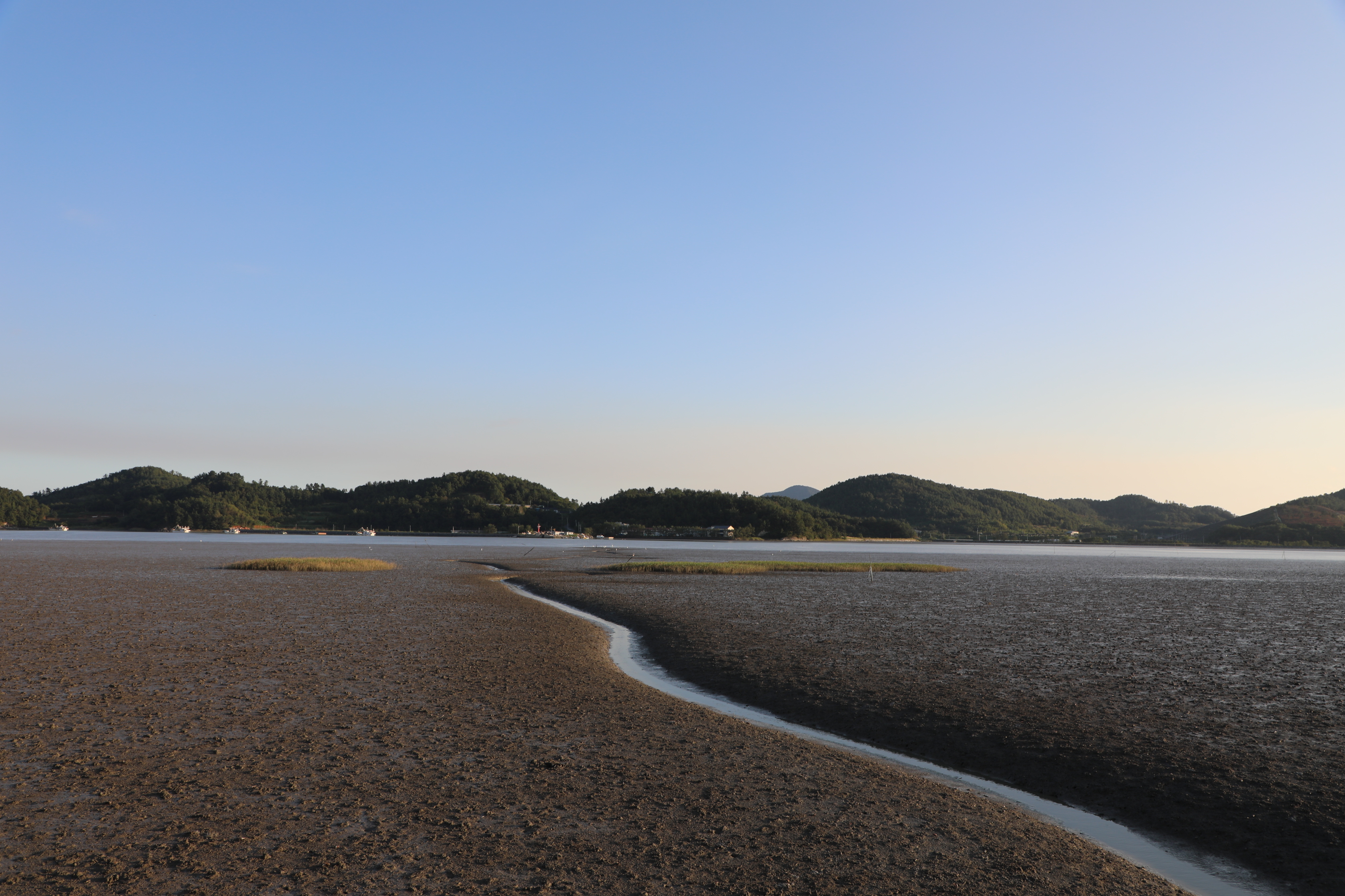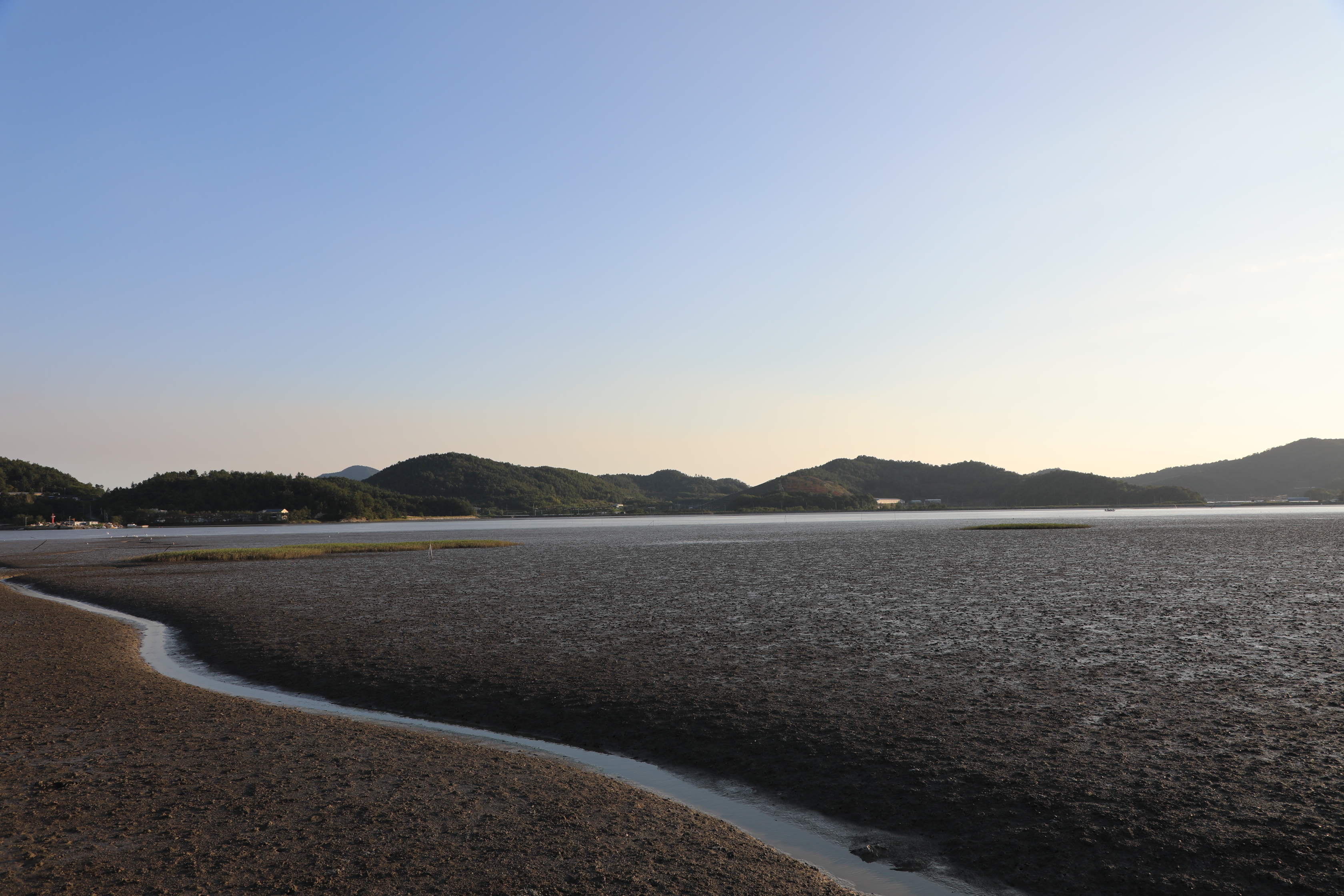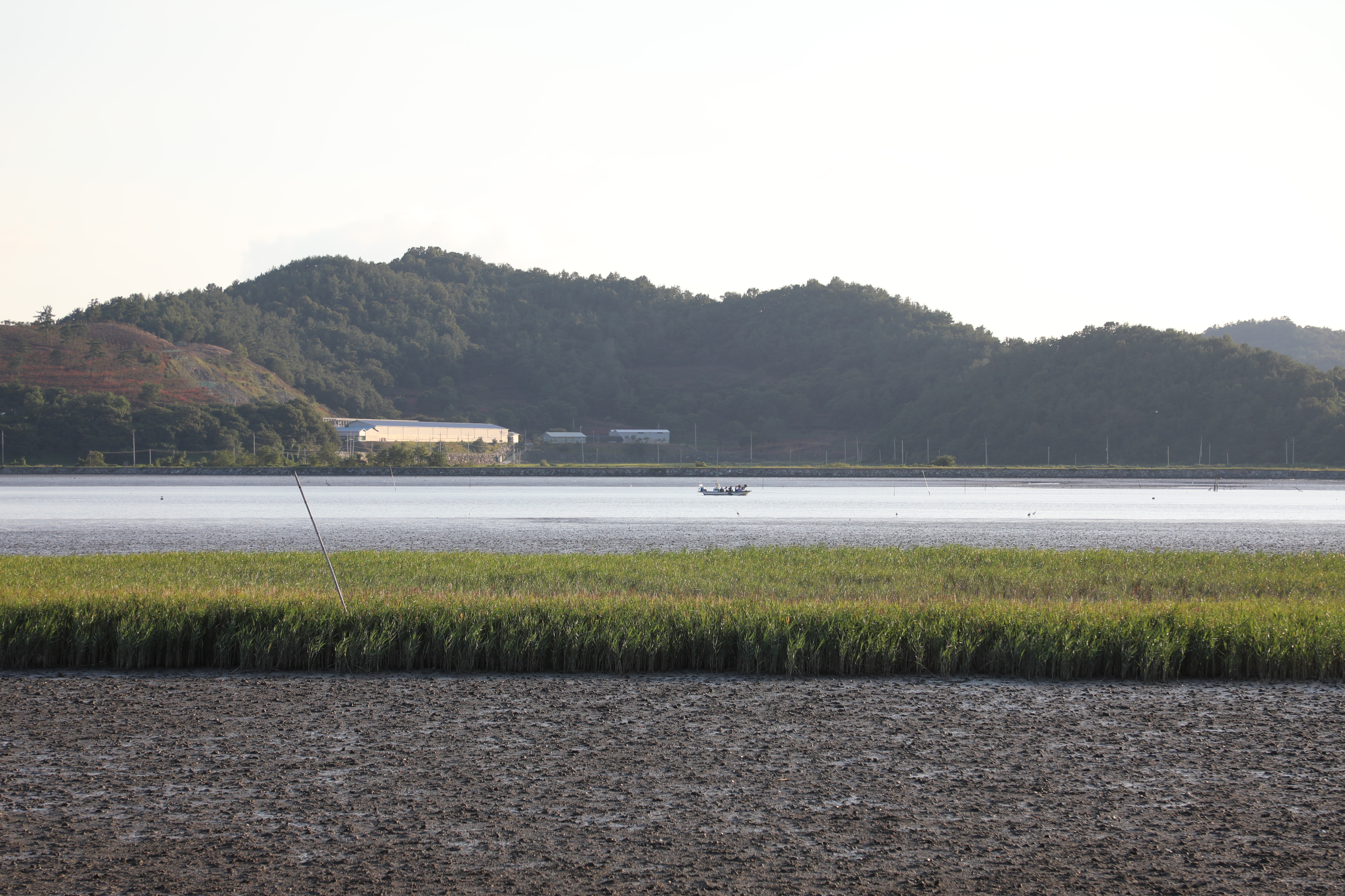 불도저로 밀어 수평을 잘 맞춘 듯 보이는 갯벌이다.