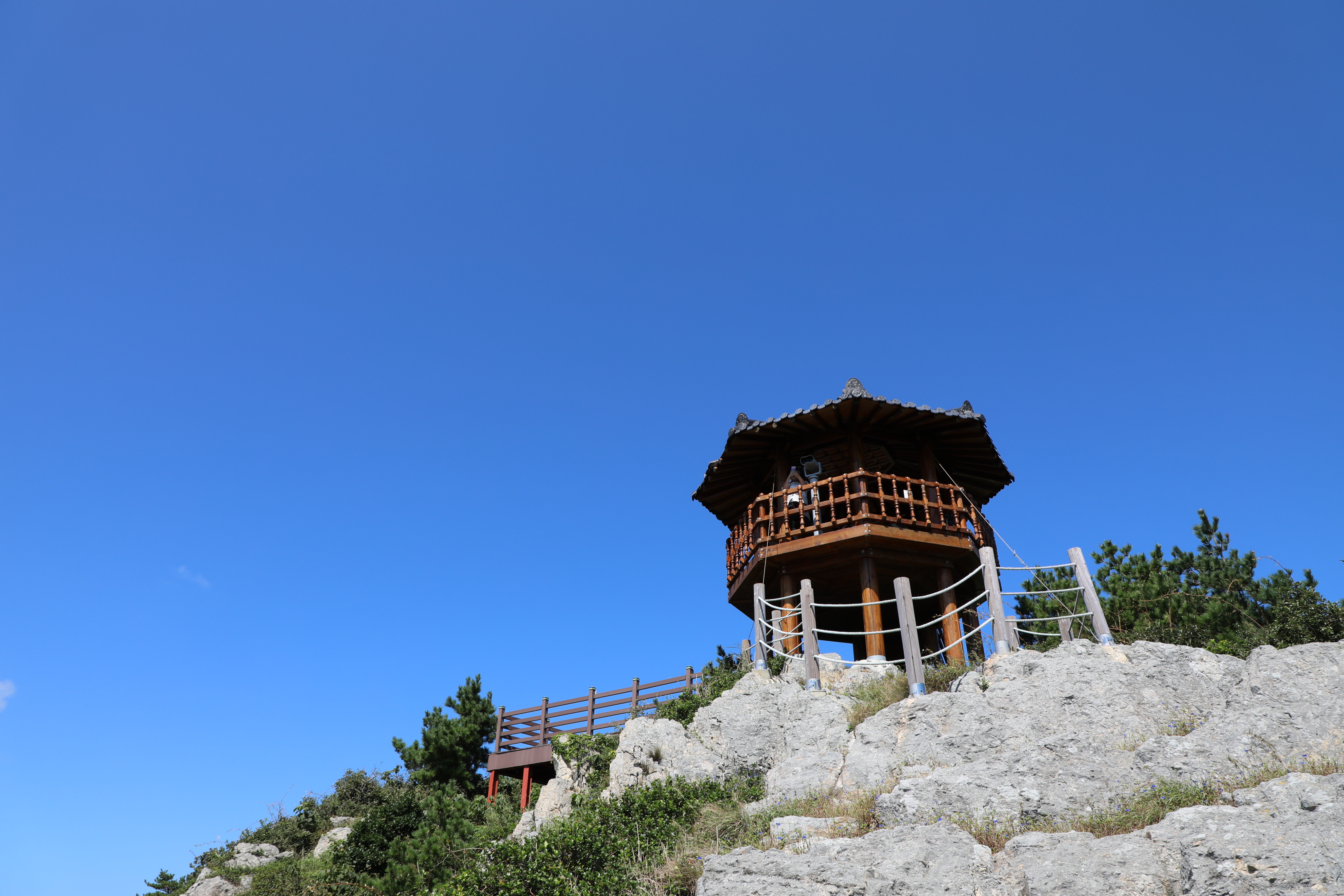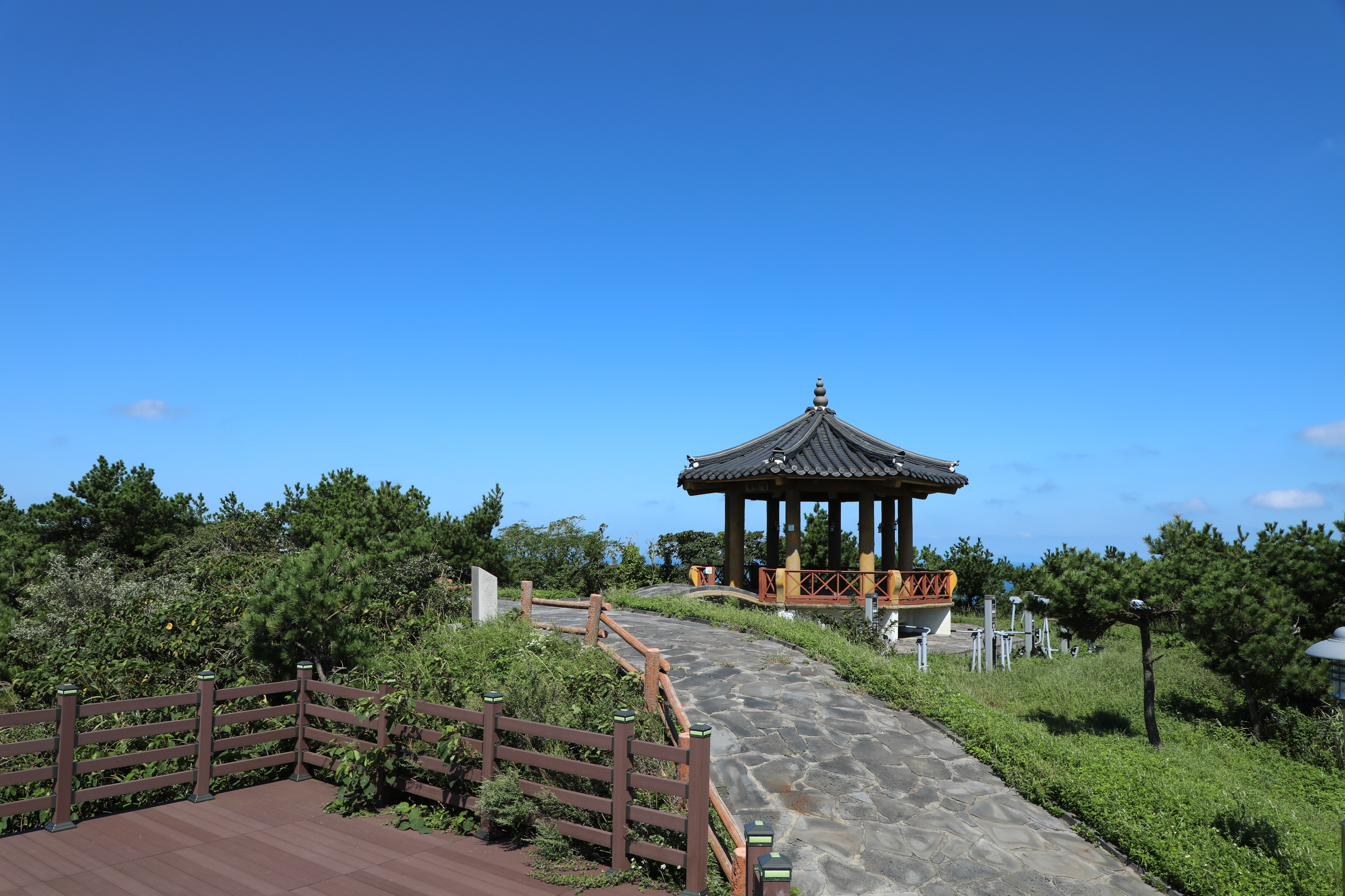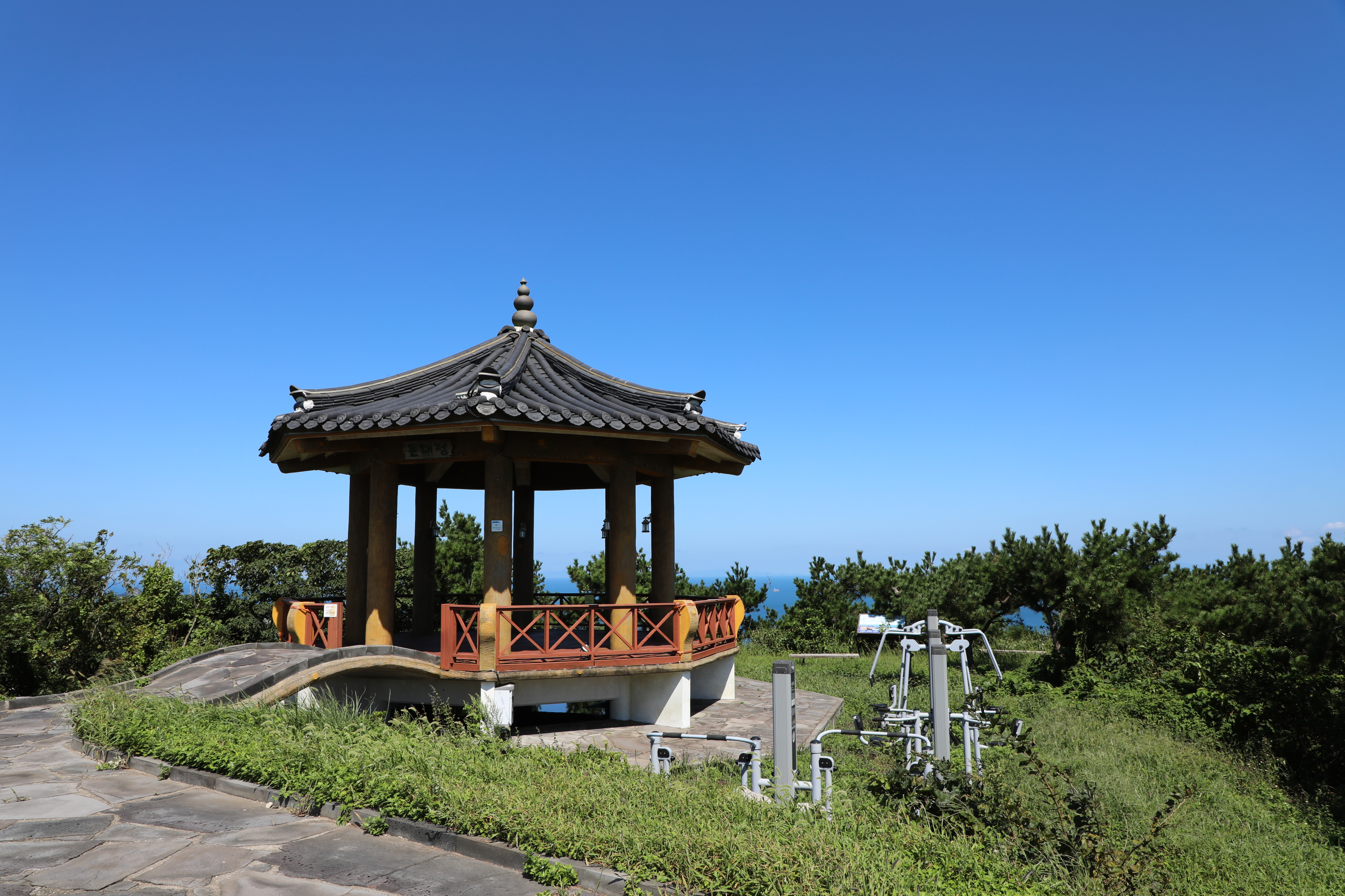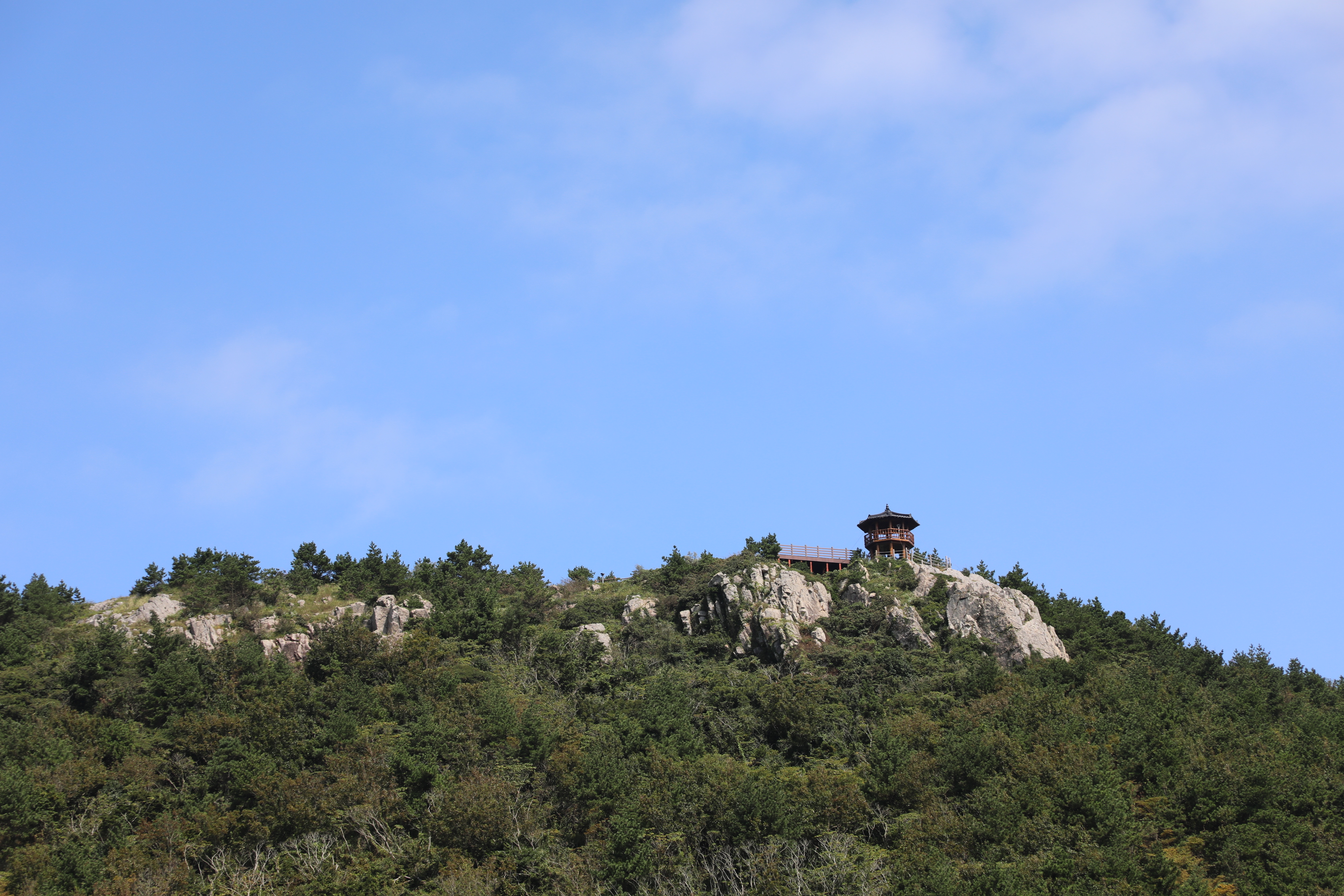 돈대산 전망대의 정자에서 내려와 정자를 중심으로 사진을 찍는다.
