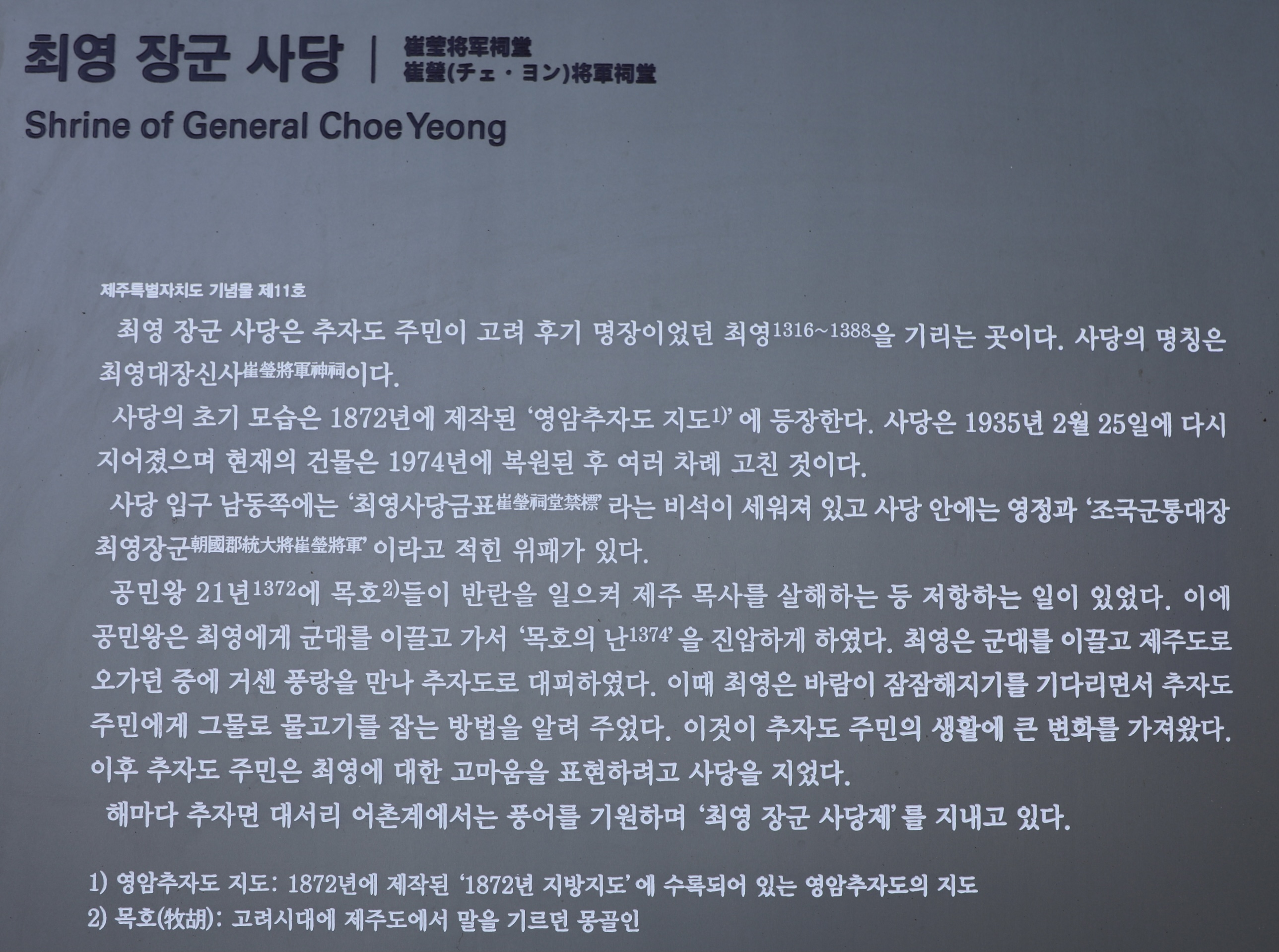 고려말 최영 장군이 추자도에 들어왔을 때 그물 짜는 법을 알려주면서 멸치잡이가 시작되었기 때문이다.