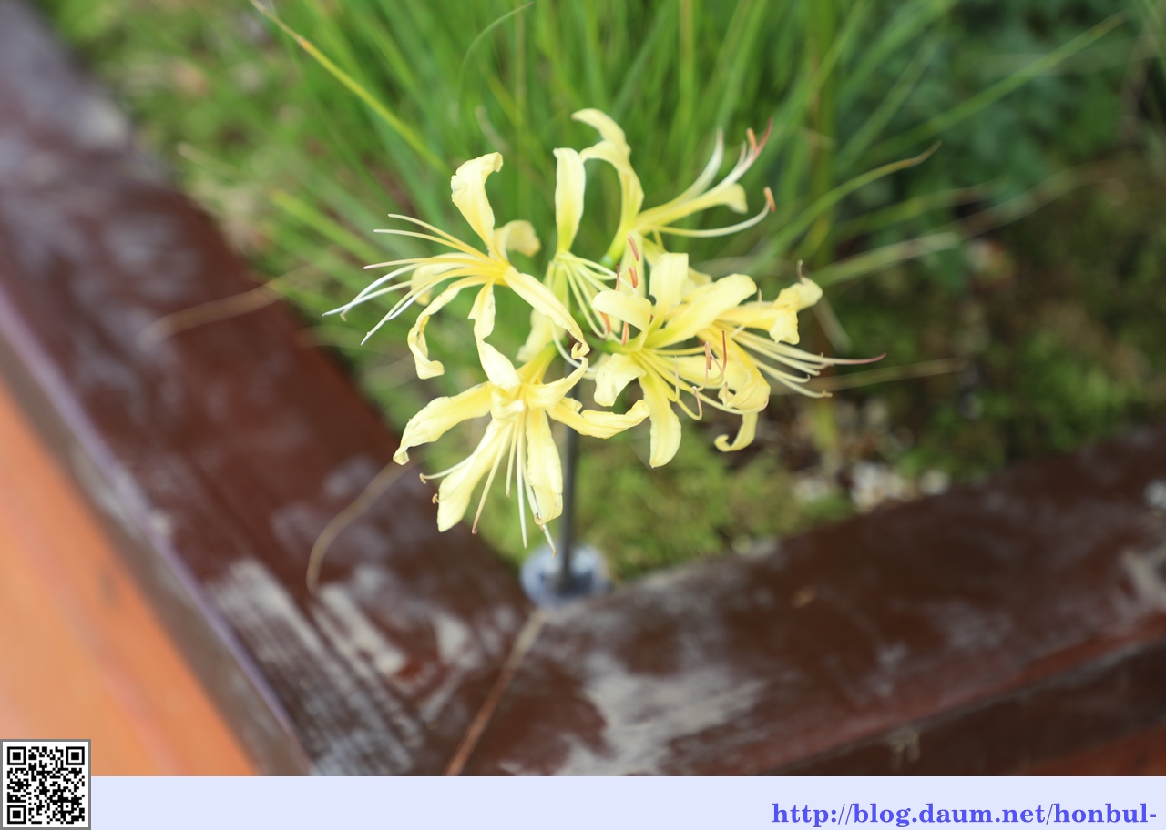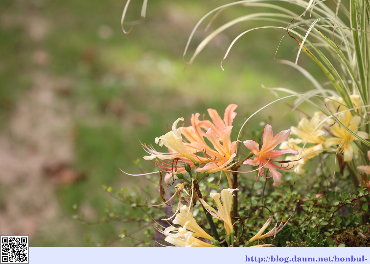 붉은색이 들어간 붉노랑꽃무릇은 8월에 핀다고 한다.
