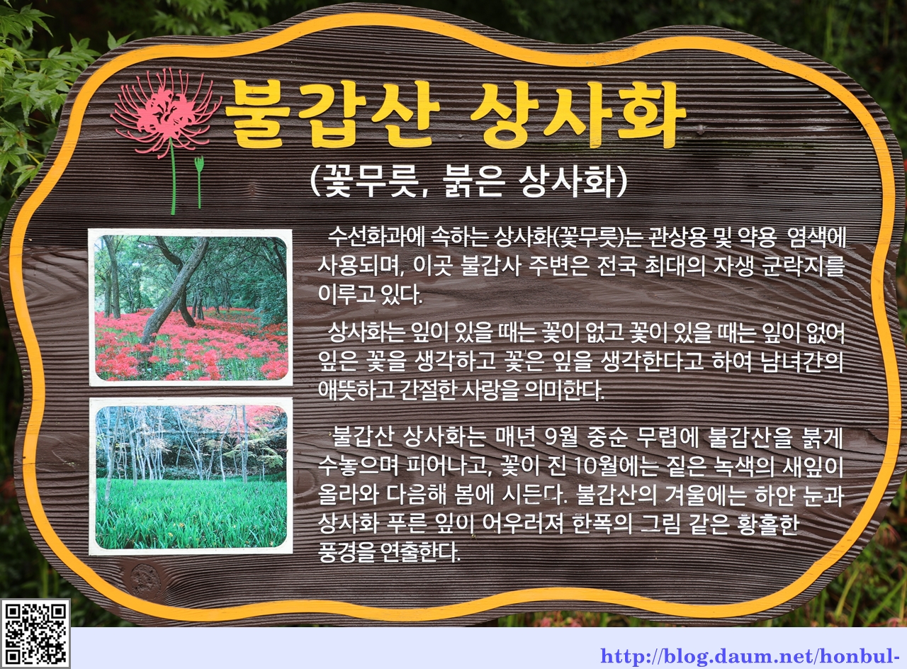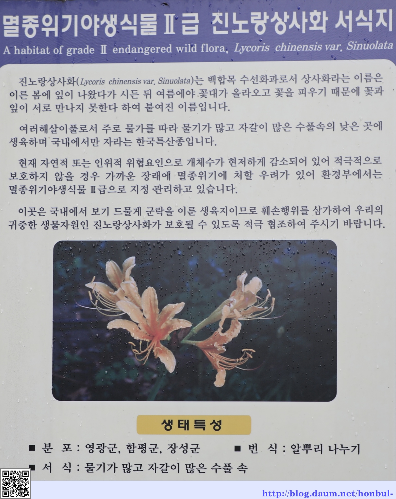 고창군 선운사, 함평군 용천사와 함께 한국 최대의 꽃무릇 군락지이다.