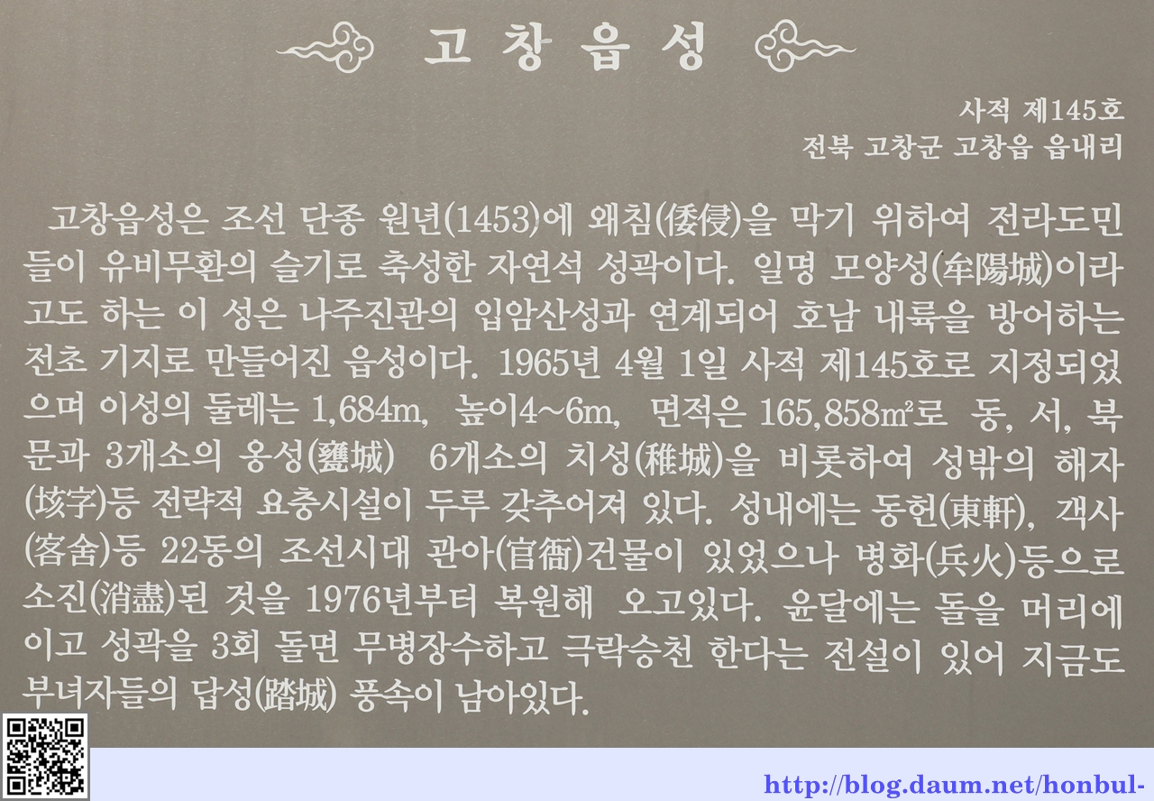 계유소축의 계유년은 1417년 이후의 계유년이므로 고창읍성은 1453년의 계유년에 축성된 것이