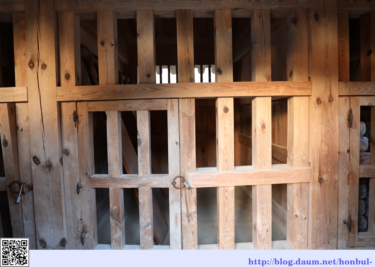 돌로 만들어진 일반적인 성문과 달리 나무로 된 2층 누각에도 통로가 있다.