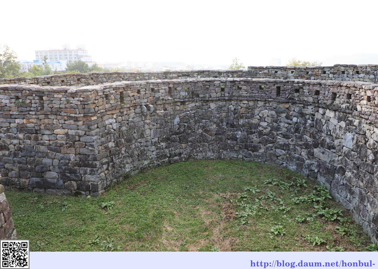 옹성 내부 원형 성벽이라 외부 충격에 더 단단하겠다.