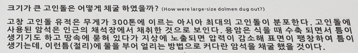 고창 고인돌군 지역 인근의 고인돌 채석장에서는 큰 바위를 채굴하고 이동한 과학적 원리를 이해할 수 있다.