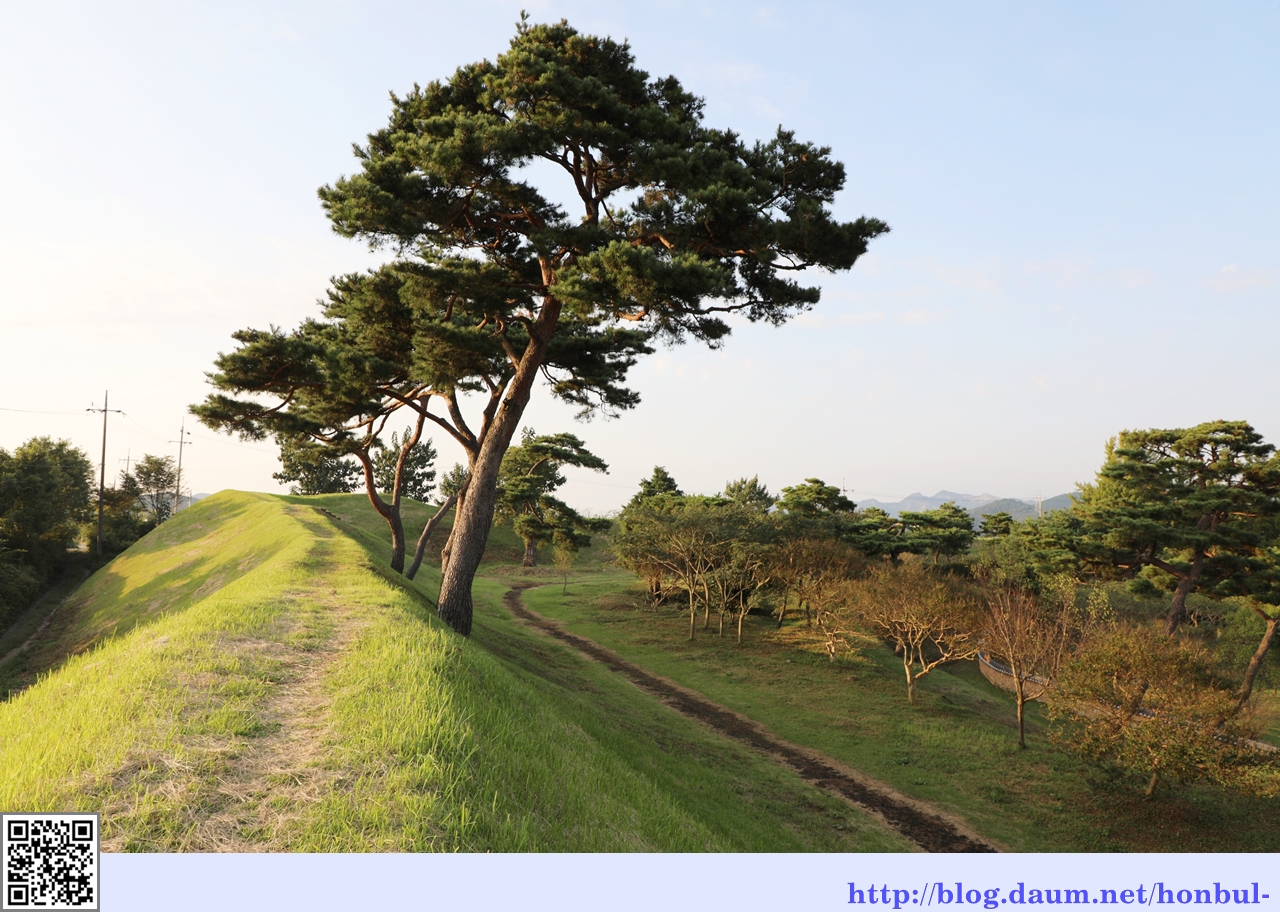 성벽은 봉긋한 형태에 잔디가 잘 자라 보기 좋다.