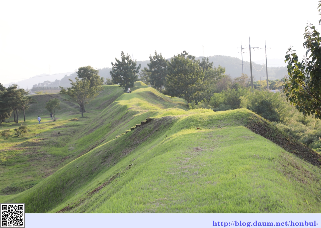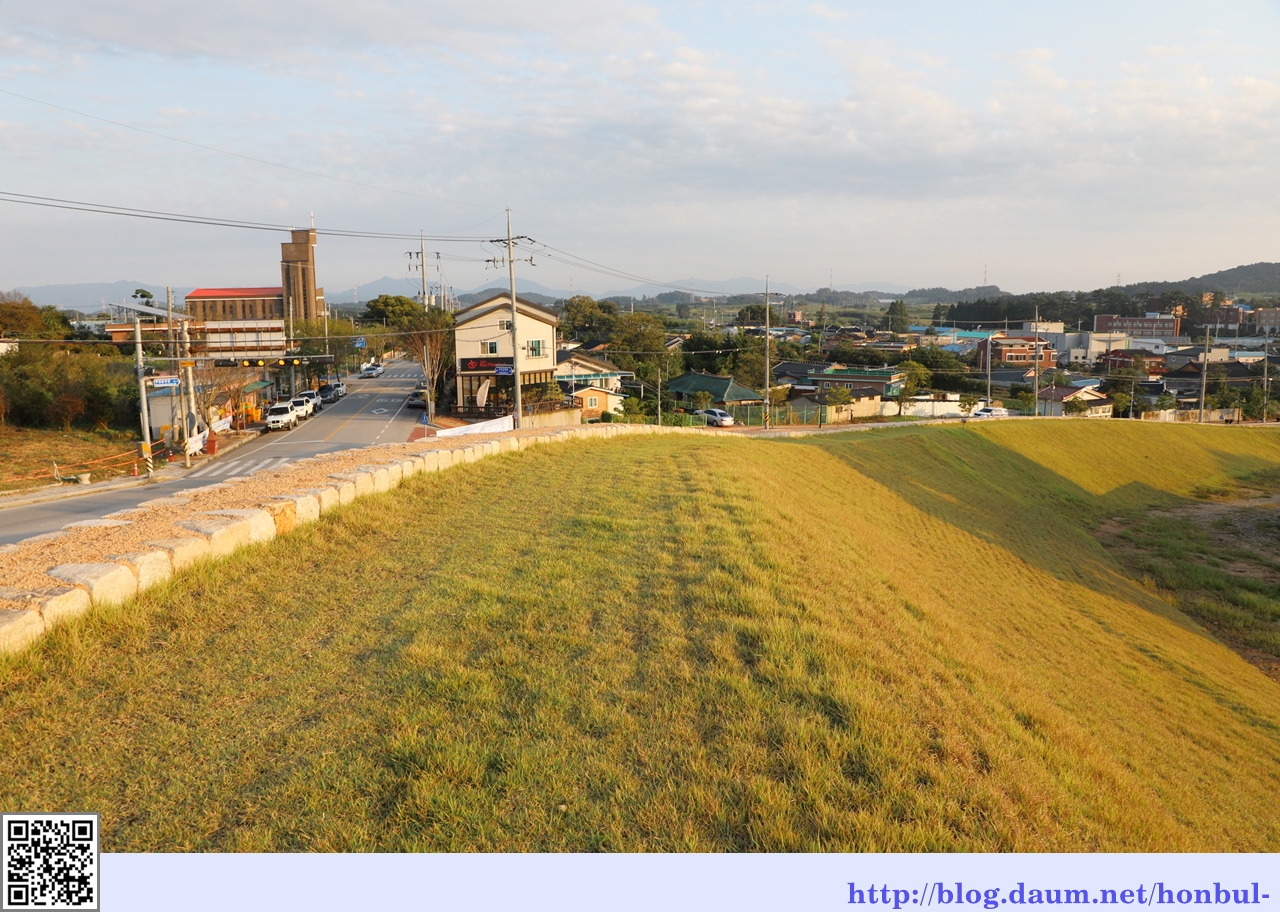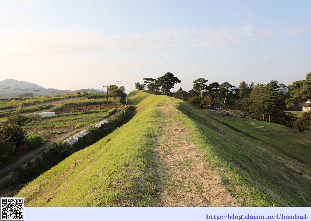 성벽은 봉긋한 형태에 잔디가 잘 자라 보기 좋다.