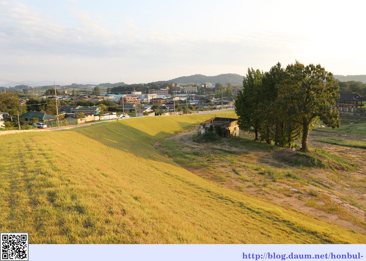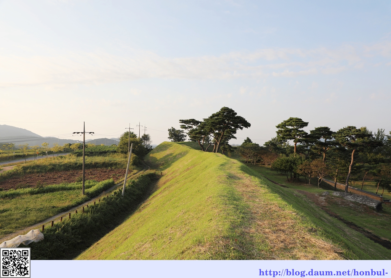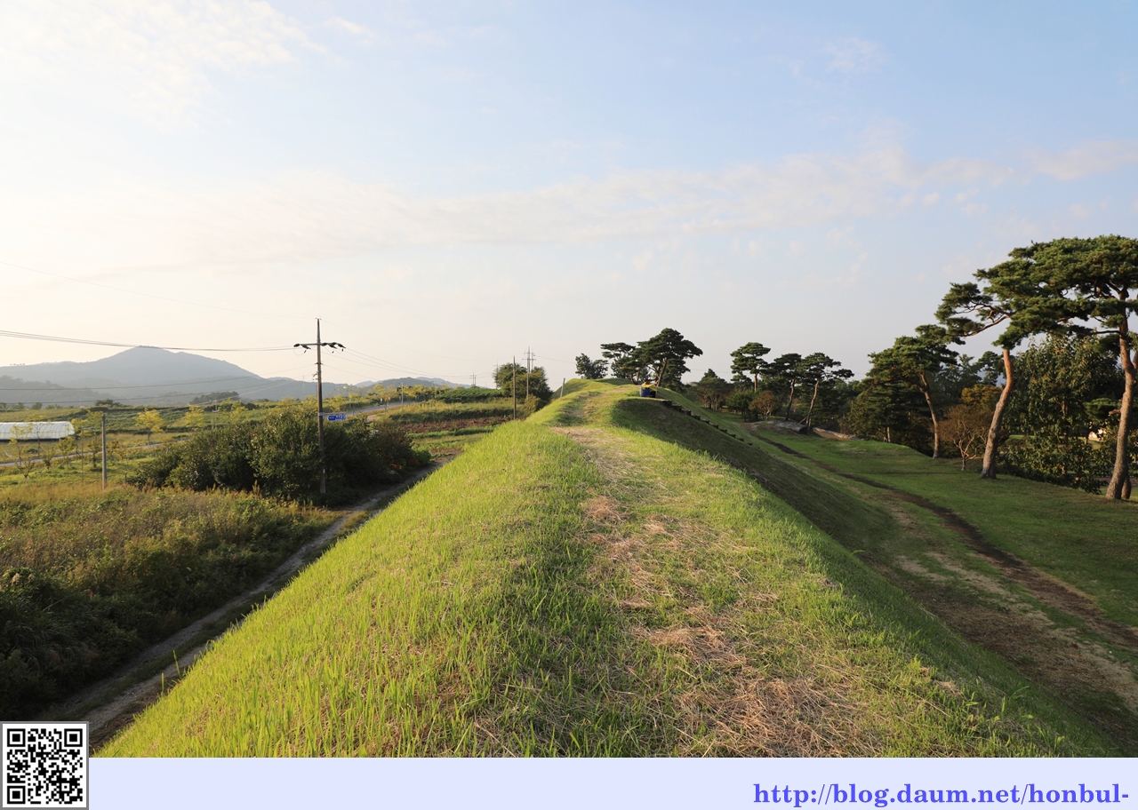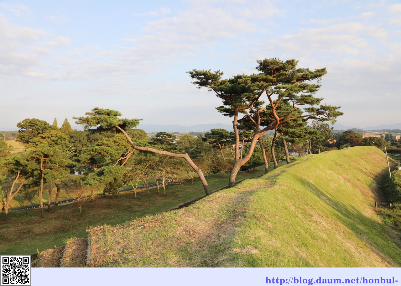 성벽은 봉긋한 형태에 잔디가 잘 자라 보기 좋다.