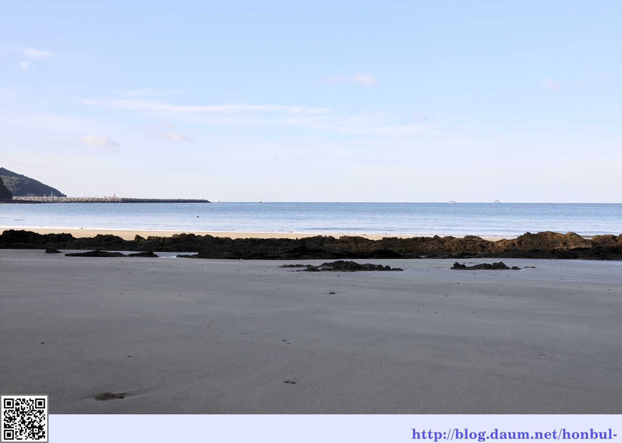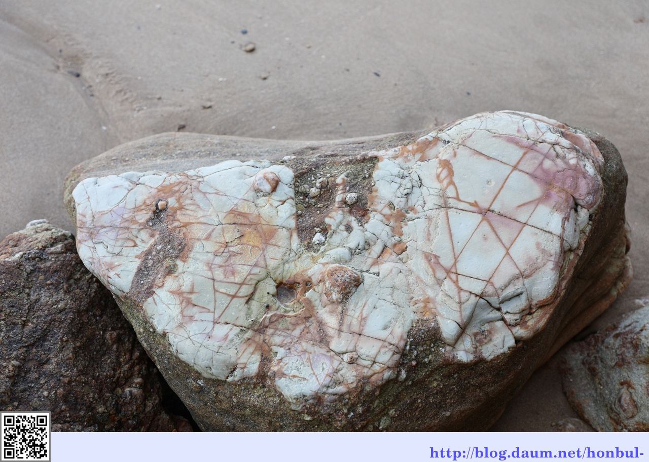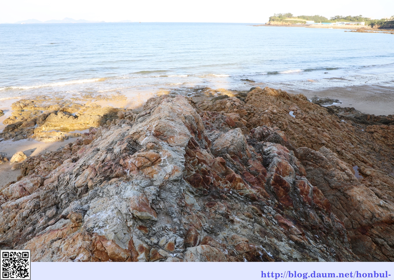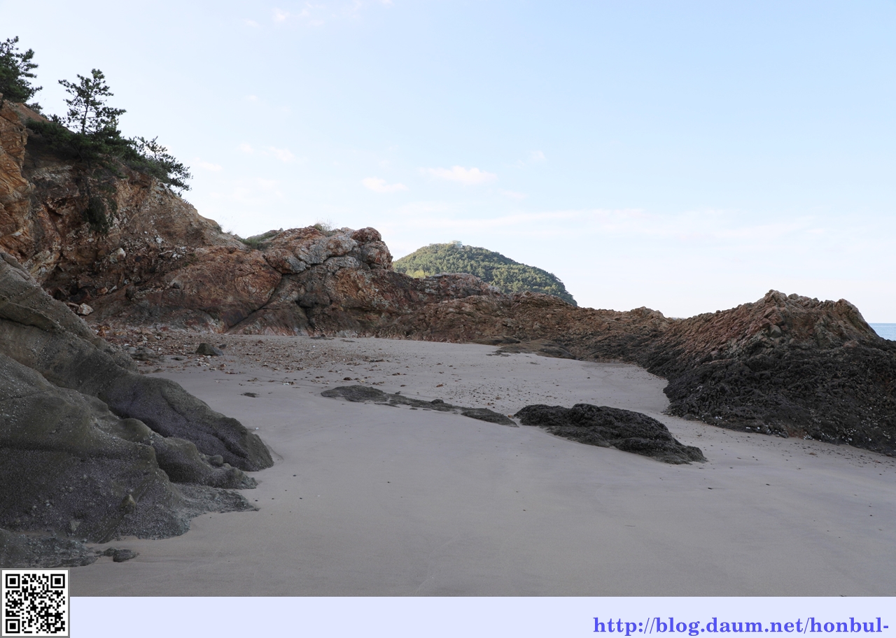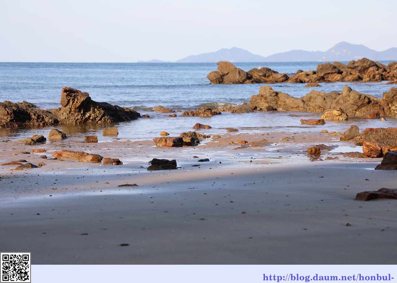 모래사장에 불쑥불쑥 고개를 내민 바위들