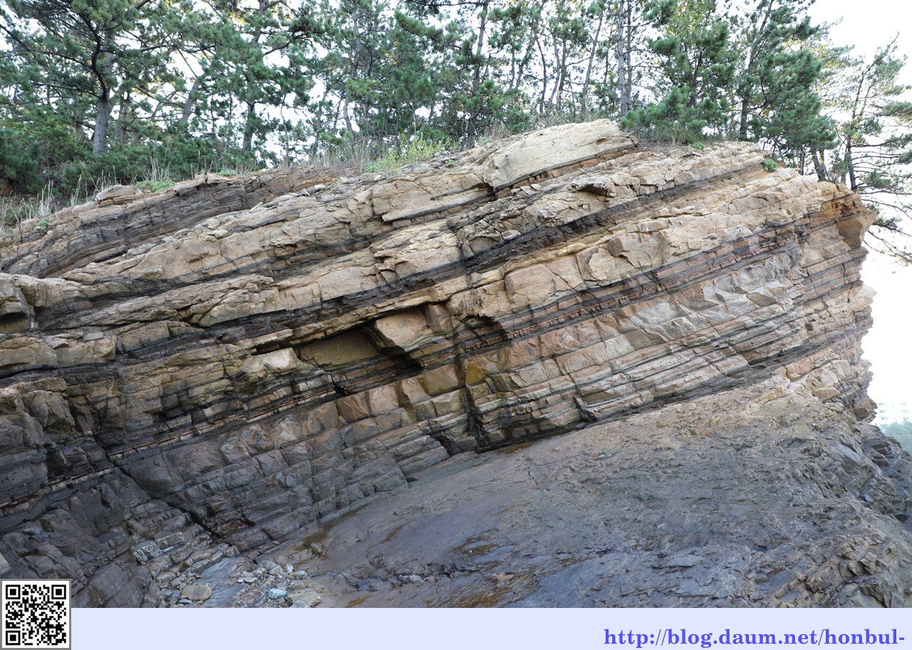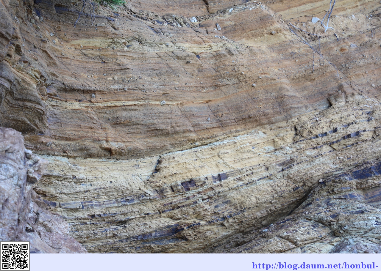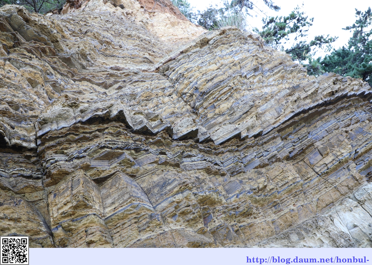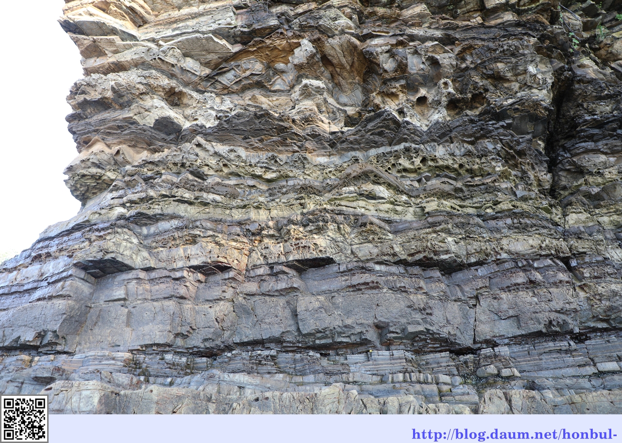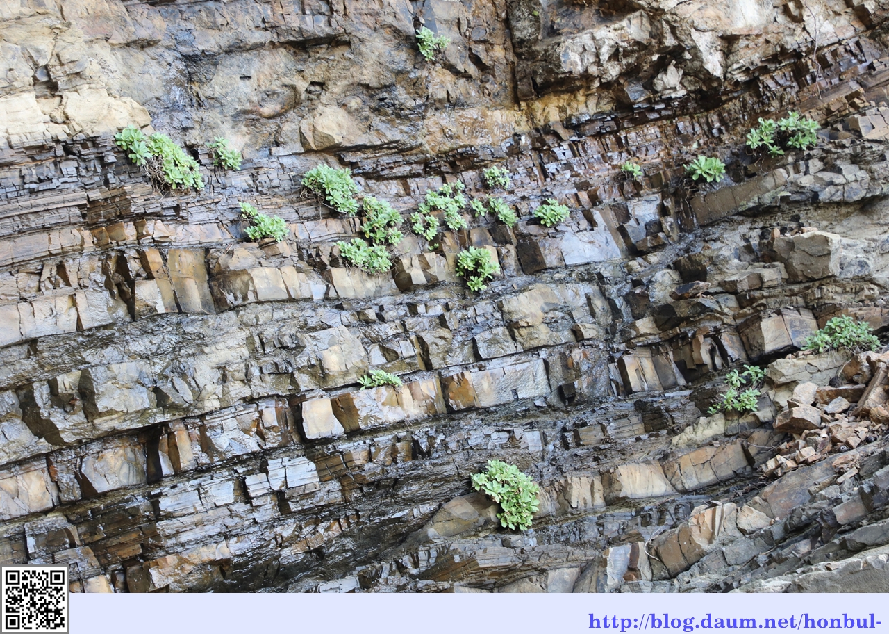 이렇게 한쪽으로 힘이 솟구쳐 융기한 단면이 재미있다.