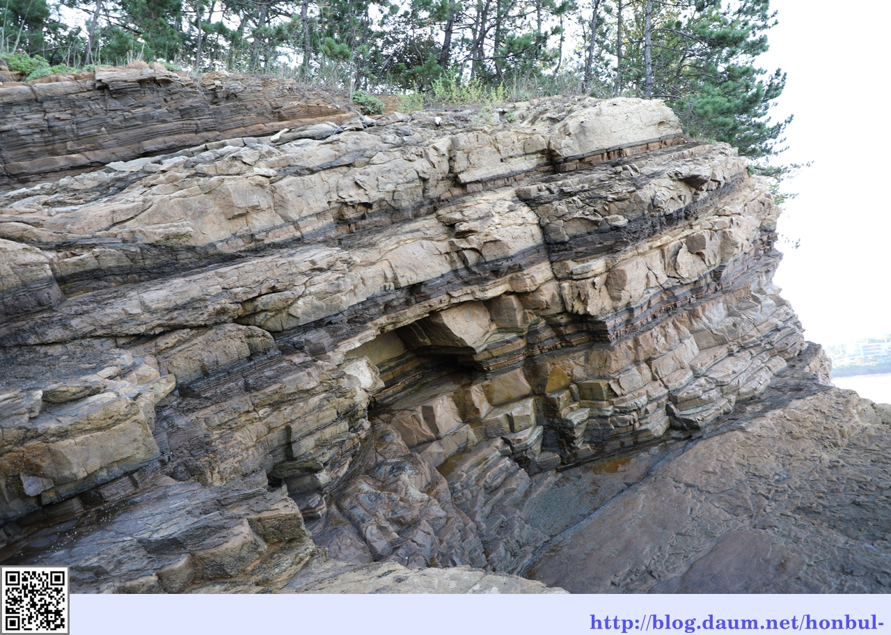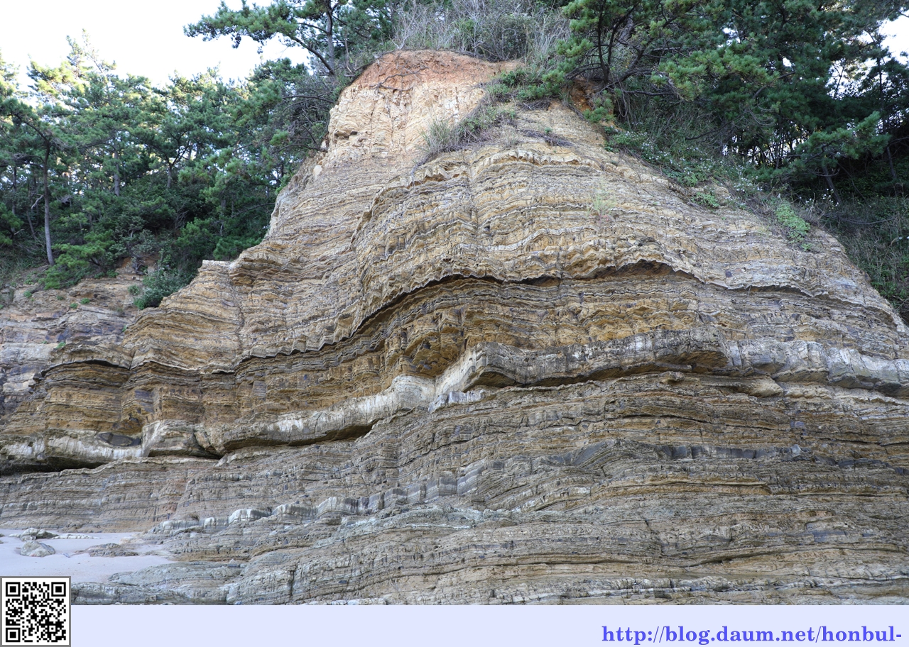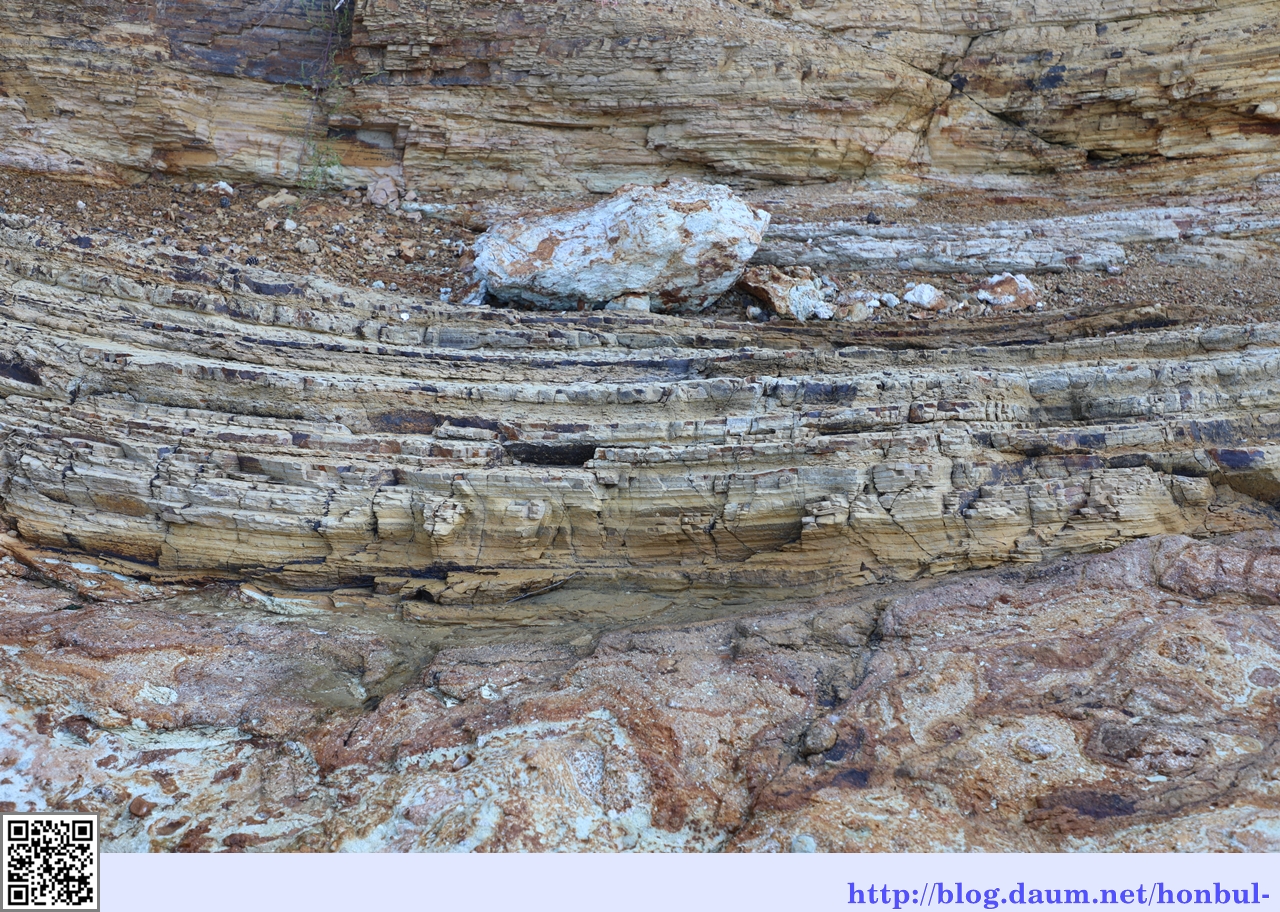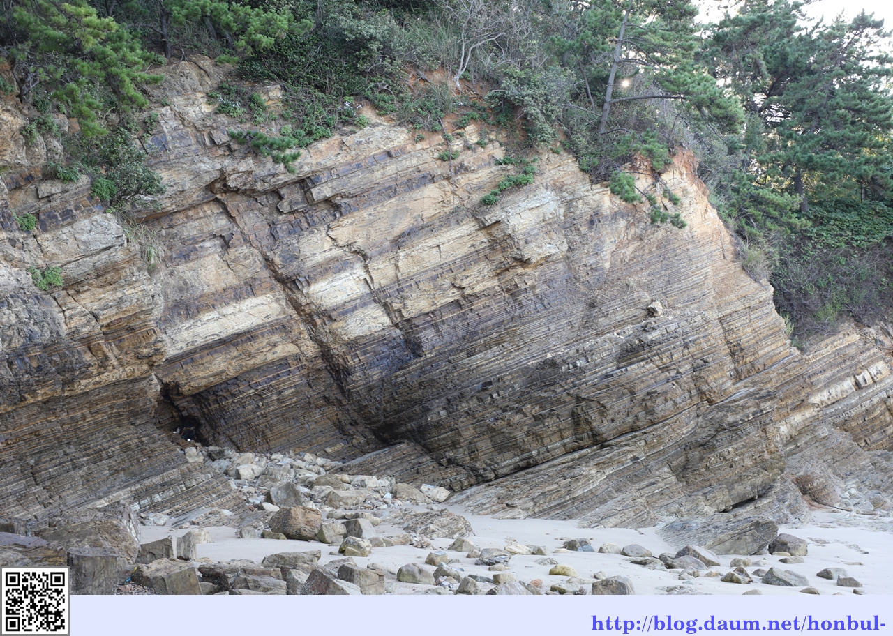 이렇게 한쪽으로 힘이 솟구쳐 융기한 단면이 재미있다.