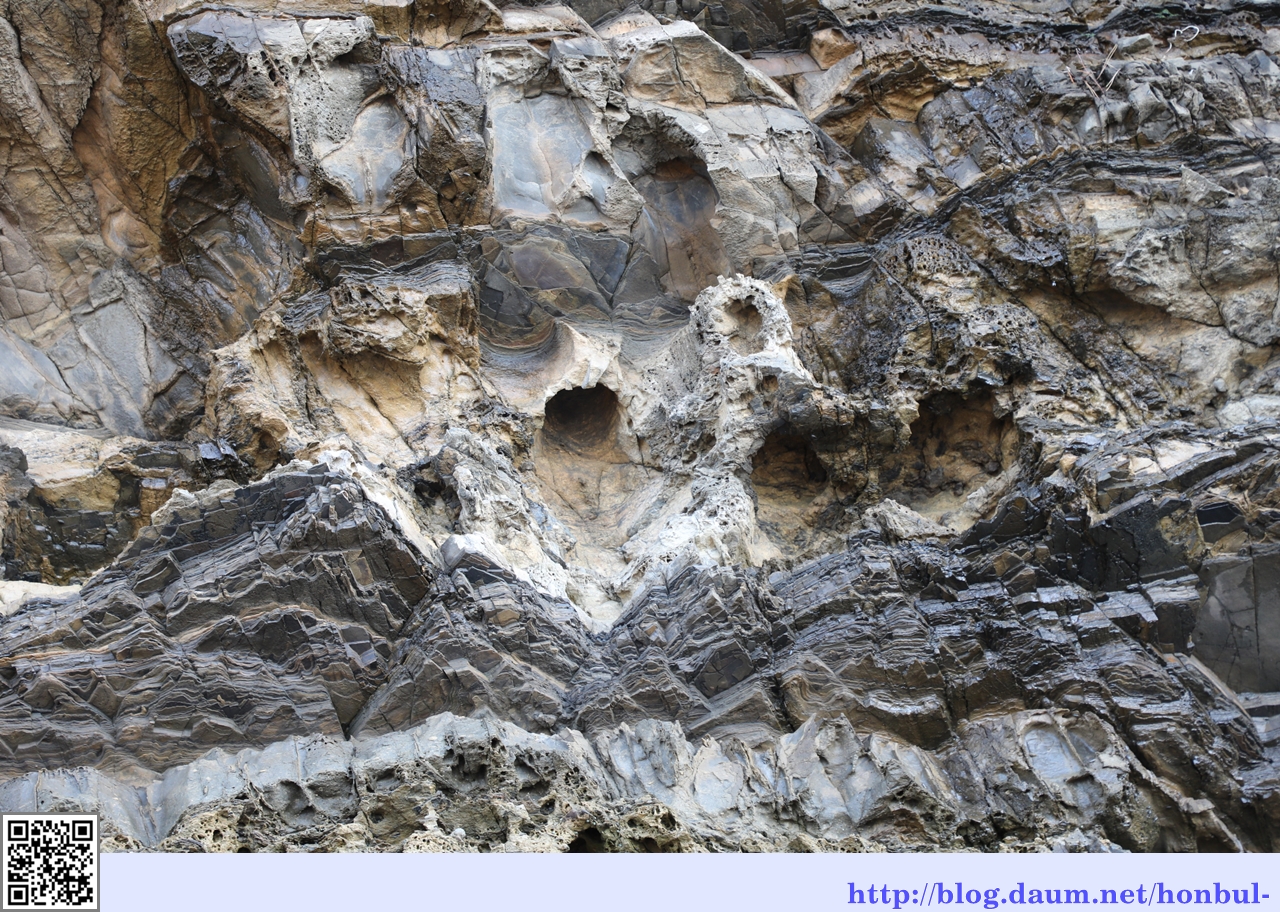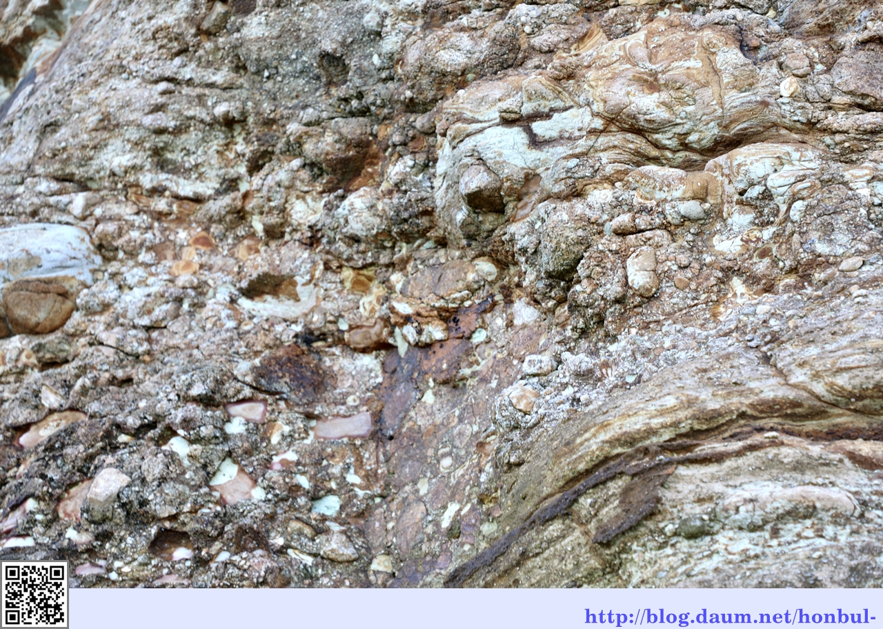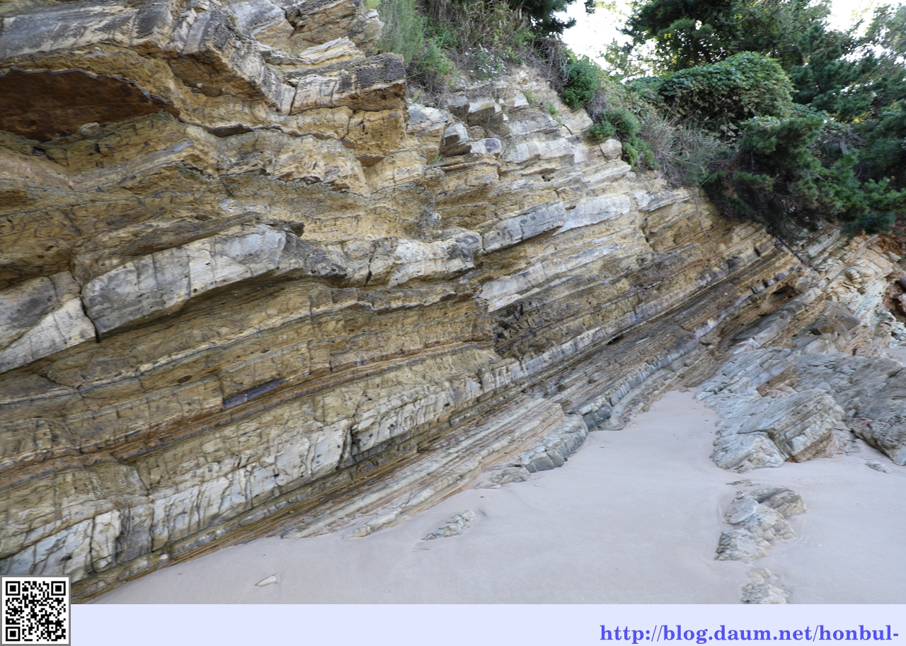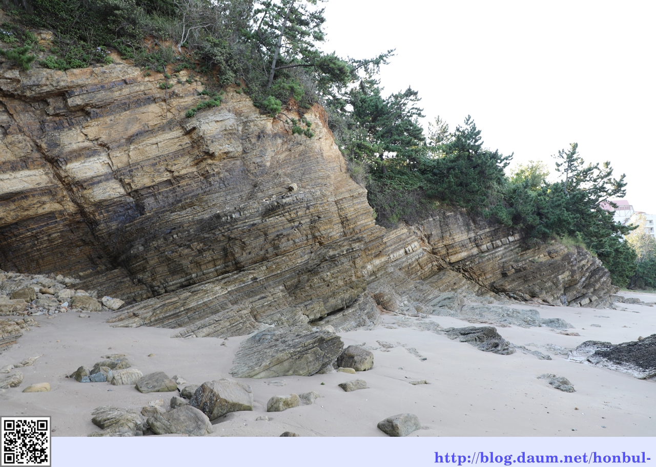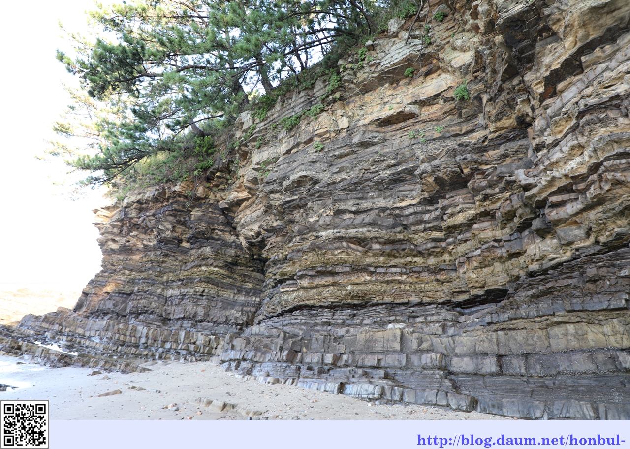 이렇게 한쪽으로 힘이 솟구쳐 융기한 단면이 재미있다.