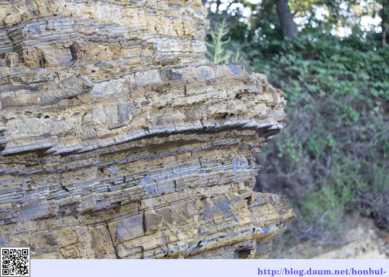 톱니바퀴처럼 뾰족뾰족하게 떨어져 나간 단층이 흥미롭다.