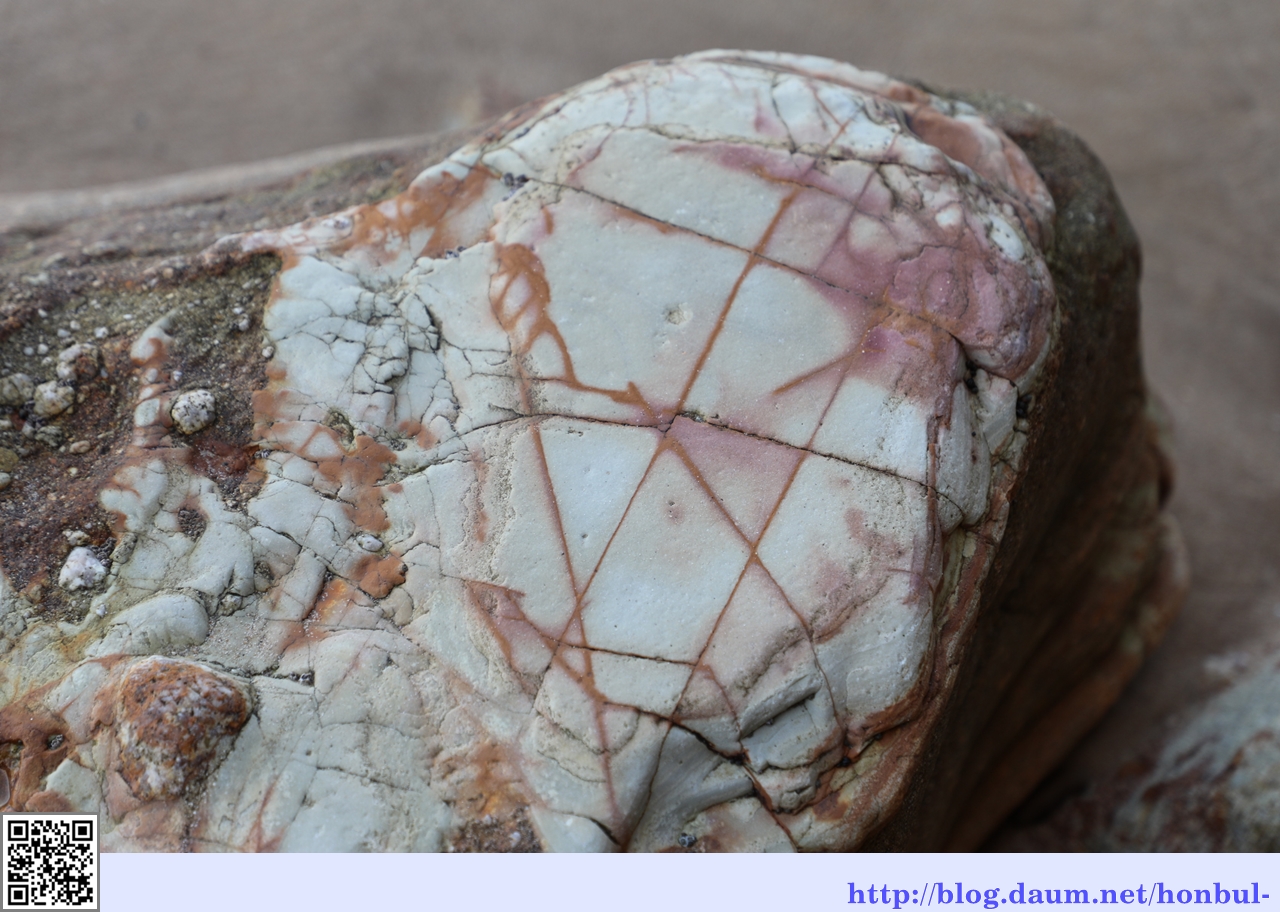 이건 차돌 같은 데, 자로 금을 그은 듯 가로, 세로, 대각선으로 일직선이다.