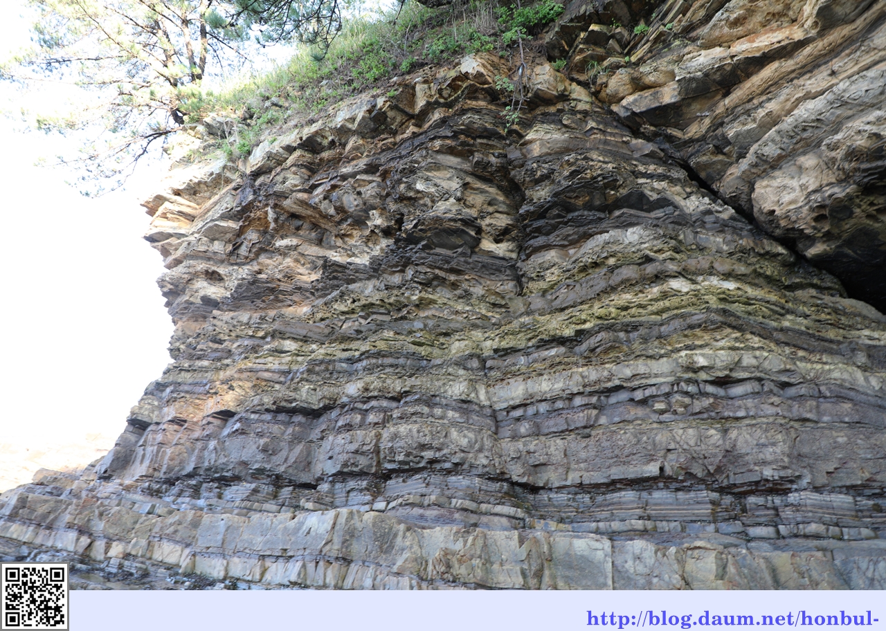 이렇게 한쪽으로 힘이 솟구쳐 융기한 단면이 재미있다.