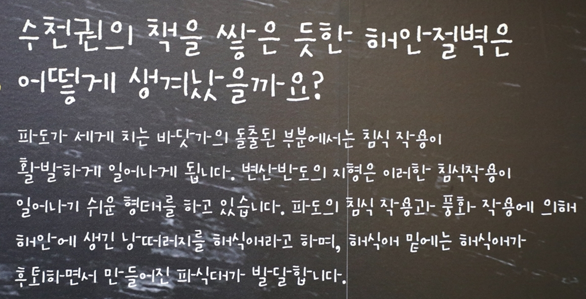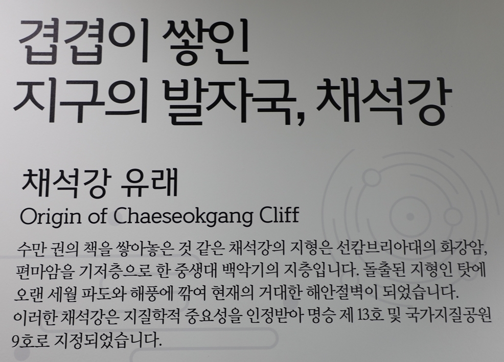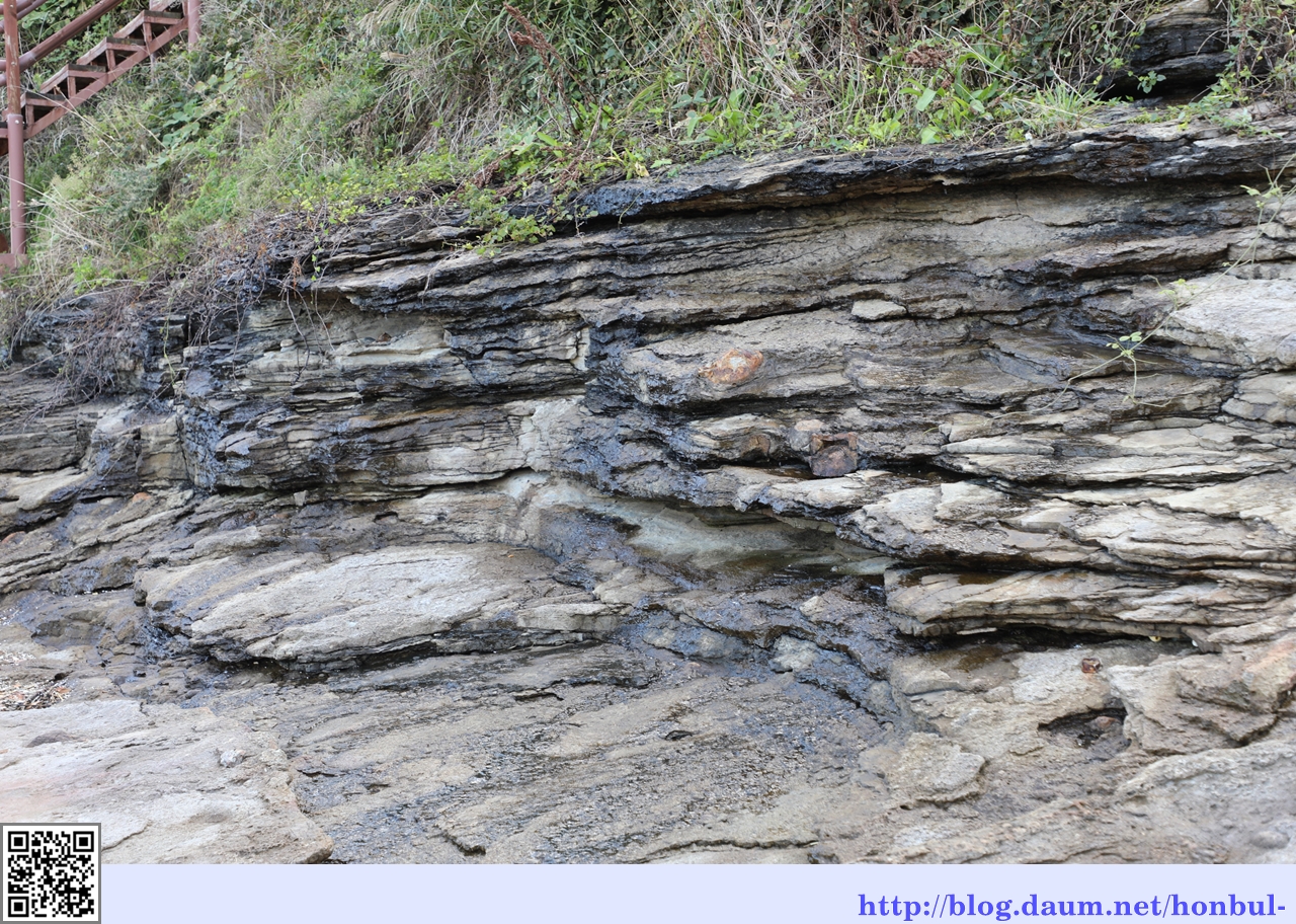 중생대 백악기에 퇴적한 퇴적암의 성층으로 바닷물의 침식에 의해 마치 수만 권의 책을 쌓아 올린 듯한